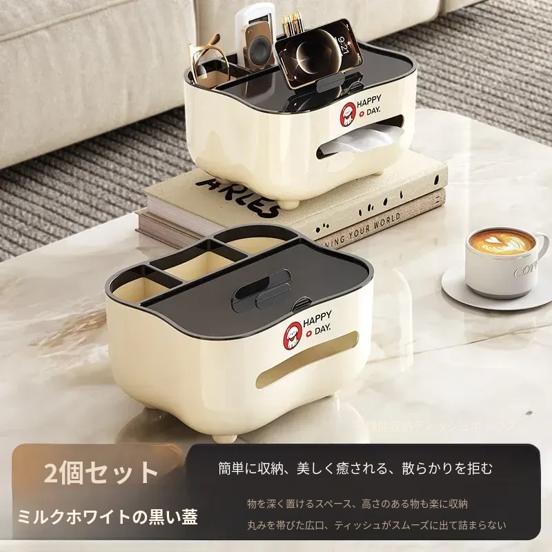 クリームホワイト●多機能収納ティッシュボックス【2個入り】