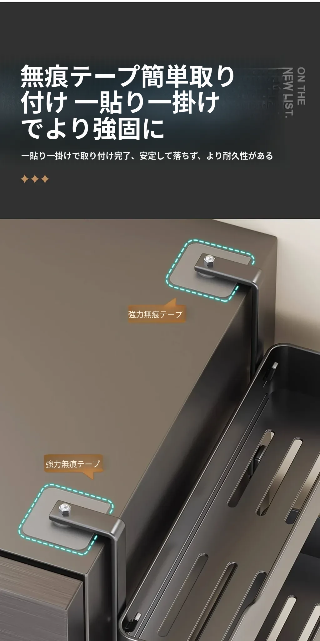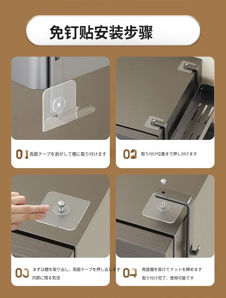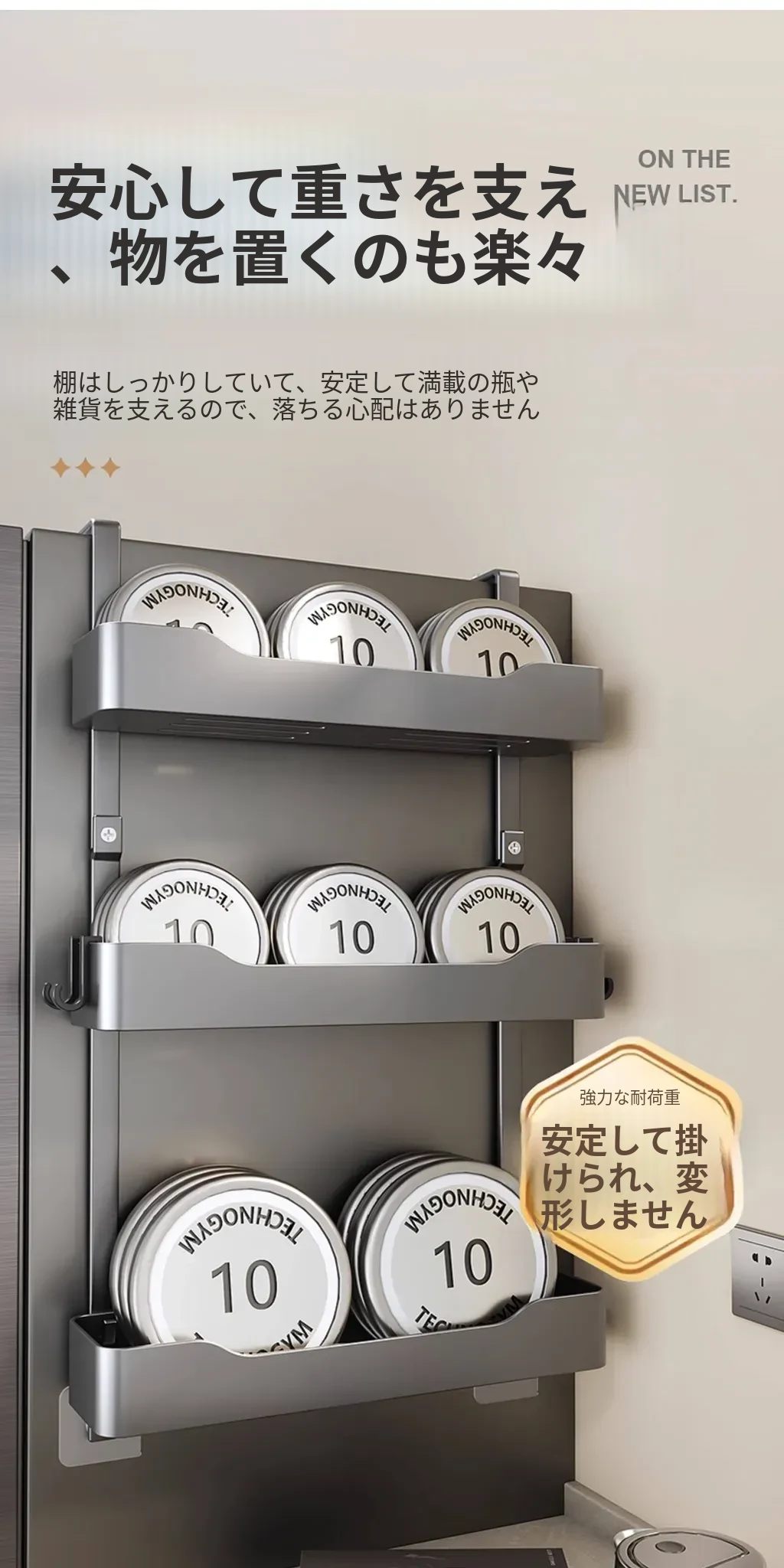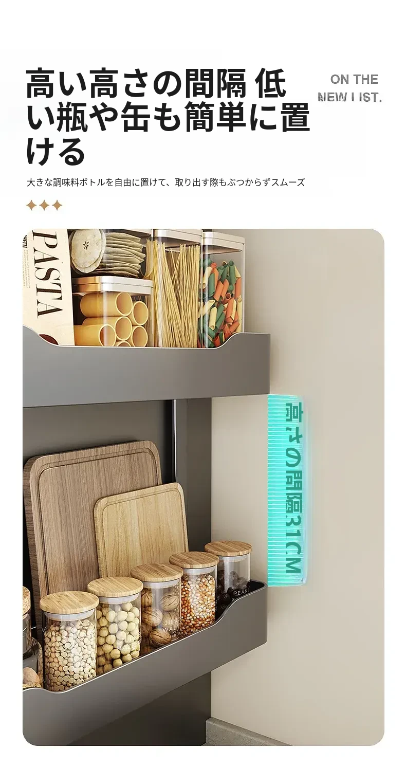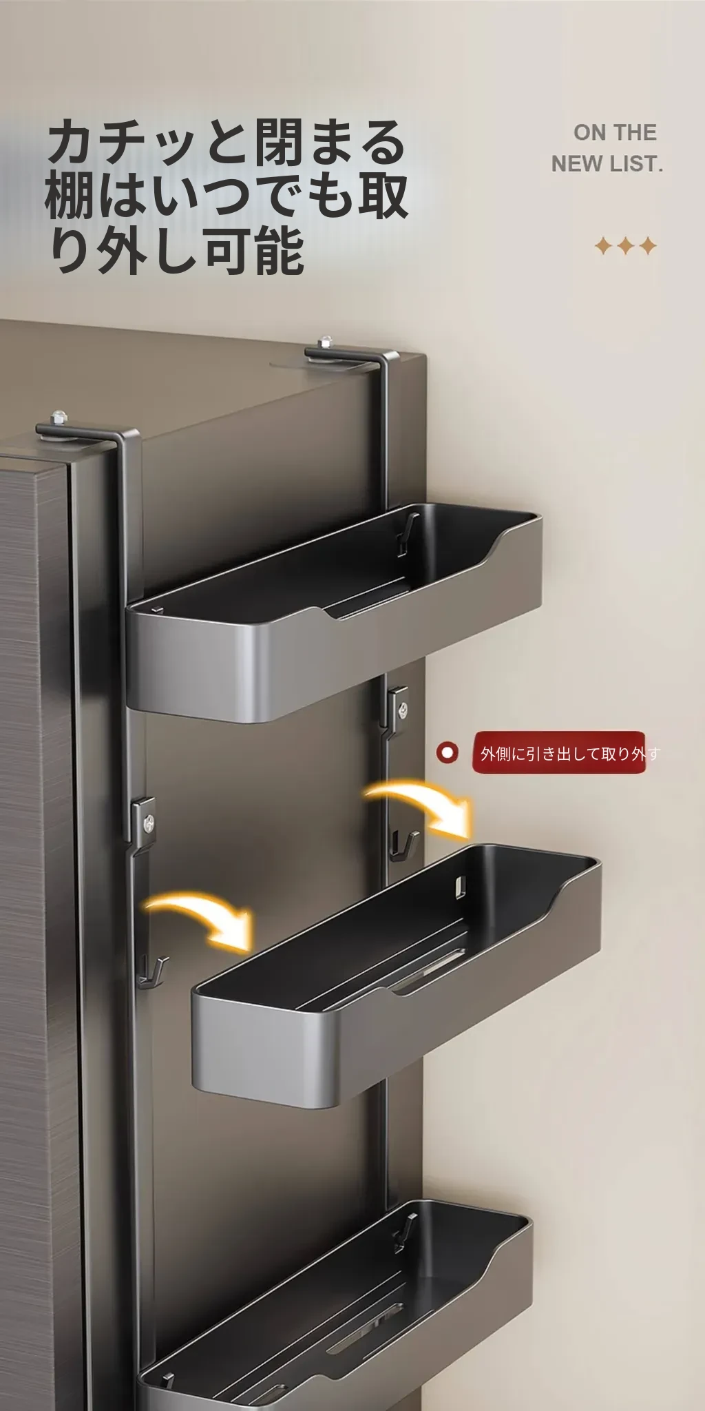 キッチン冷蔵庫用サイド収納ラック 壁掛け式 家庭用多機能・多層調味料収納棚 保鮮フィルムホルダー付き!整理整頓が簡単で、スペースを有効活用できる便利なアイテムです。