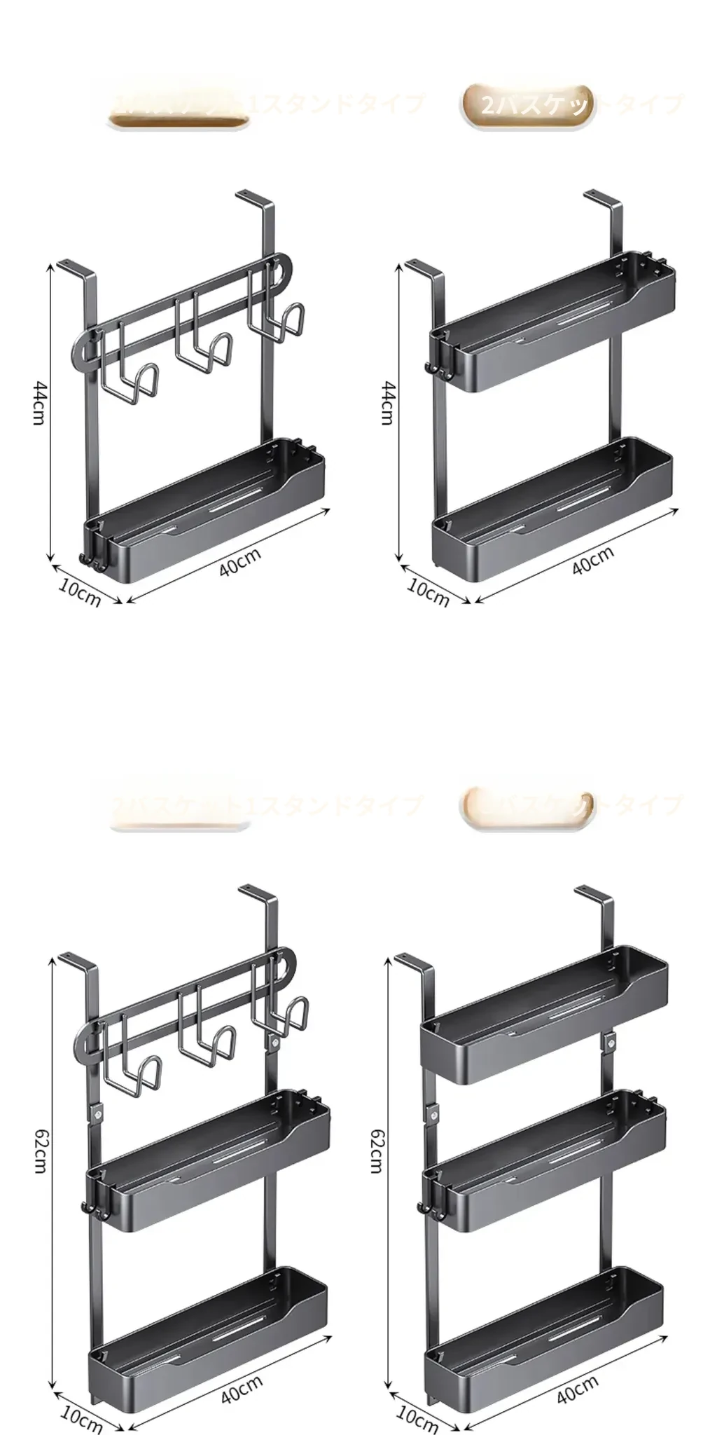 ガンメタルグレー【二段1バスケット1スタンド】アップグレード厚手-段間距離拡大