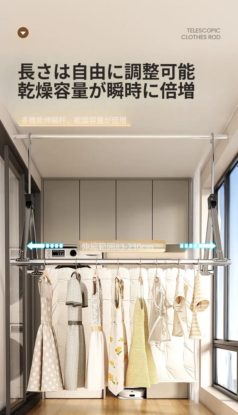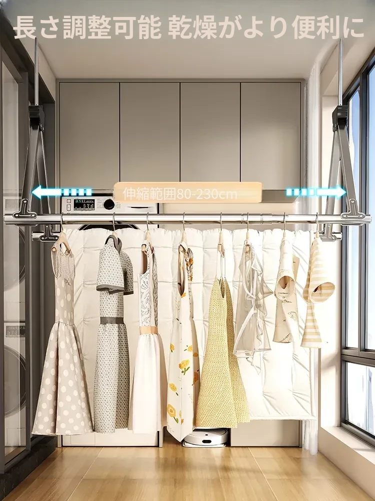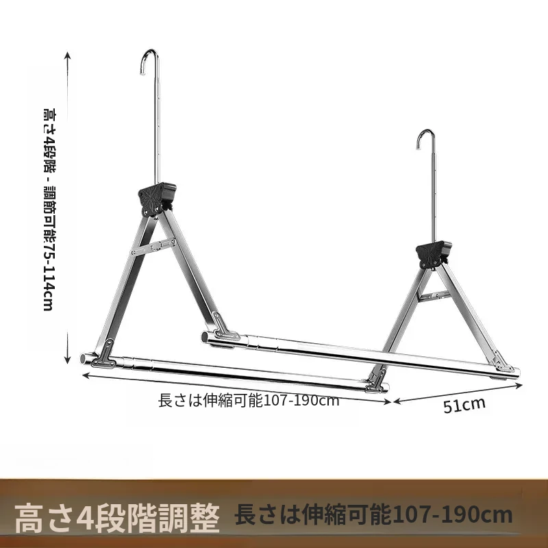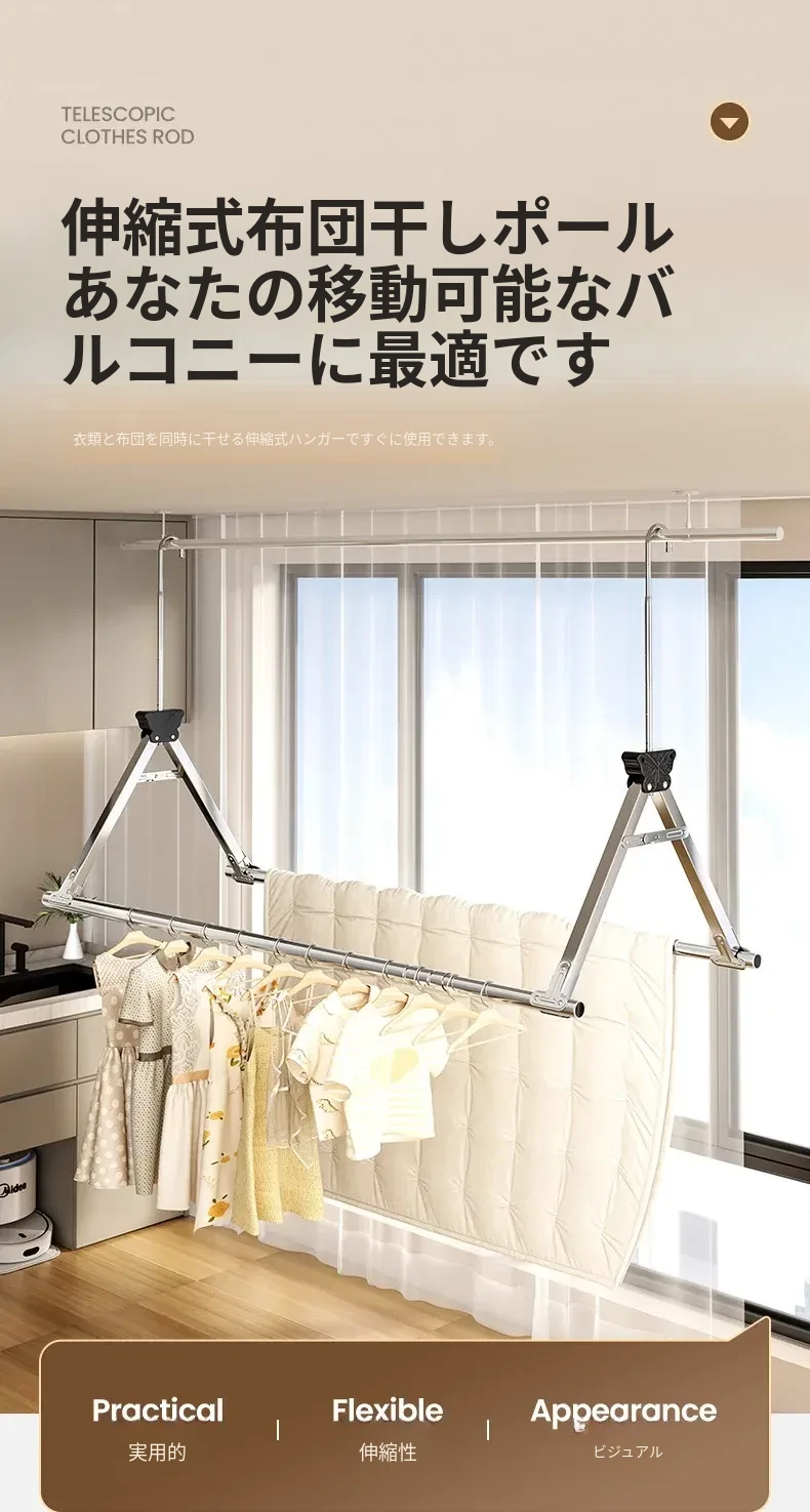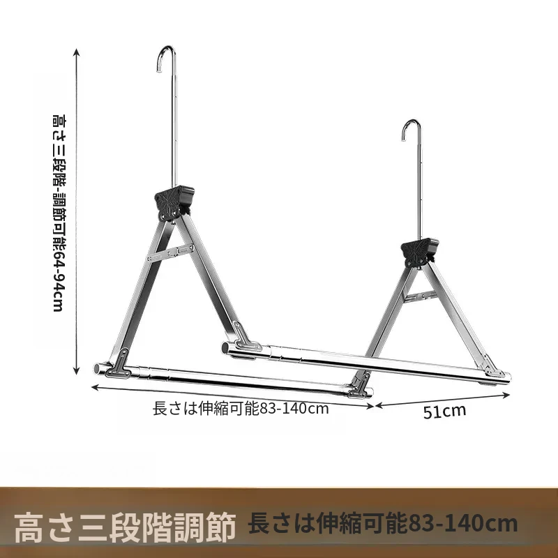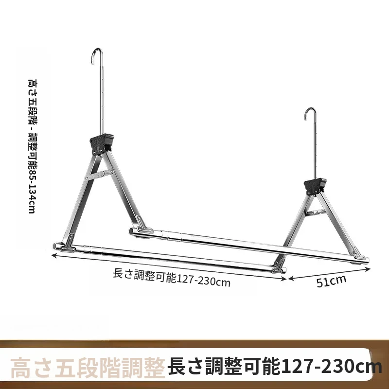 バルコニー用の伸縮式折りたたみ物干しラック - 多機能で昇降可能、衣類や布団も楽々干せる便利アイテム!