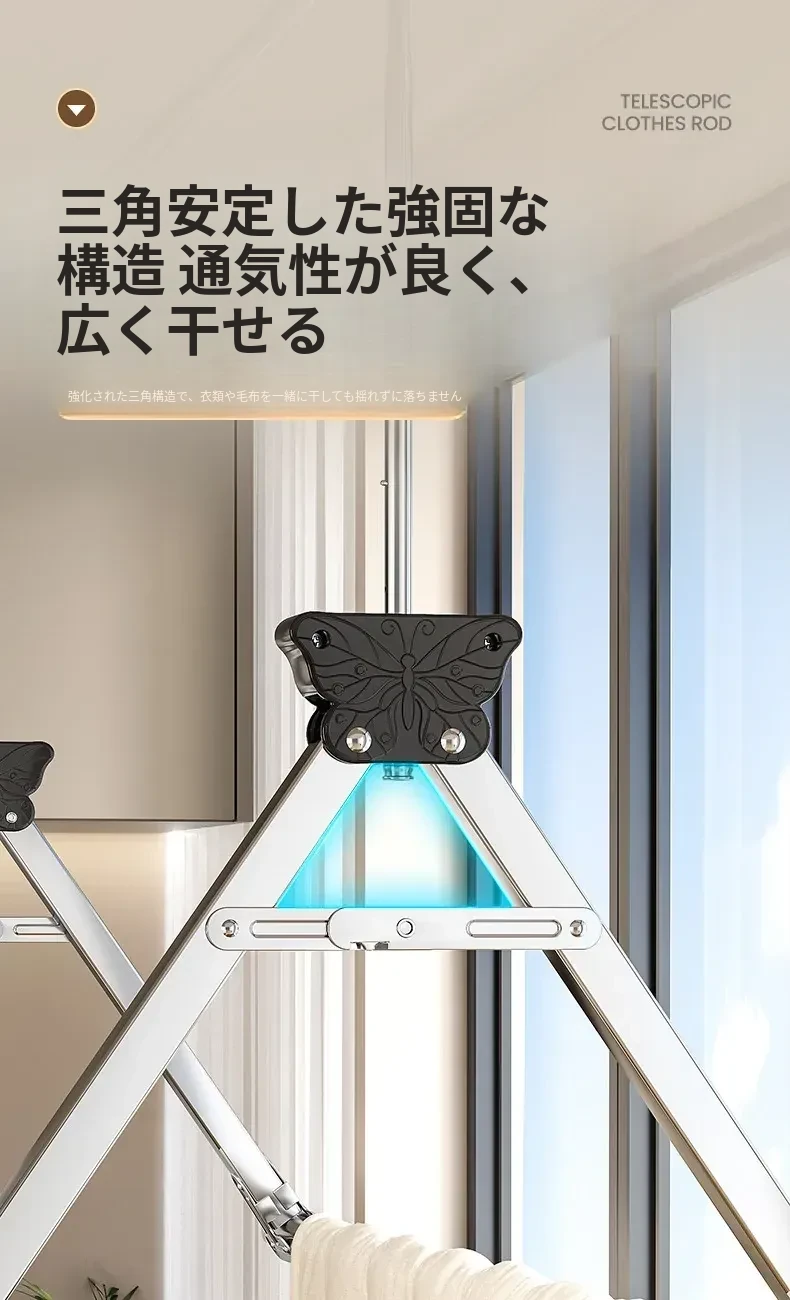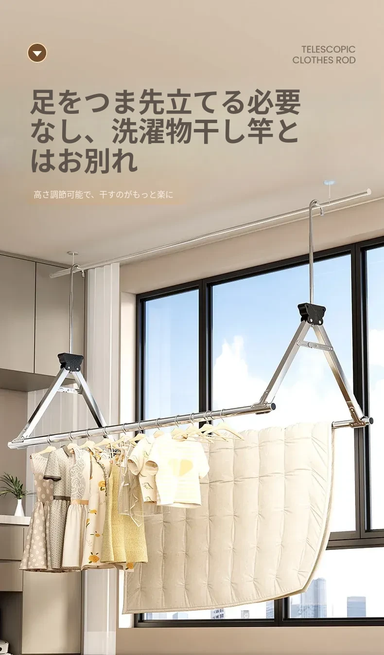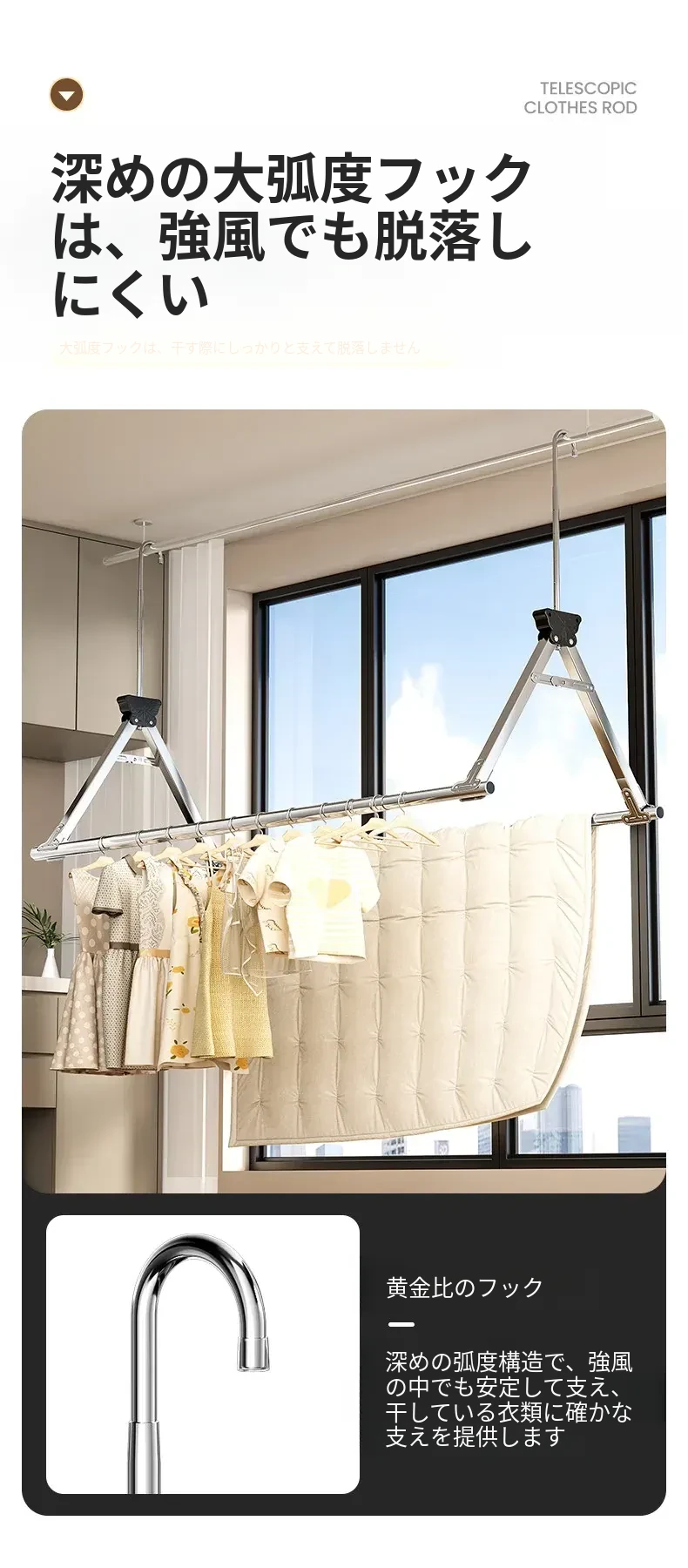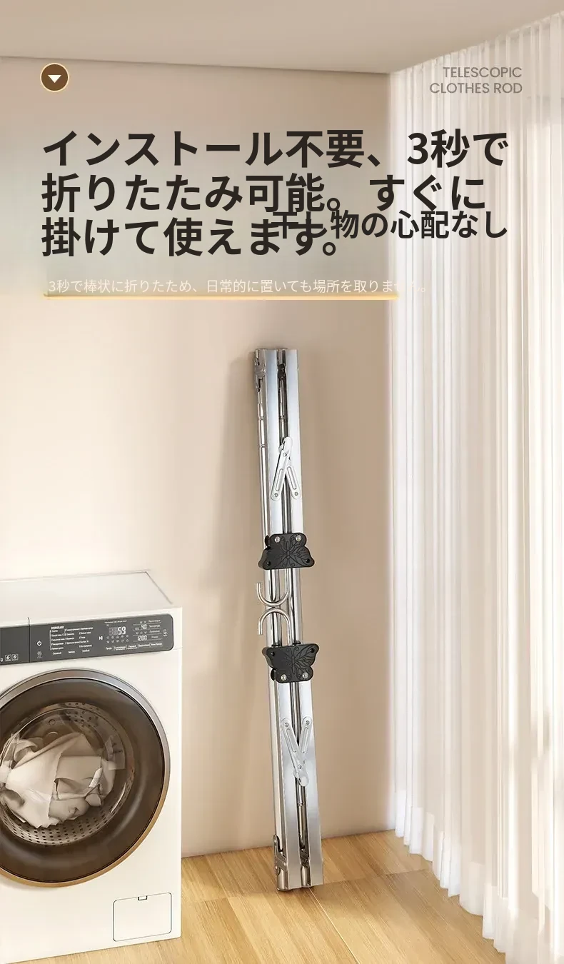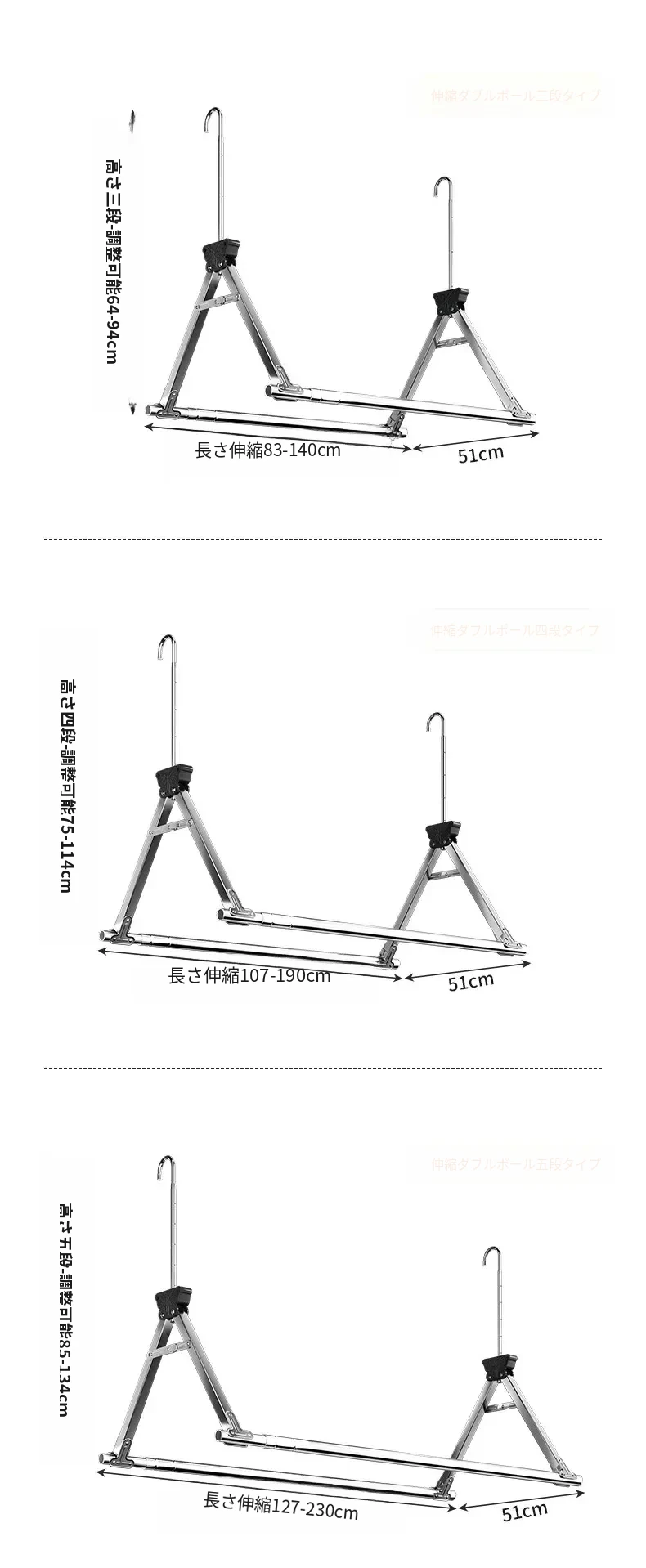 バルコニー用の伸縮式折りたたみ物干しラック - 多機能で昇降可能、衣類や布団も楽々干せる便利アイテム!