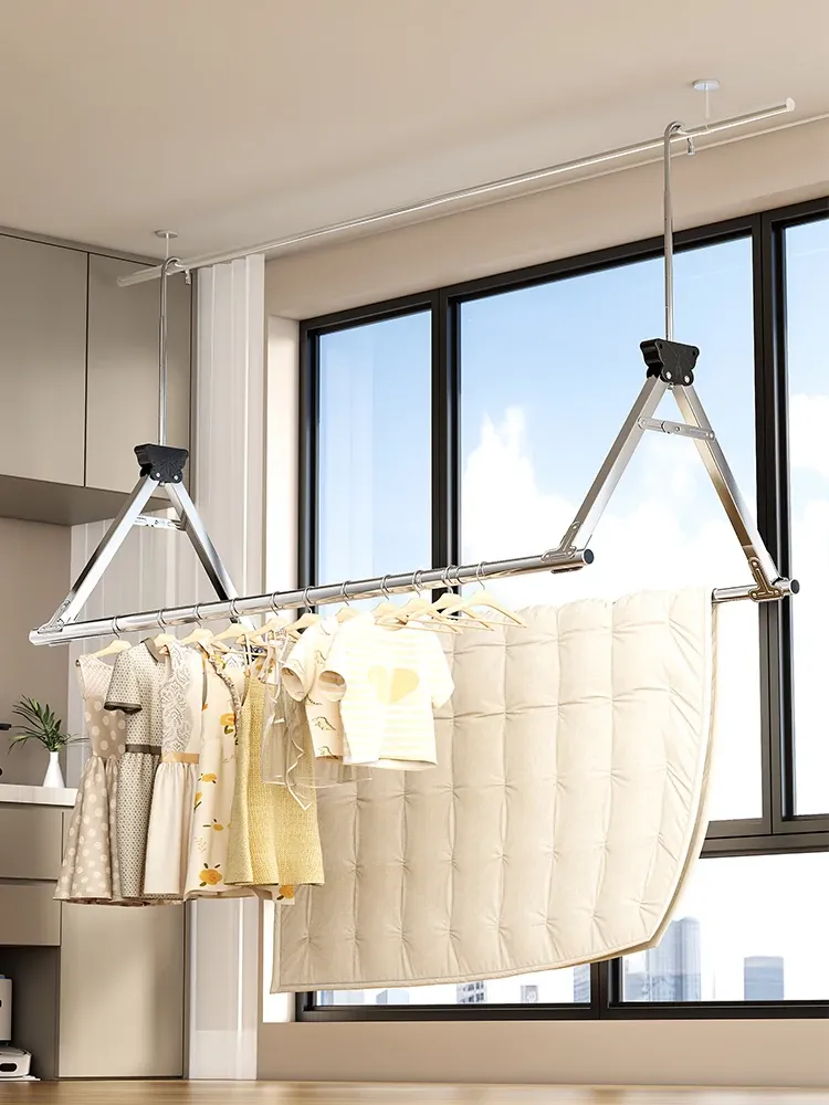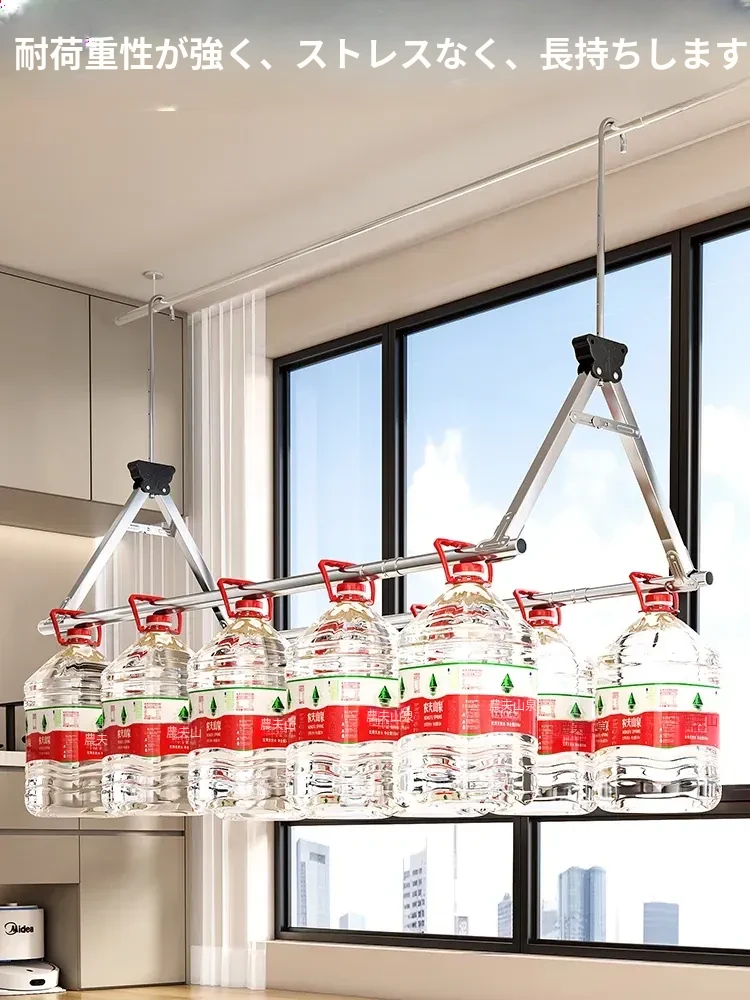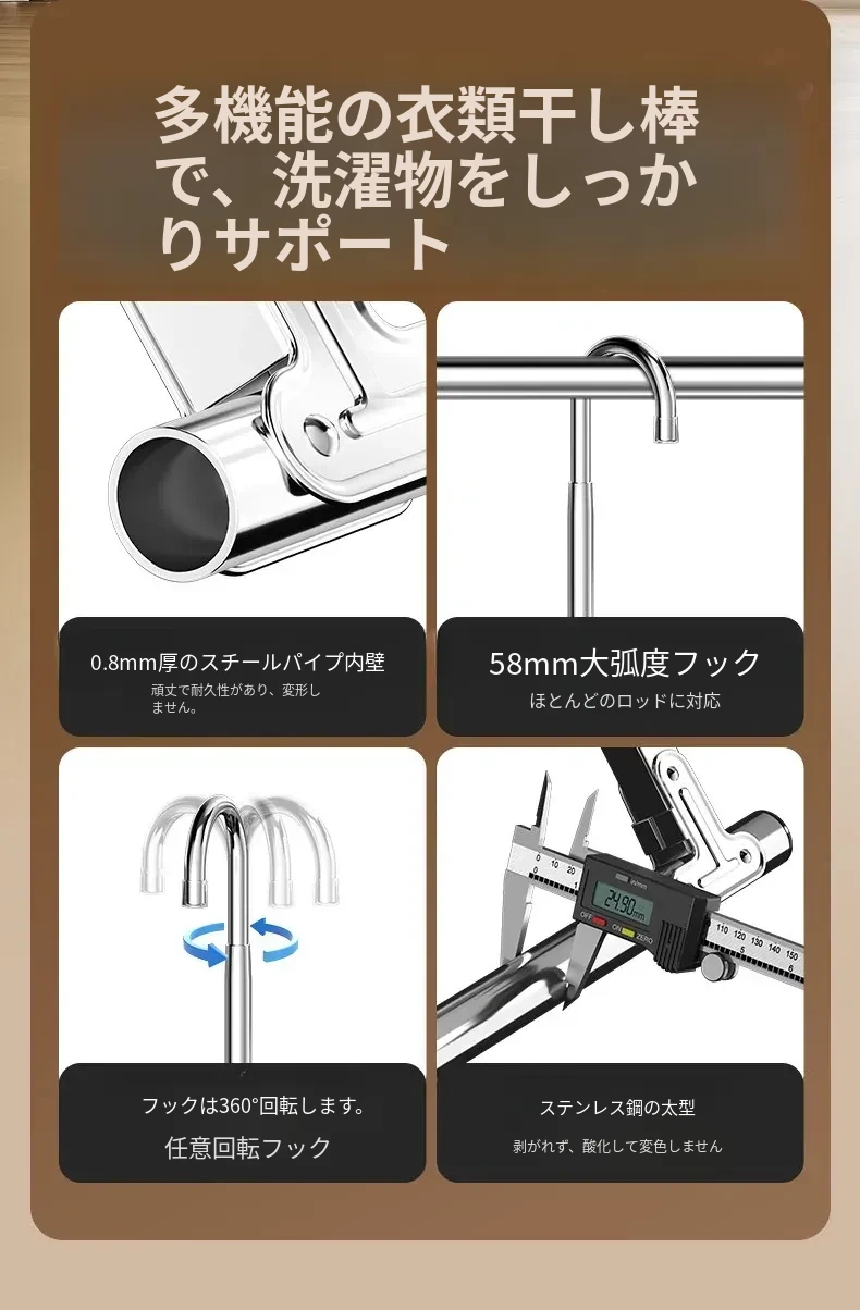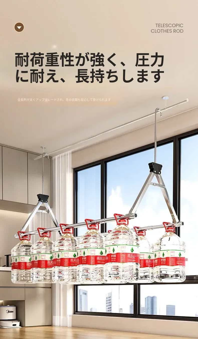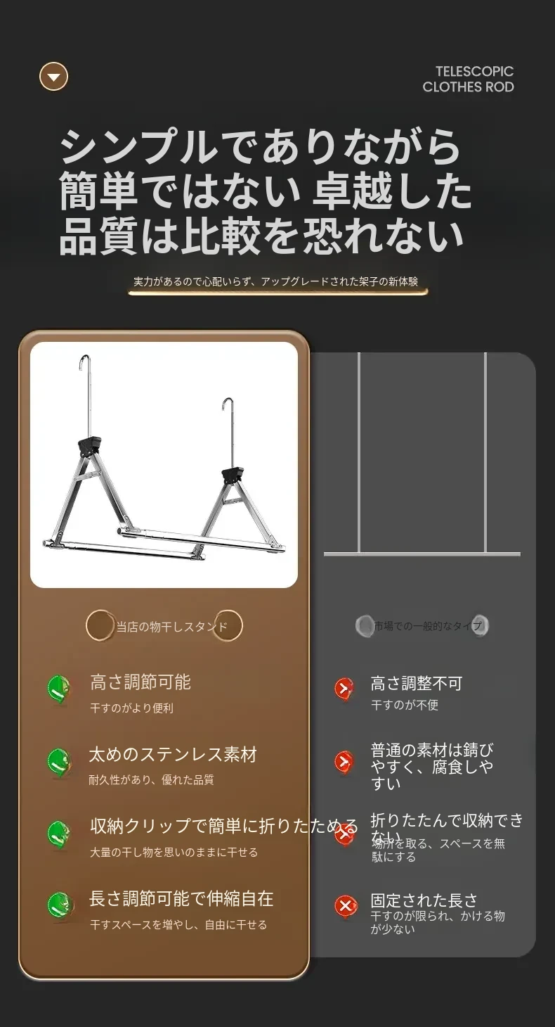 バルコニー用の伸縮式折りたたみ物干しラック - 多機能で昇降可能、衣類や布団も楽々干せる便利アイテム!