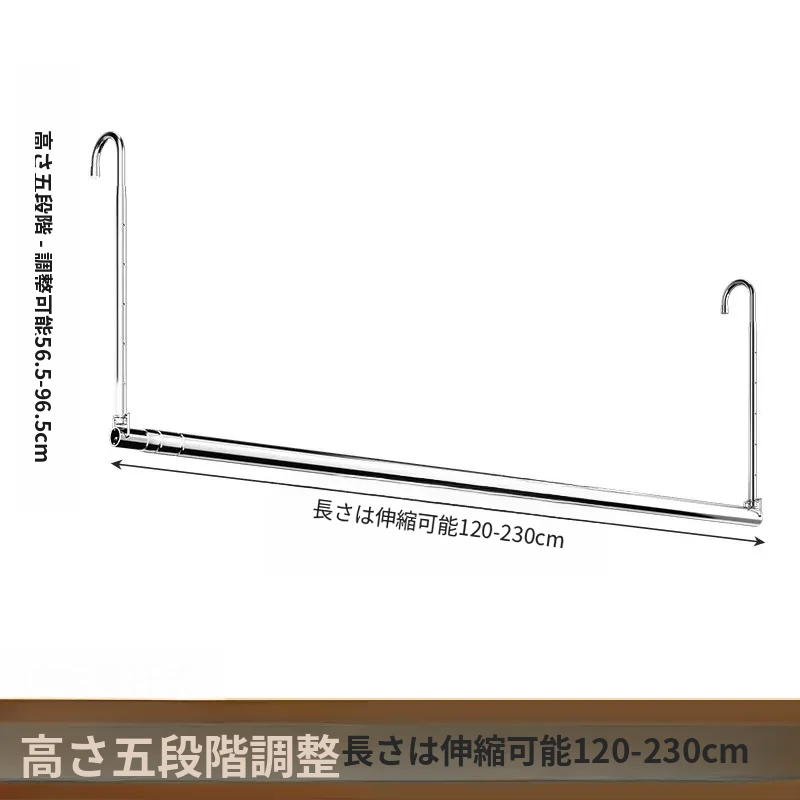 双杆【5段調整】伸縮120-230CM【太くて厚いステンレス】