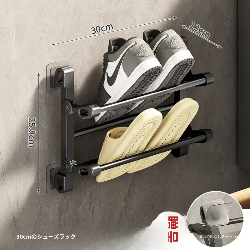 黒●30CM【二重収納/2足の靴を掛けられる】