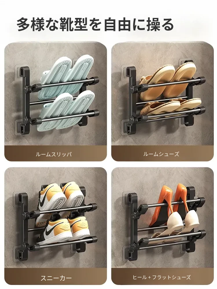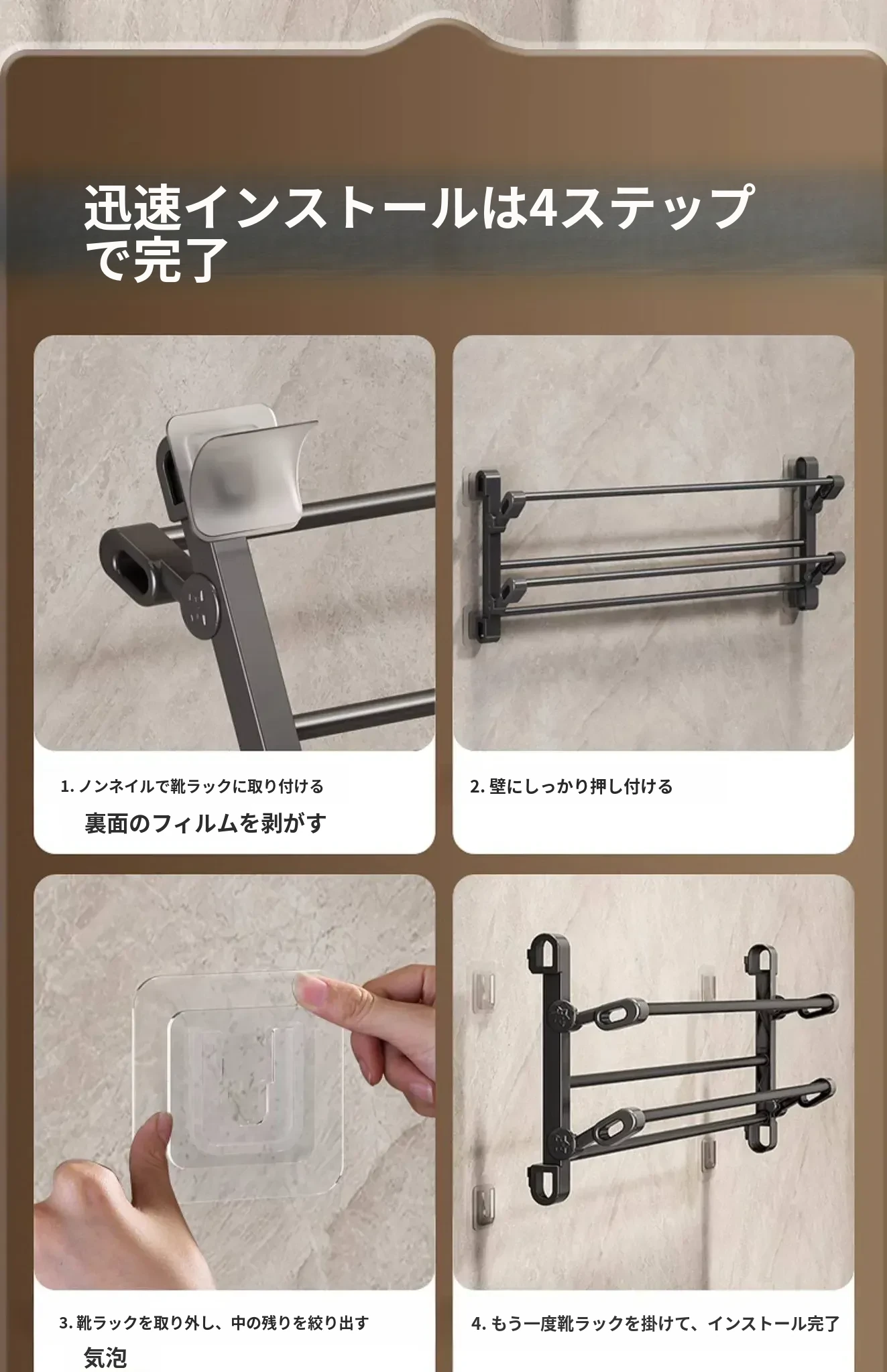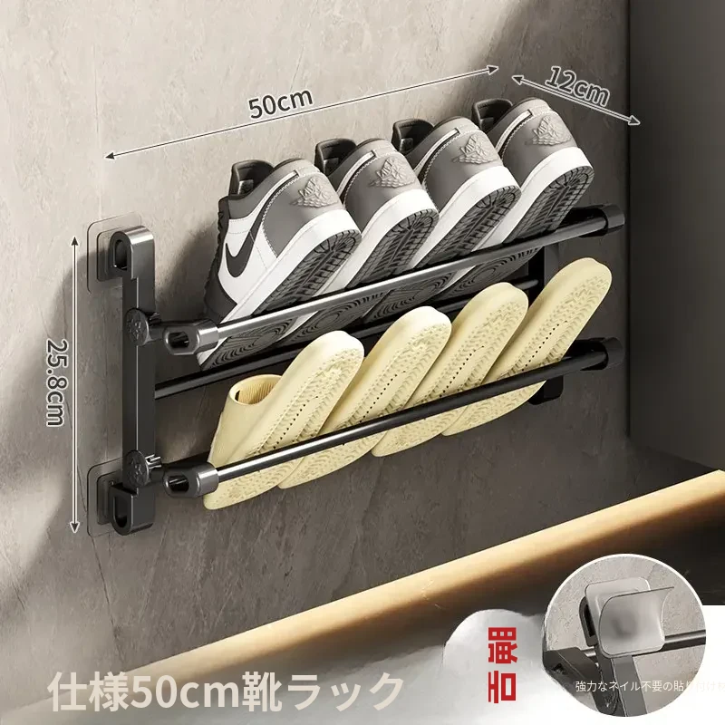 黒●50CM【二重収納/4足の靴を掛けられる】