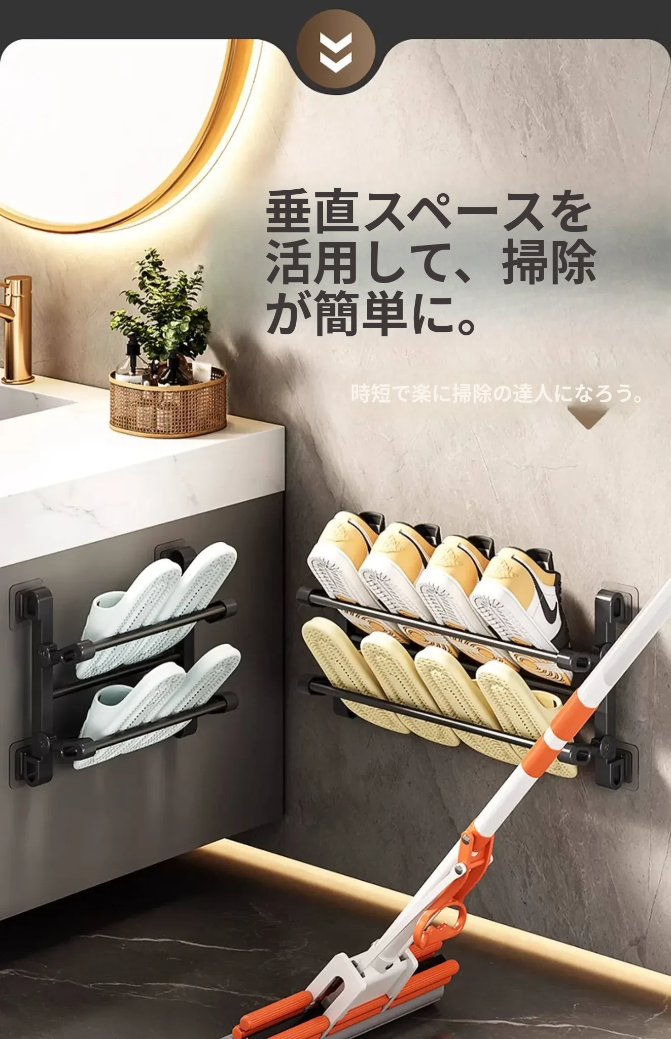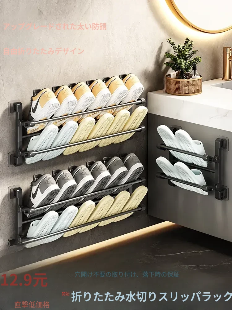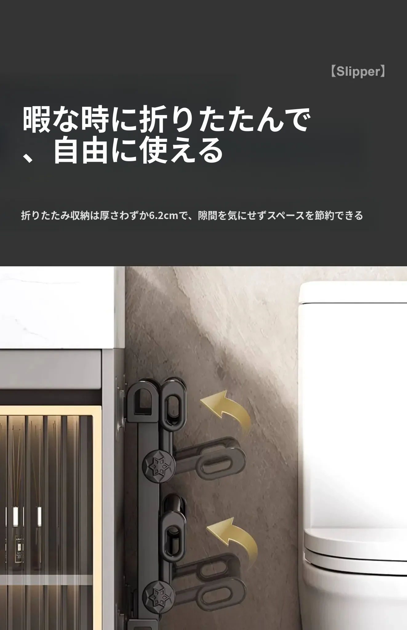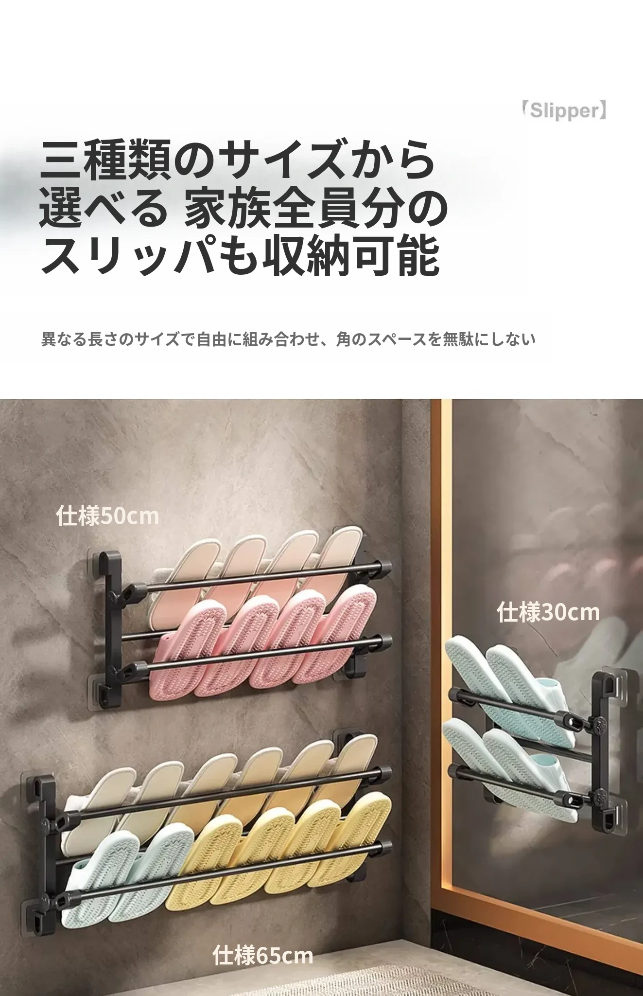 お風呂の壁掛けスリッパラック - 簡単取り付け、穴あけ不要!水切り設計で清潔を保ち、トイレやバスルームの整理整頓に最適な収納アイテム。スリッパや小物の収納にぴったり!