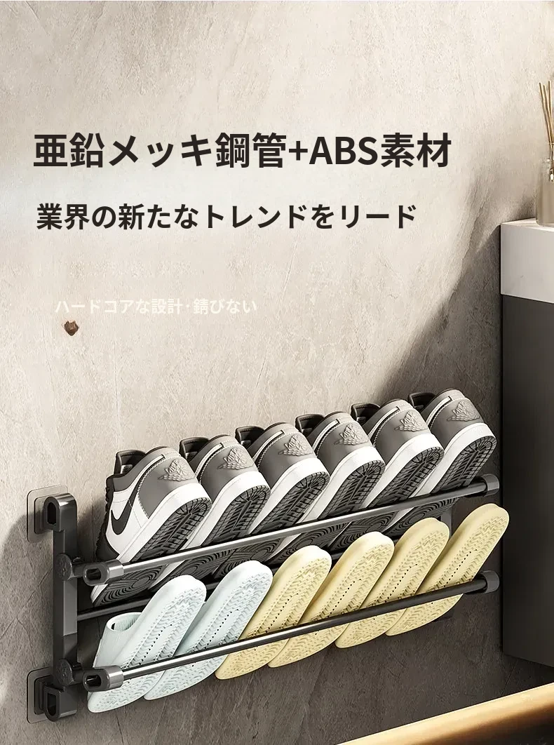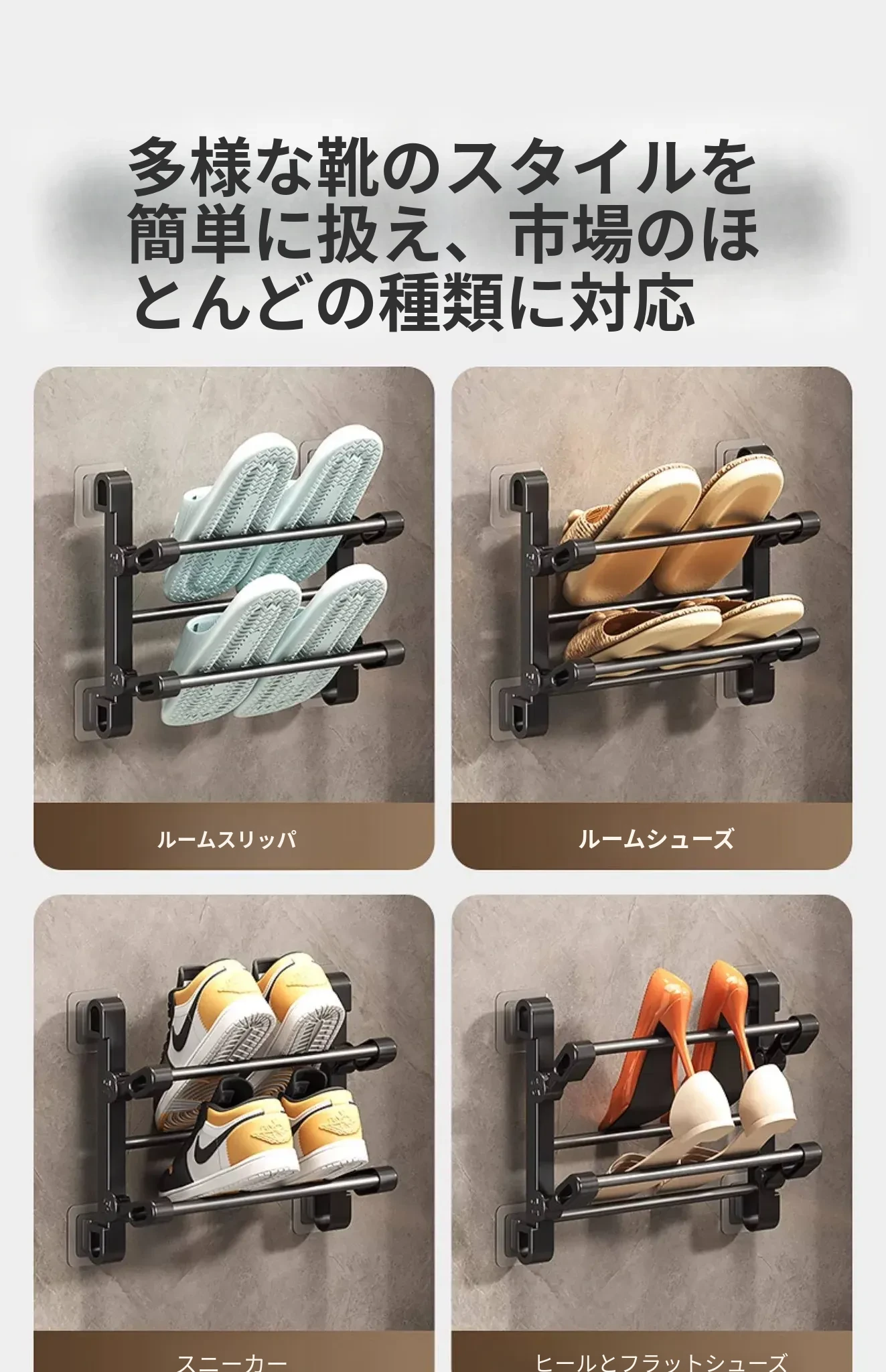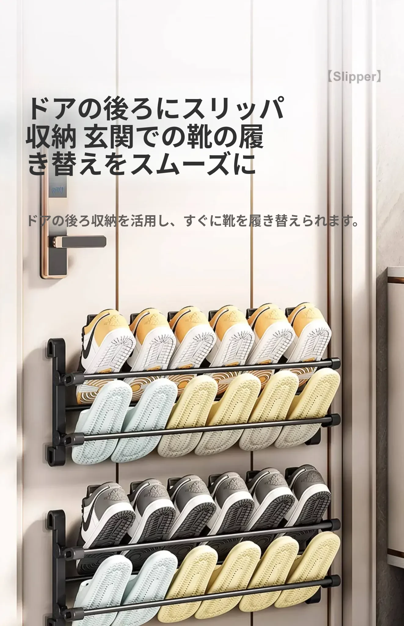 お風呂の壁掛けスリッパラック - 簡単取り付け、穴あけ不要!水切り設計で清潔を保ち、トイレやバスルームの整理整頓に最適な収納アイテム。スリッパや小物の収納にぴったり!