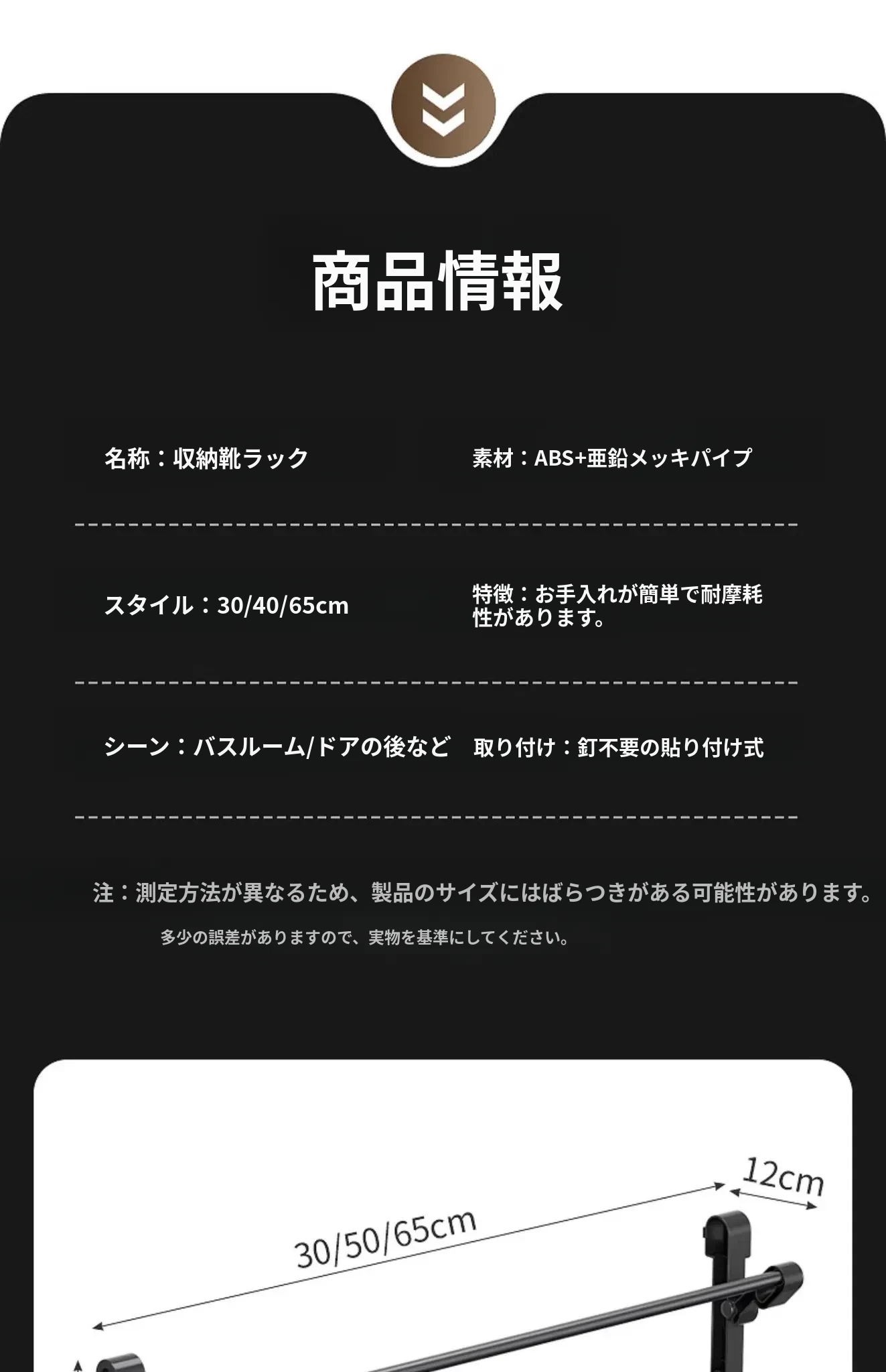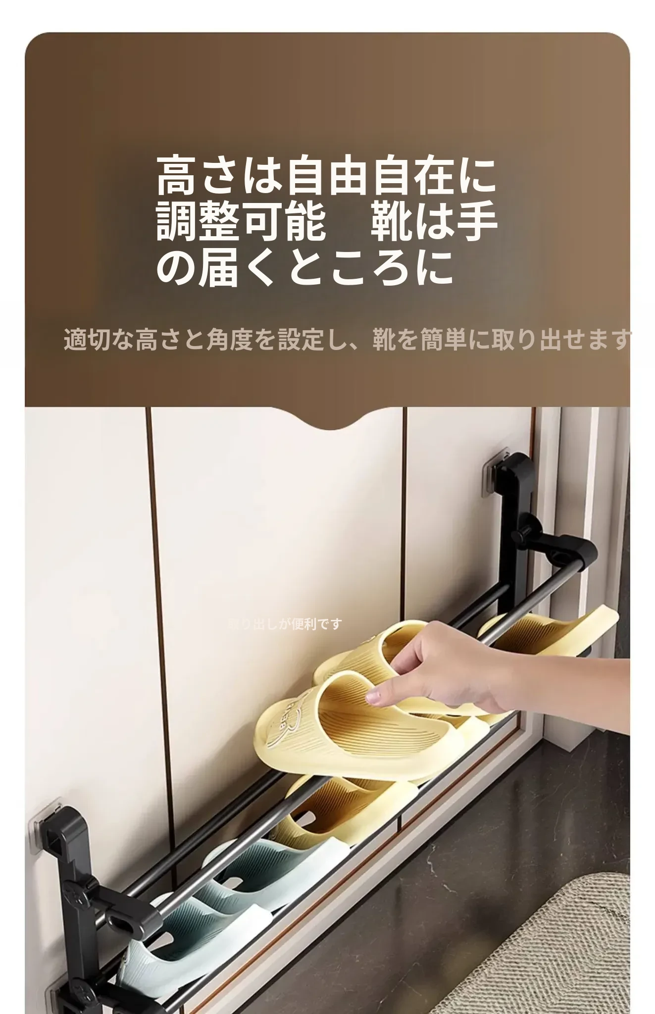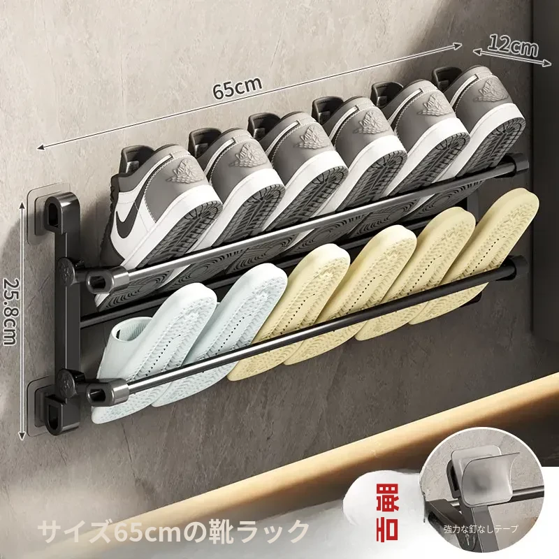 黒●65CM【二重収納/6足の靴を掛けられる】