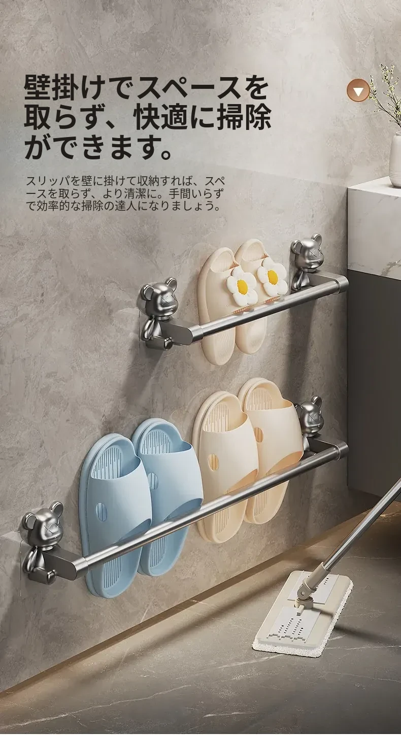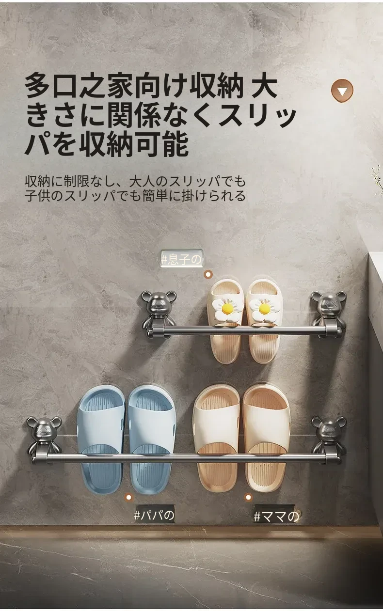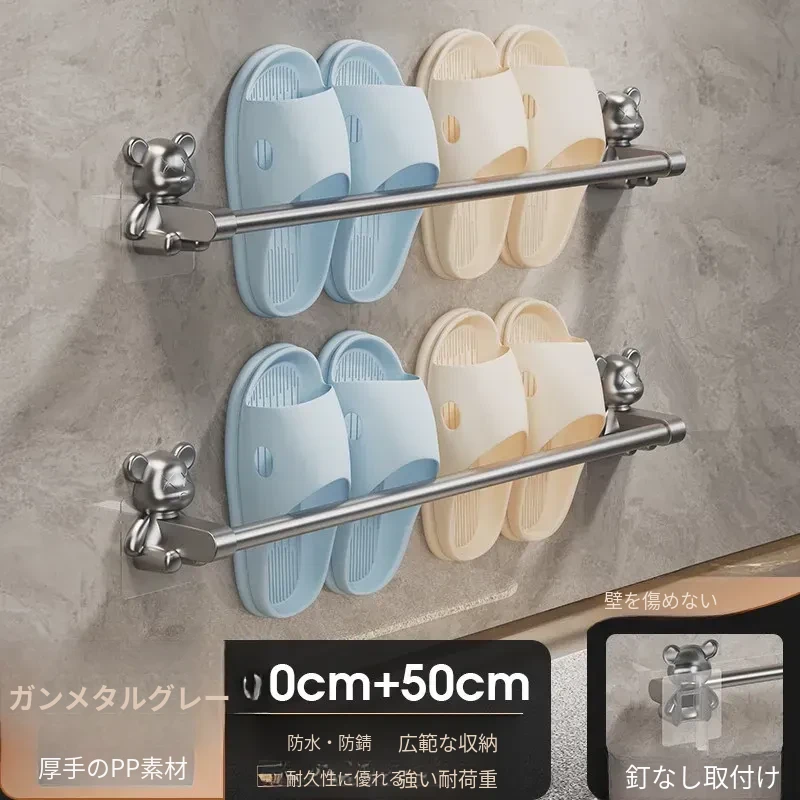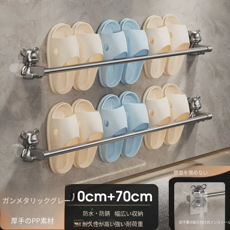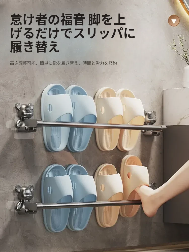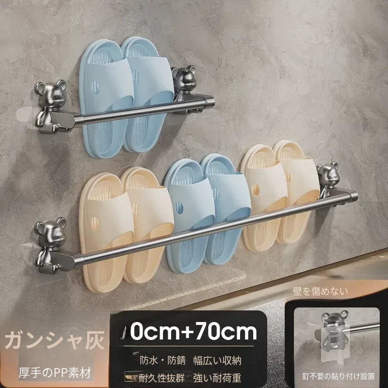 バスルーム用穴あけ不要スリッパラック!トイレや洗面所に最適な壁掛け収納棚。水切り機能付きで、靴の整理整頓も簡単!スペースを有効活用する便利な収納アイテムです。