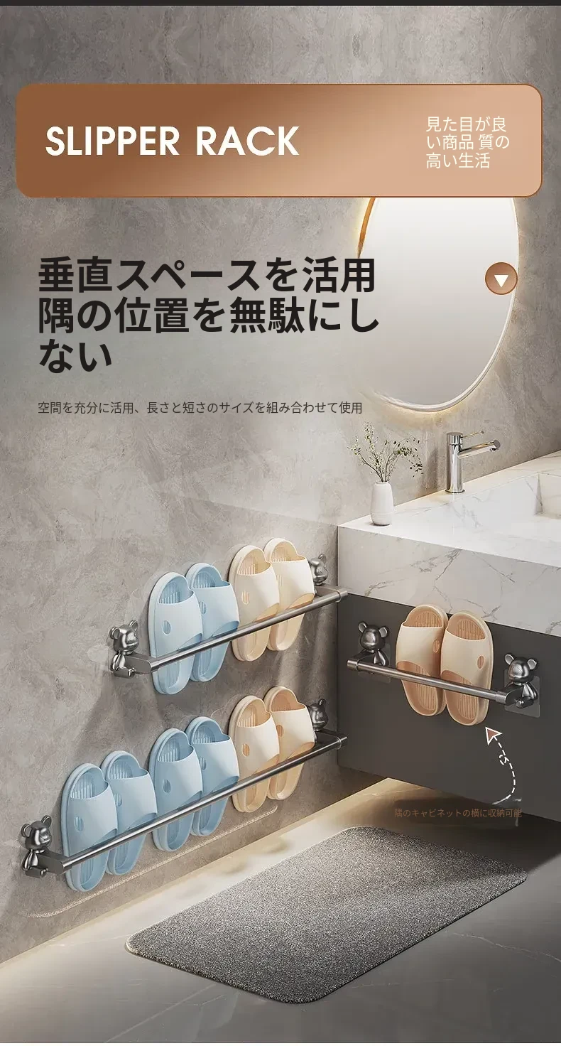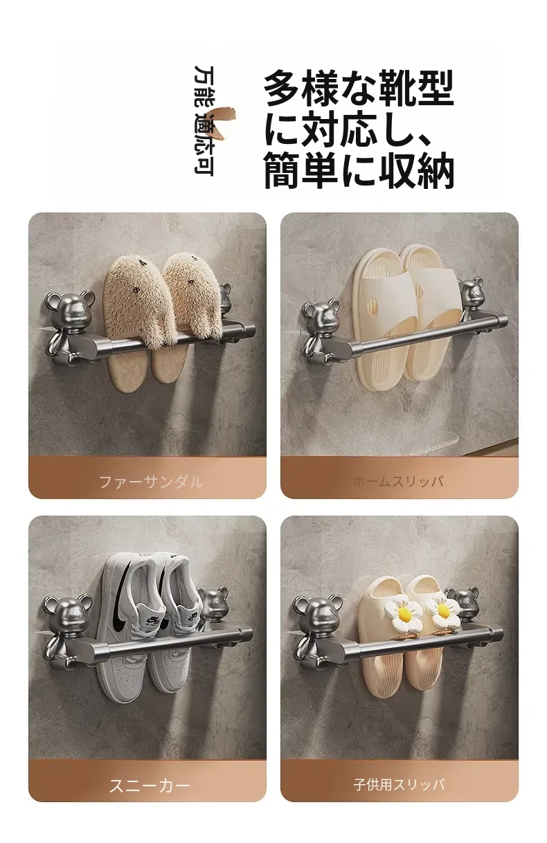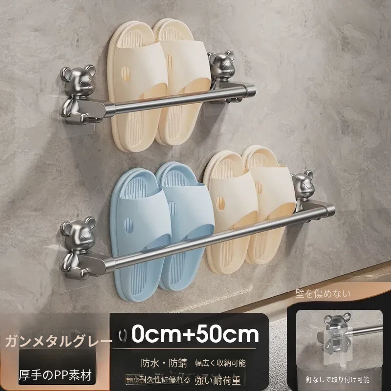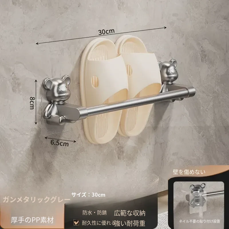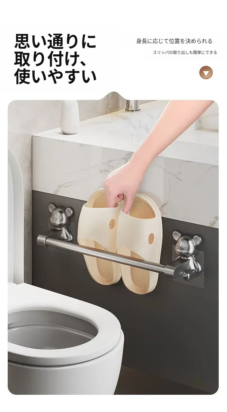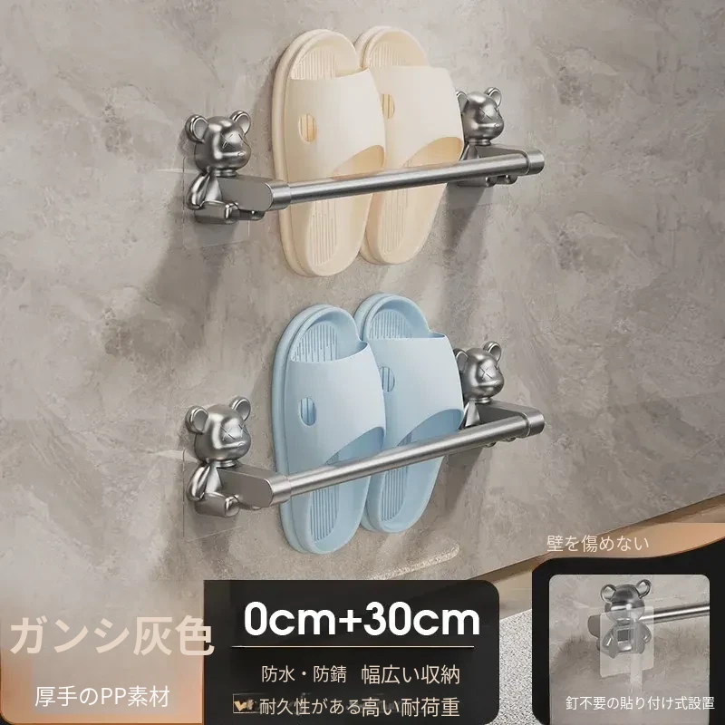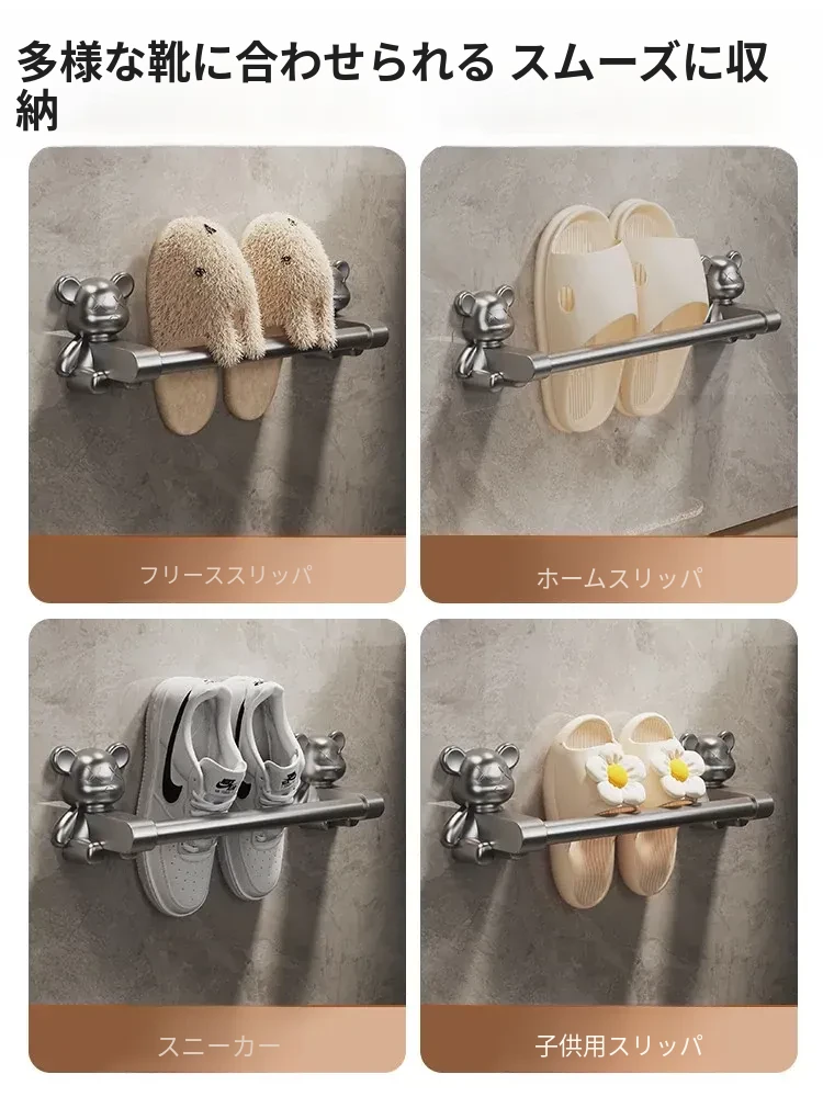 バスルーム用穴あけ不要スリッパラック!トイレや洗面所に最適な壁掛け収納棚。水切り機能付きで、靴の整理整頓も簡単!スペースを有効活用する便利な収納アイテムです。