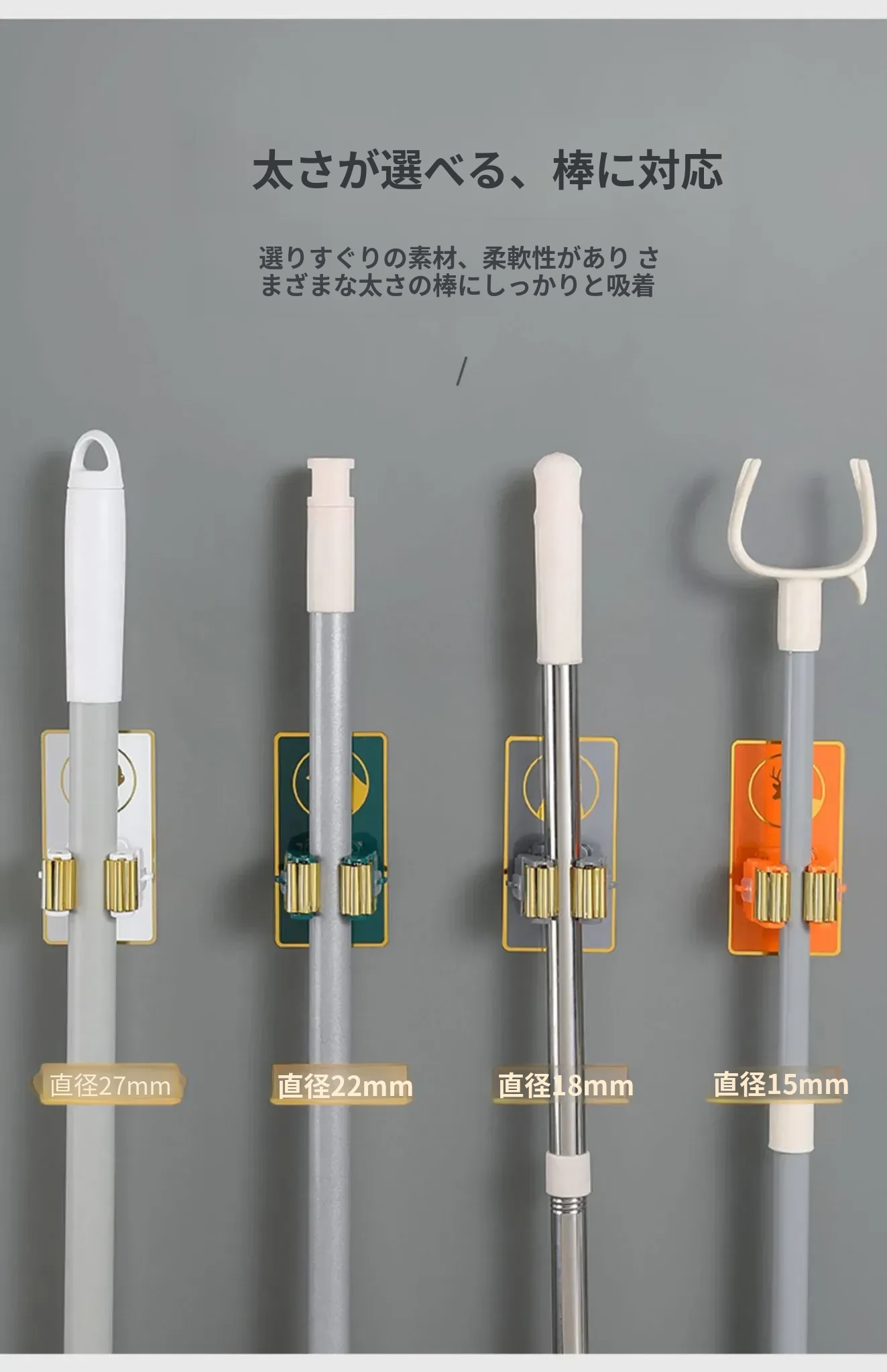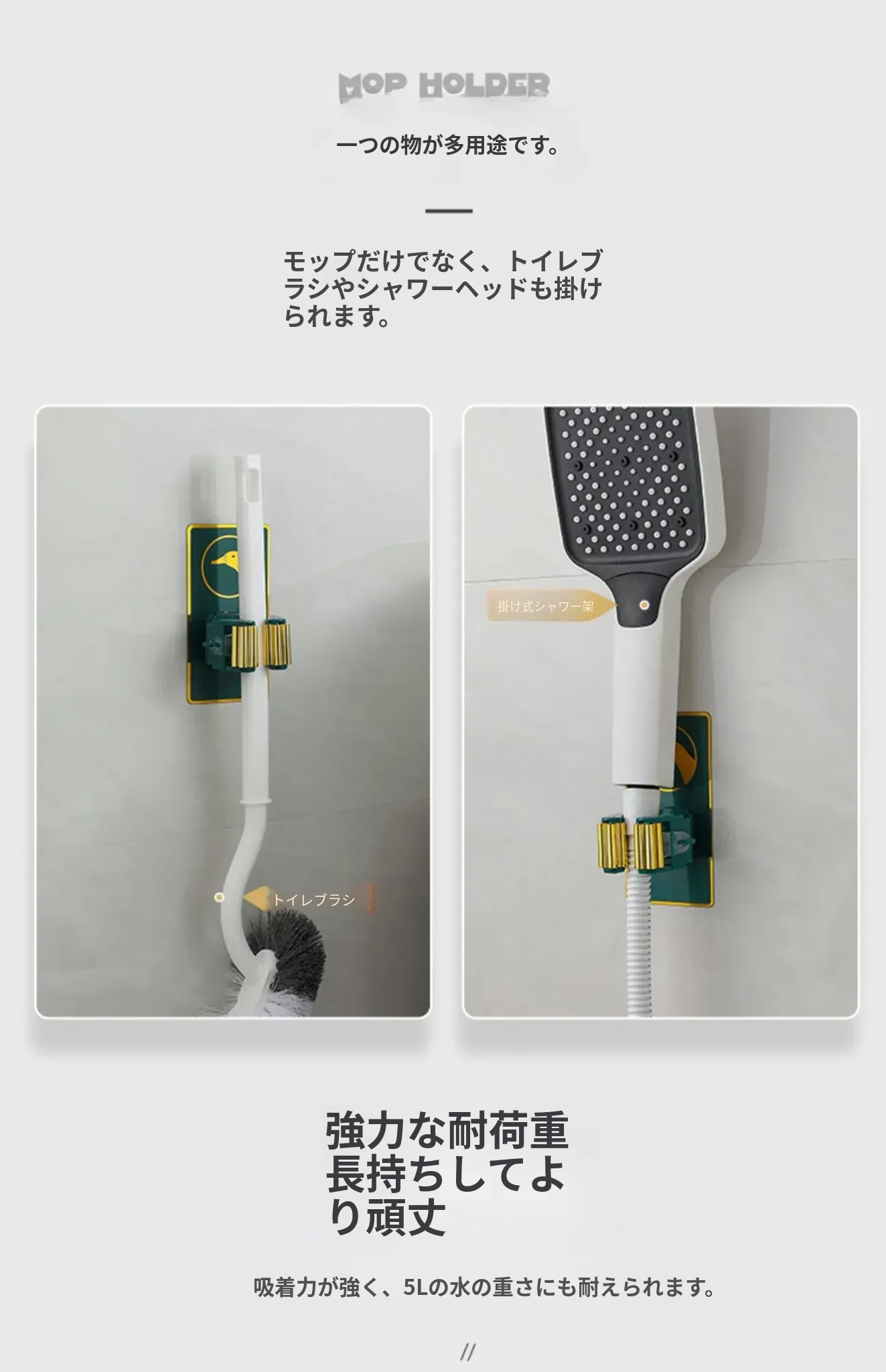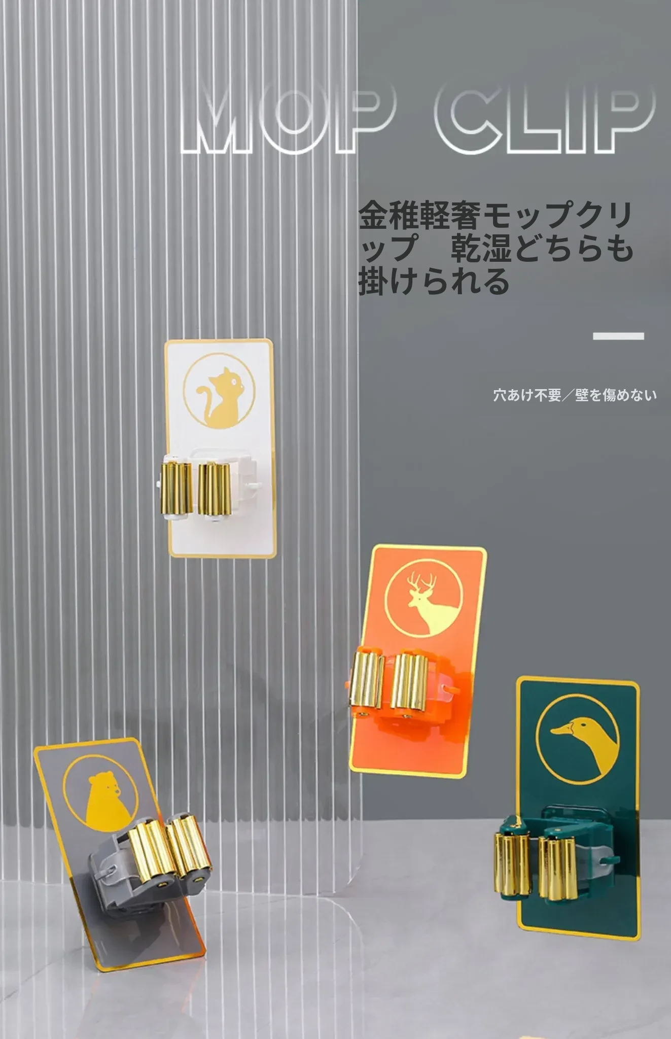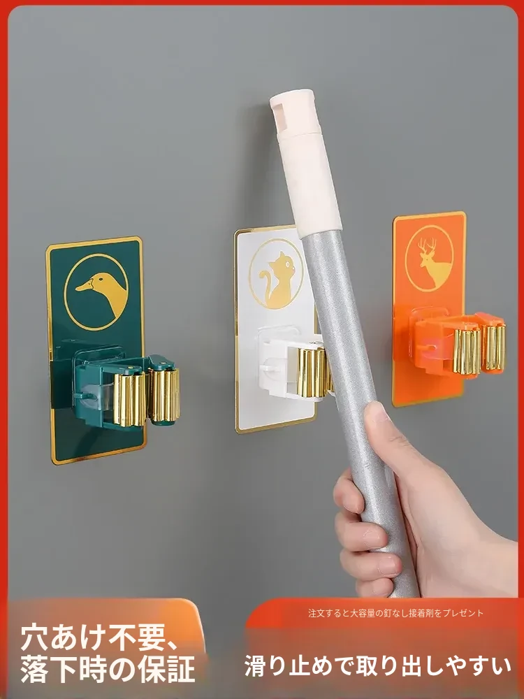 壁掛けに便利!穴あけ不要のトイレ収納マジックフック - 強力粘着のモップホルダー&掃除用具クリップでスッキリ整理!