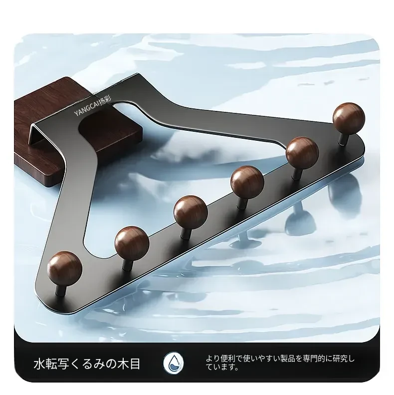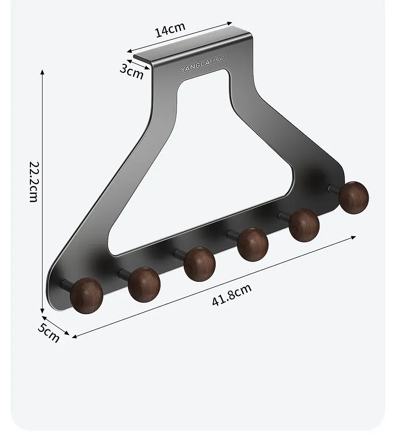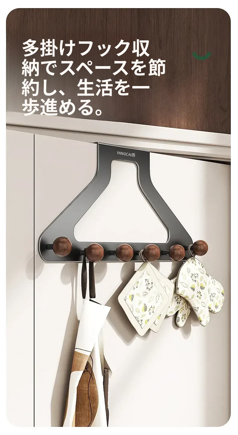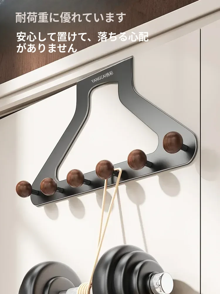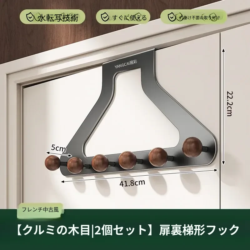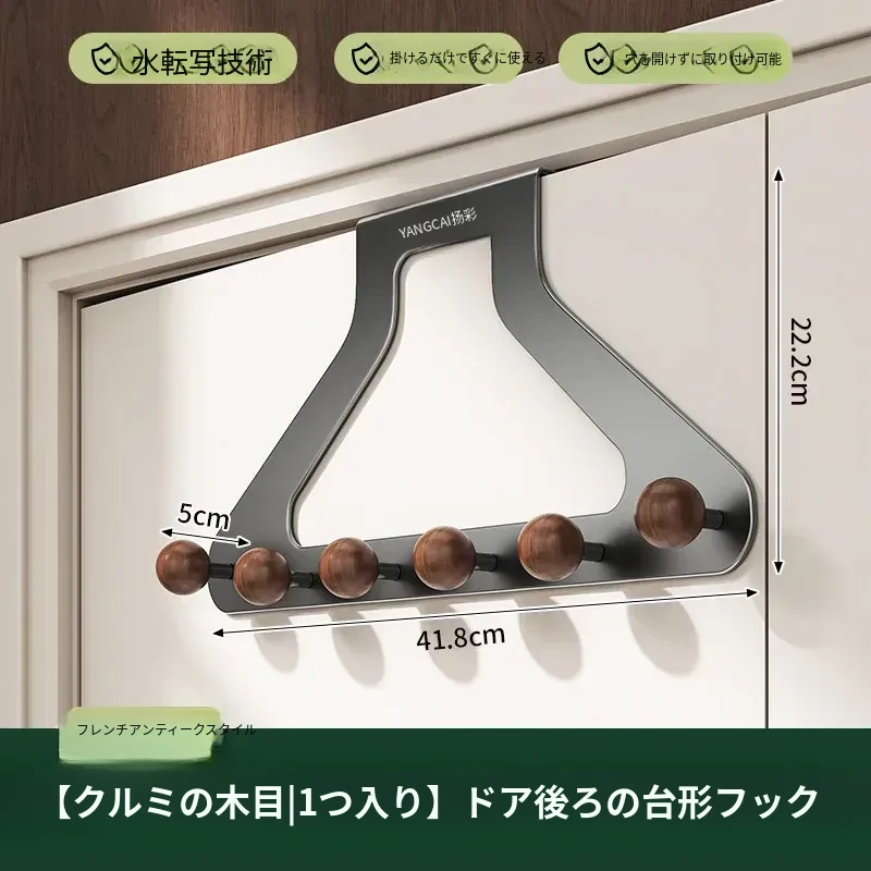 ウォールナット色-組み立て不要のドア裏6フック【すぐに使える】
