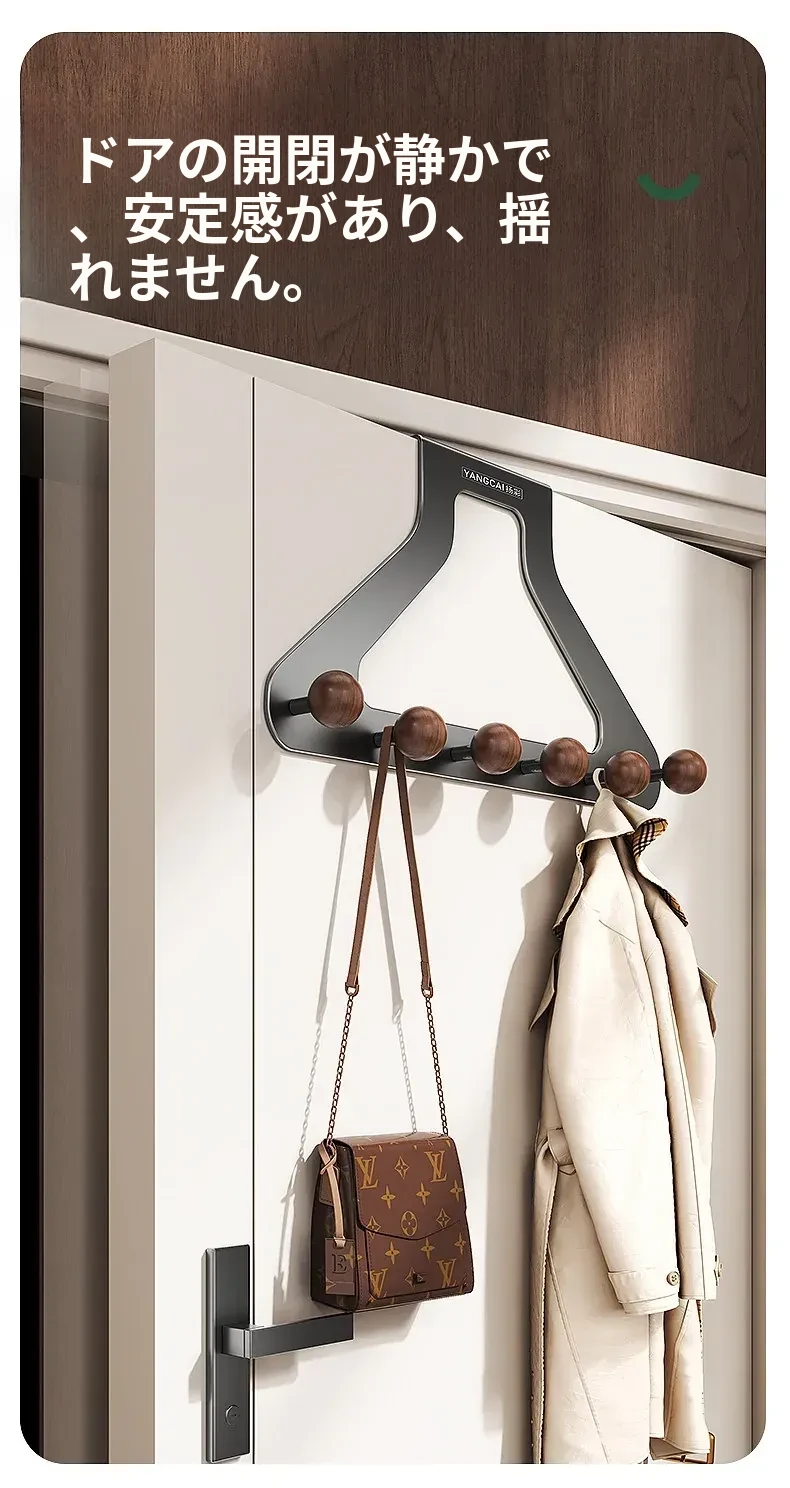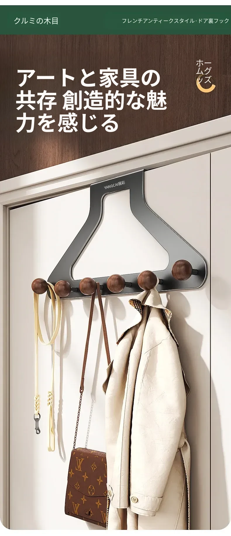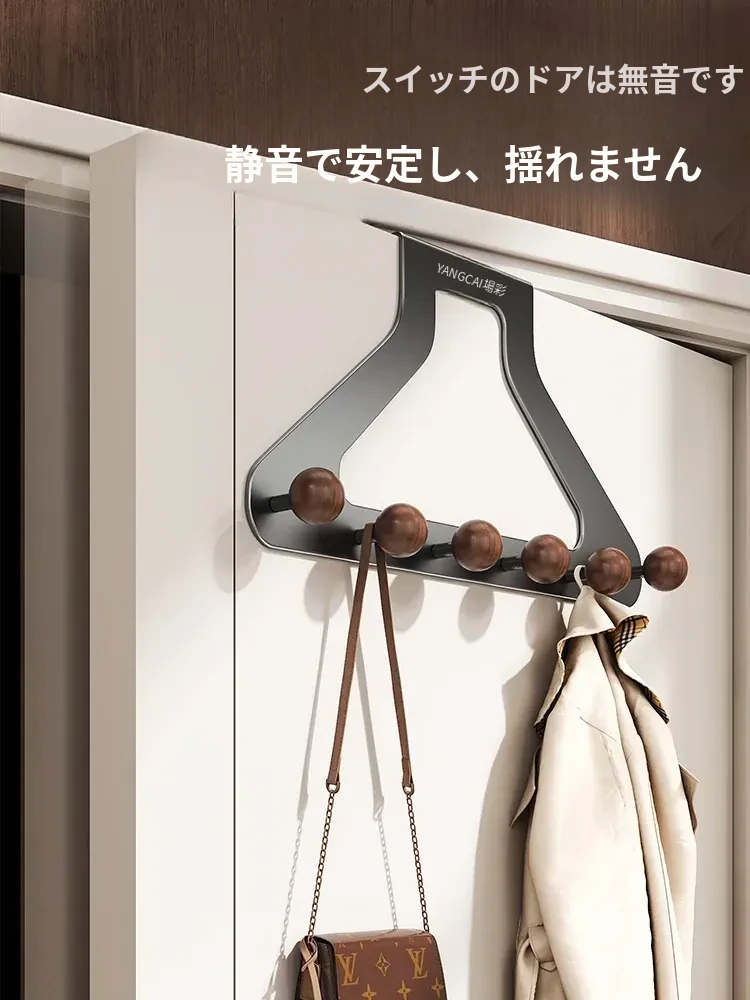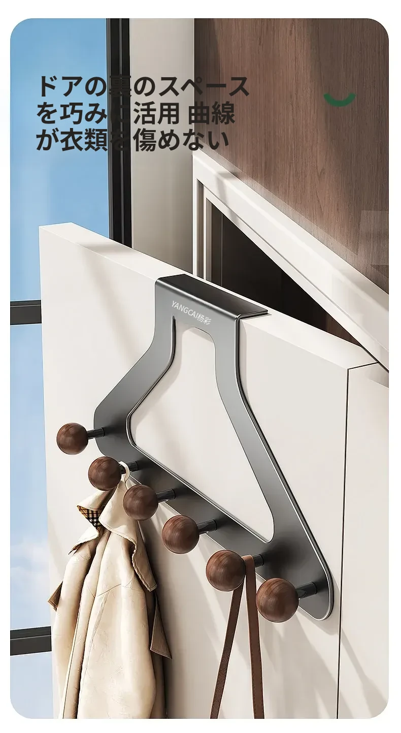 ドア背面フック&ハンガー - 穴を開けずに簡単取り付け!寝室や玄関で衣類や帽子をスッキリ収納できる便利アイテム。おしゃれなデザインでお部屋のインテリアにもピッタリ!
