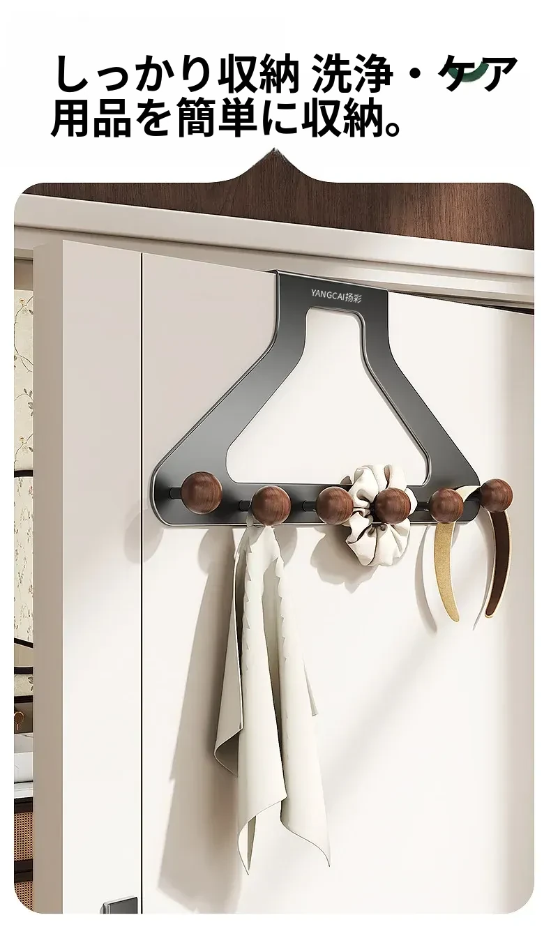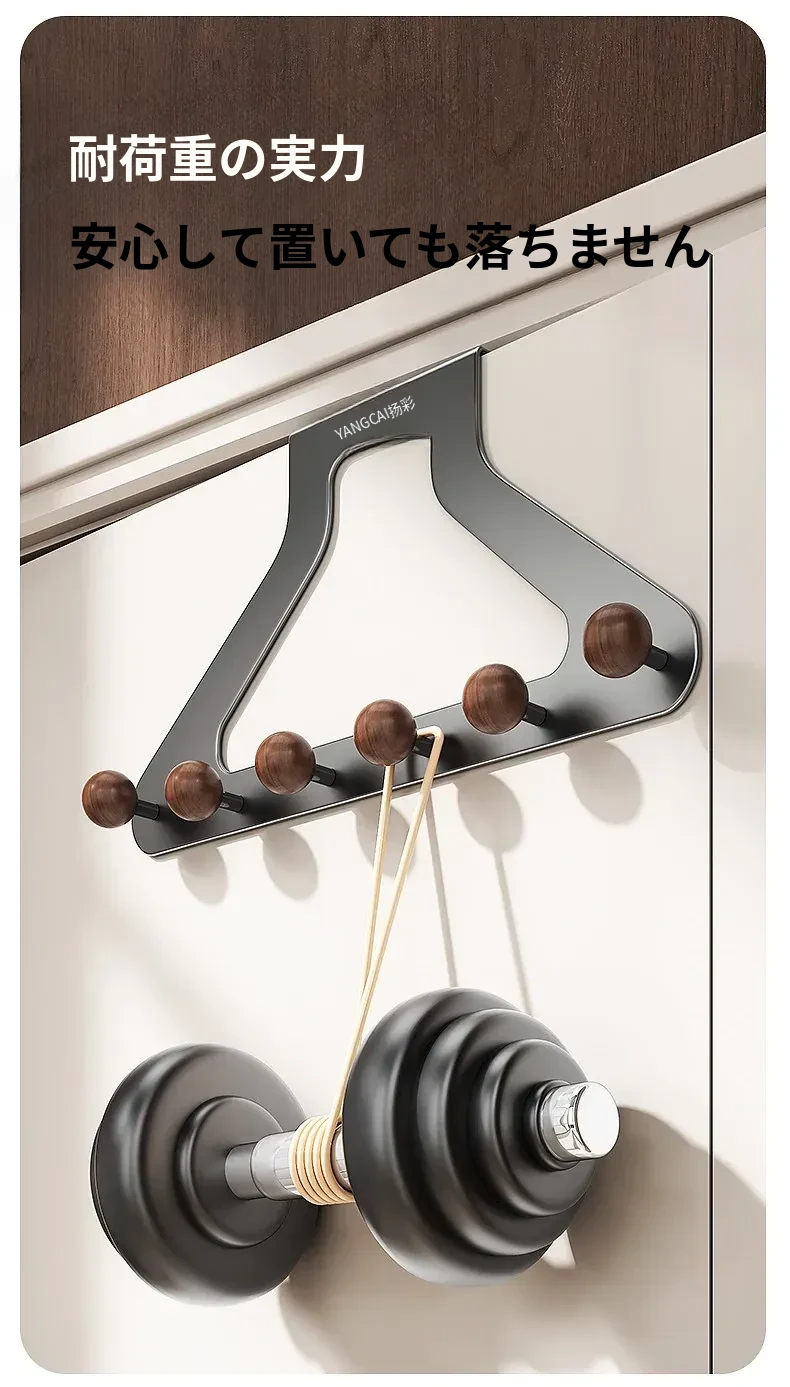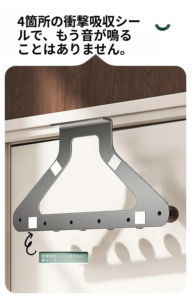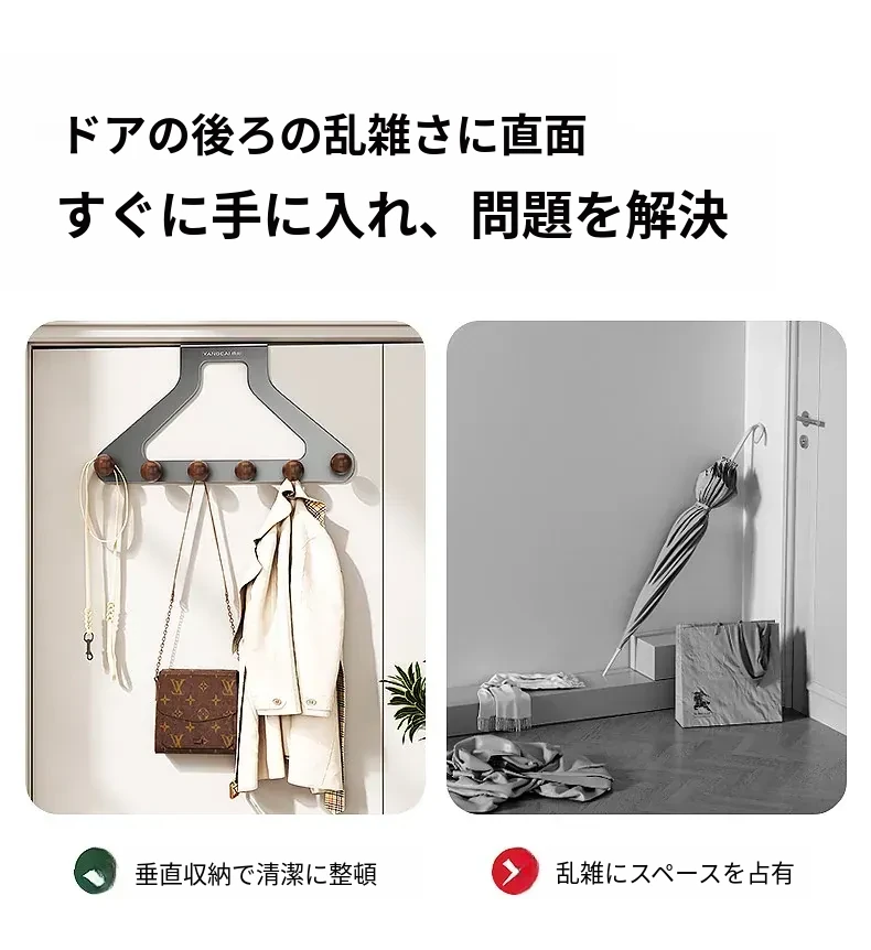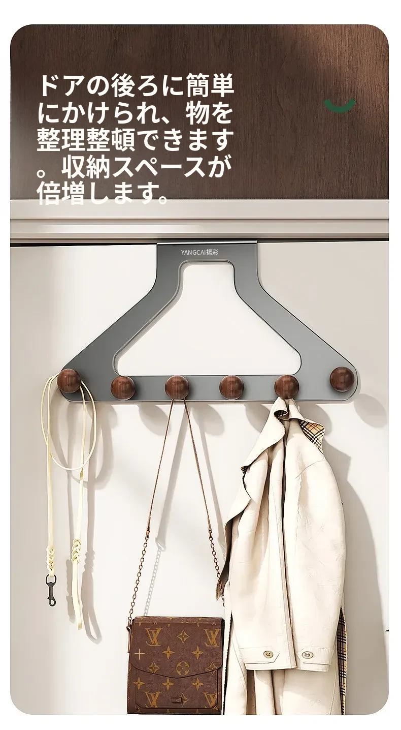 ドア背面フック&ハンガー - 穴を開けずに簡単取り付け!寝室や玄関で衣類や帽子をスッキリ収納できる便利アイテム。おしゃれなデザインでお部屋のインテリアにもピッタリ!