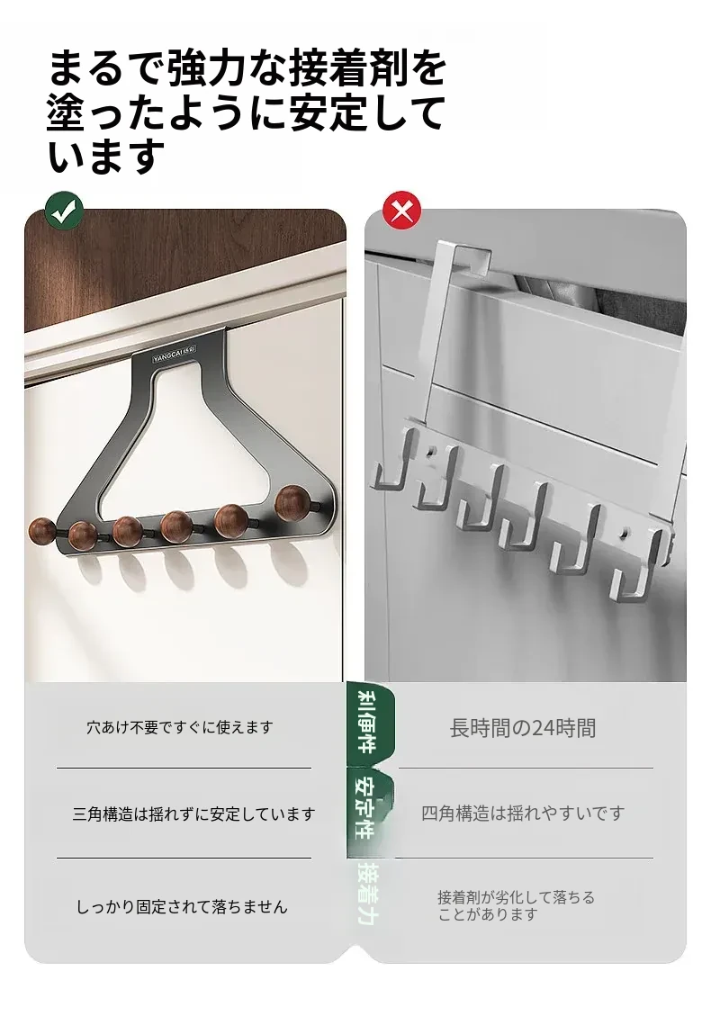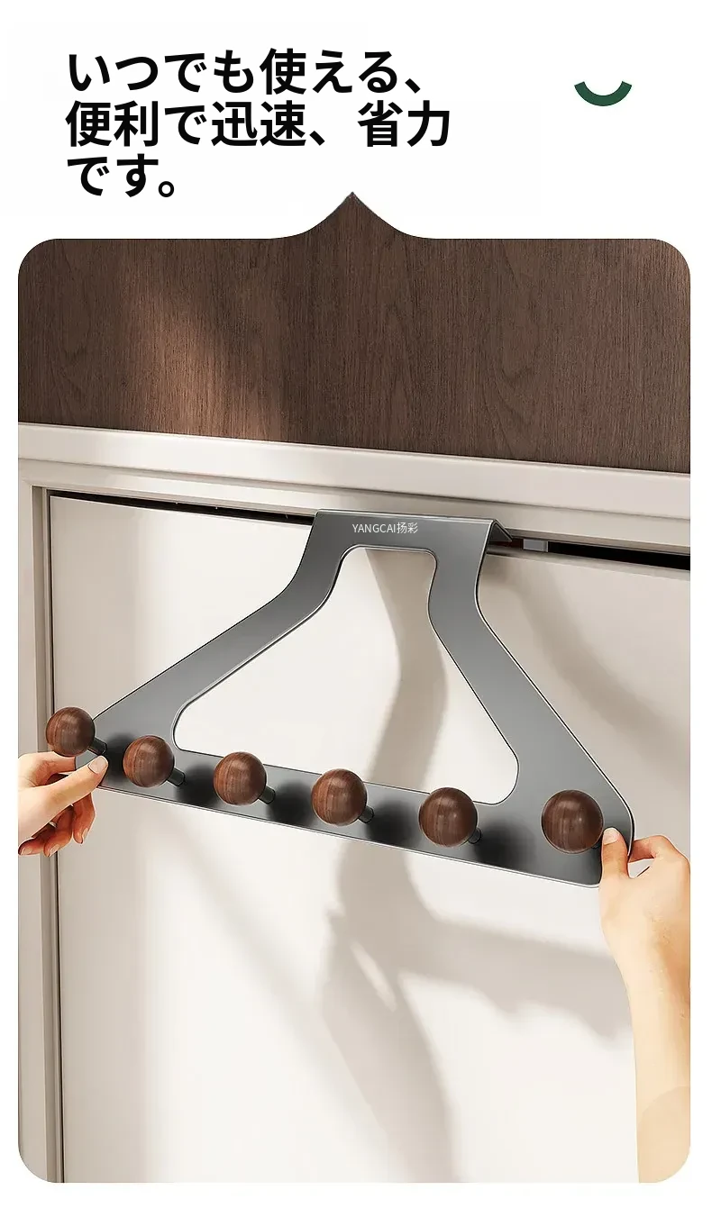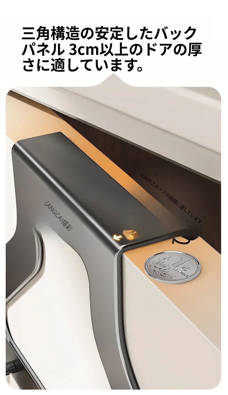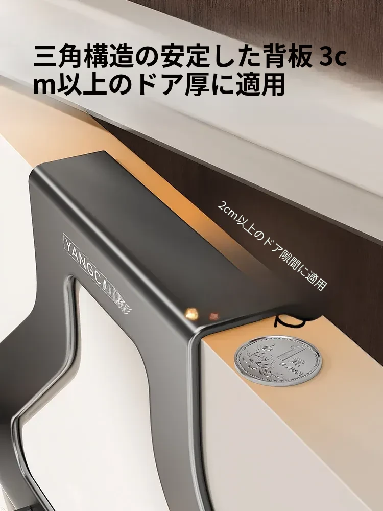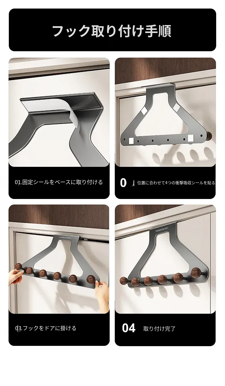 ドア背面フック&ハンガー - 穴を開けずに簡単取り付け!寝室や玄関で衣類や帽子をスッキリ収納できる便利アイテム。おしゃれなデザインでお部屋のインテリアにもピッタリ!