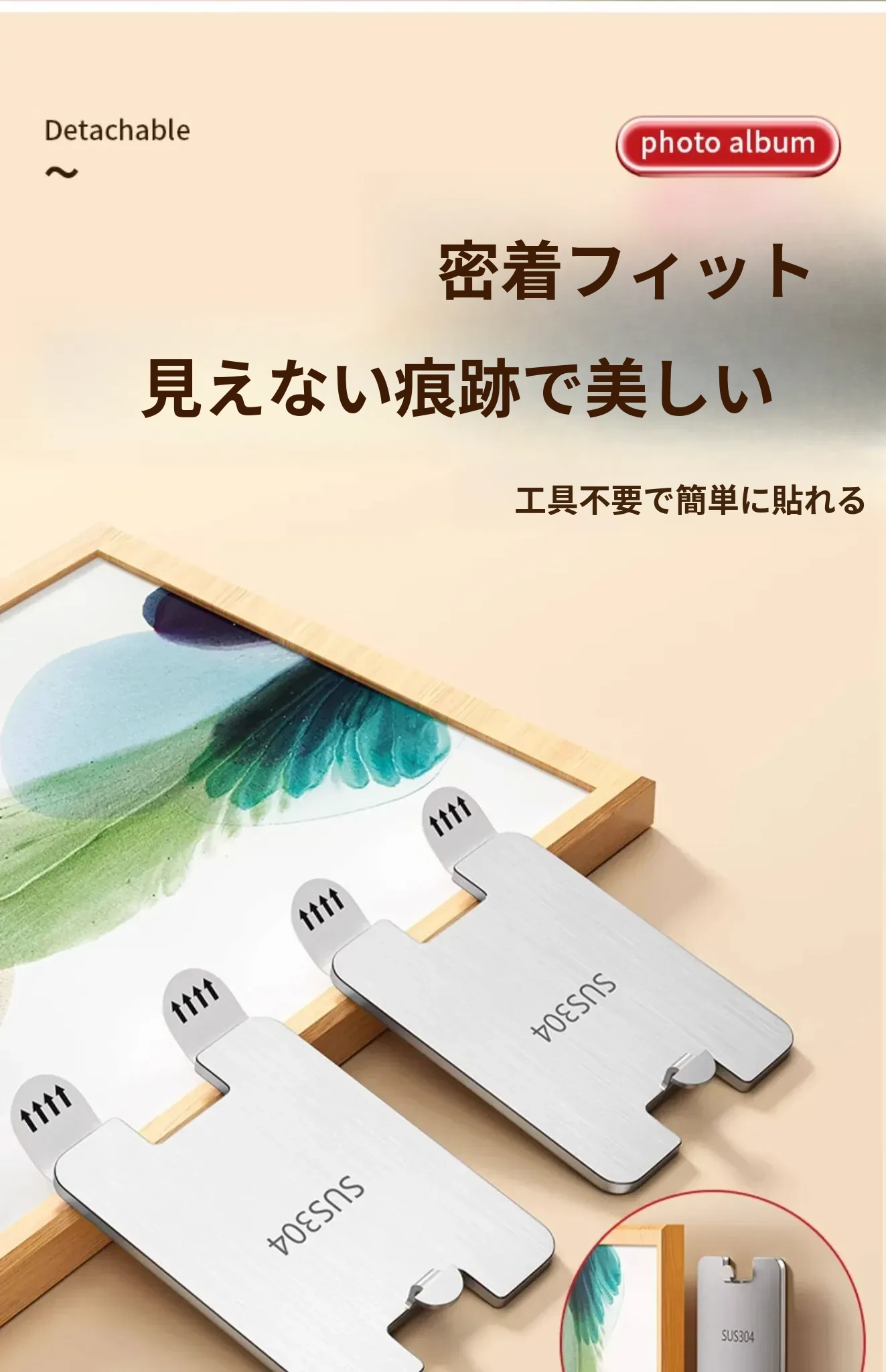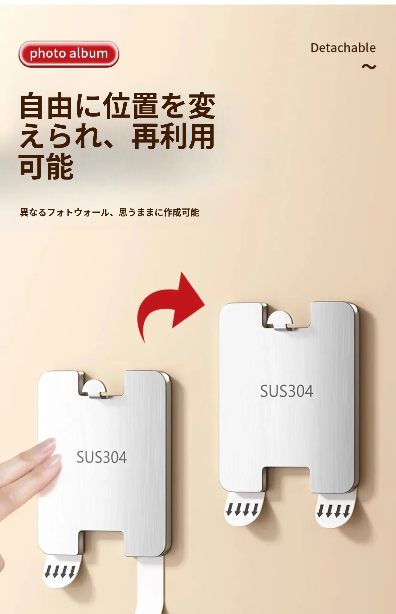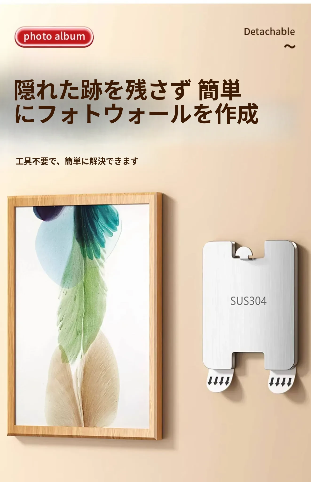 婚礼思い出を美しく飾る!穴を開けずに簡単取り付け、ウェディングフォト専用の無痕フック付きフレーム。重さにも安心の固定力で、壁にしっかりと固定できます。おしゃれなインテリアを演出しましょう!