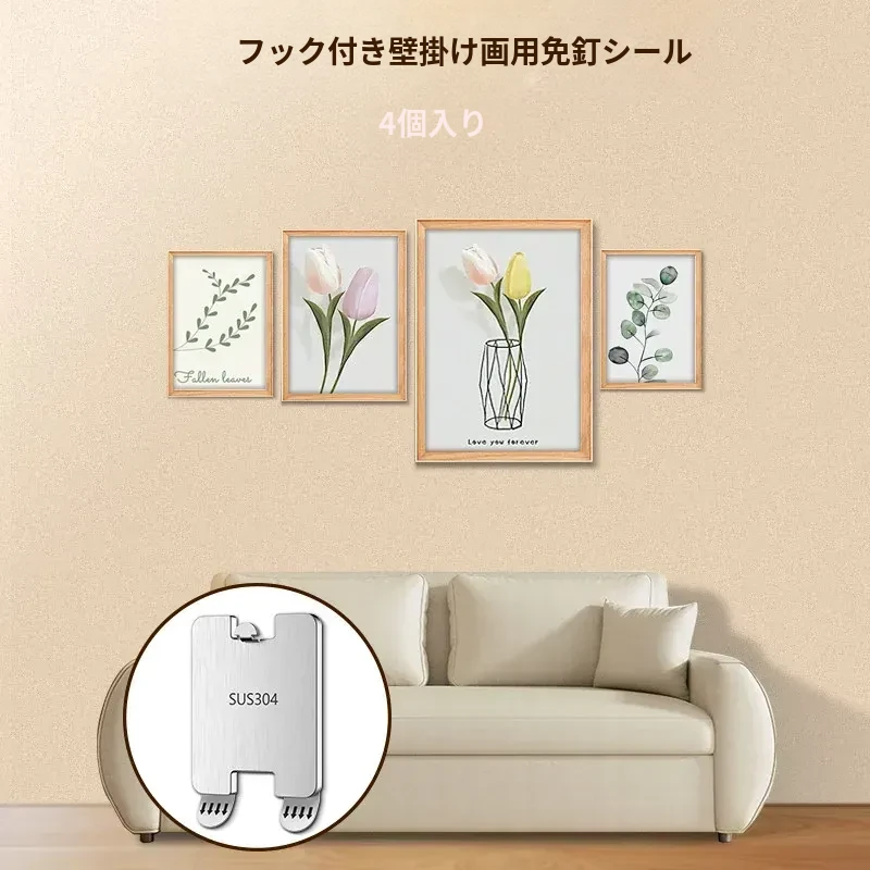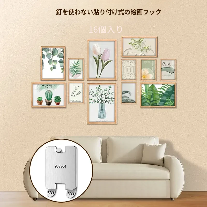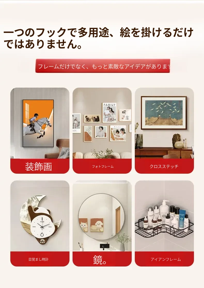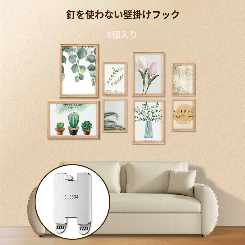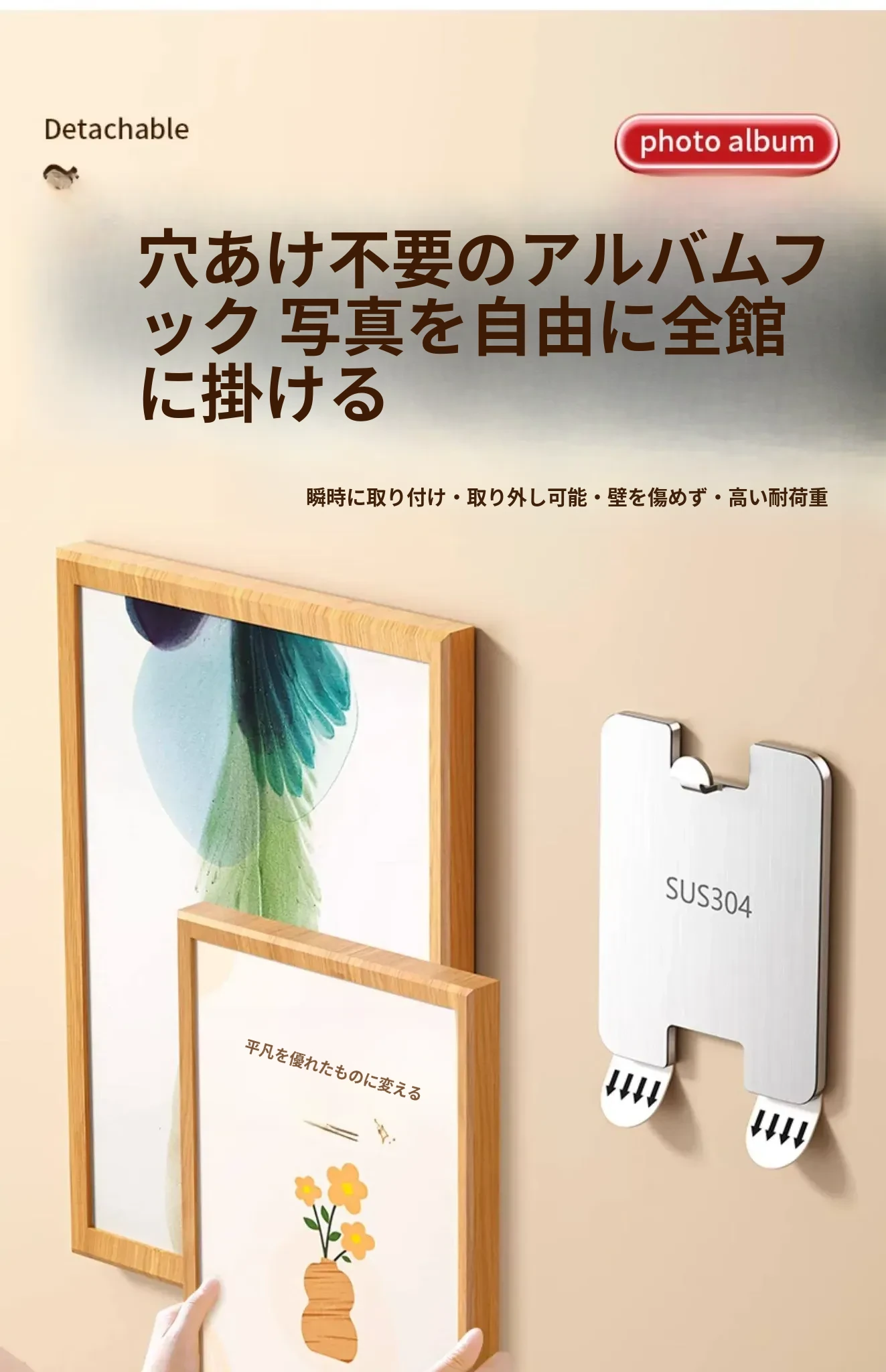 婚礼思い出を美しく飾る!穴を開けずに簡単取り付け、ウェディングフォト専用の無痕フック付きフレーム。重さにも安心の固定力で、壁にしっかりと固定できます。おしゃれなインテリアを演出しましょう!