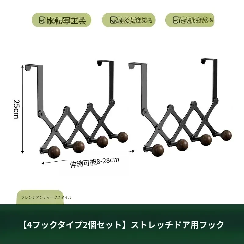 お得2個入り✅ドア後ろ伸縮4フック【すぐに使える】