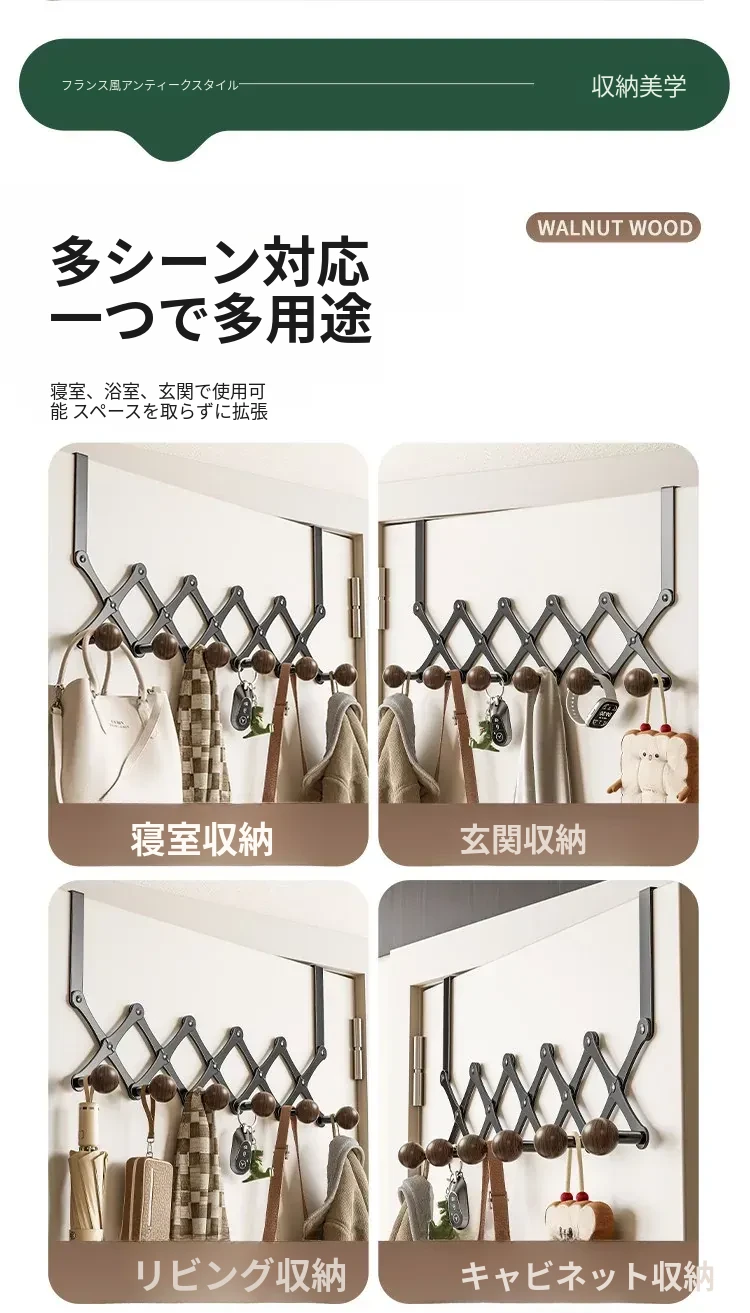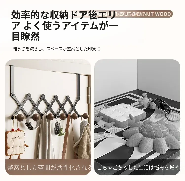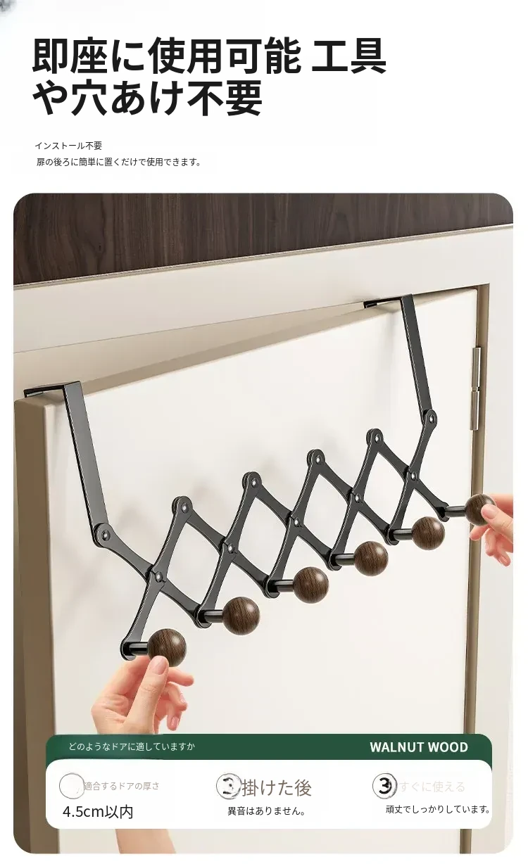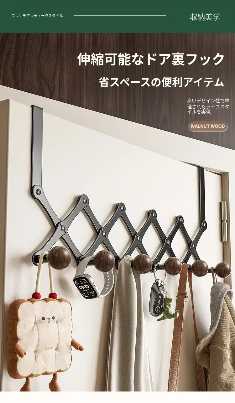お得2個入り✅ドア後ろ伸縮6フック【すぐに使える】