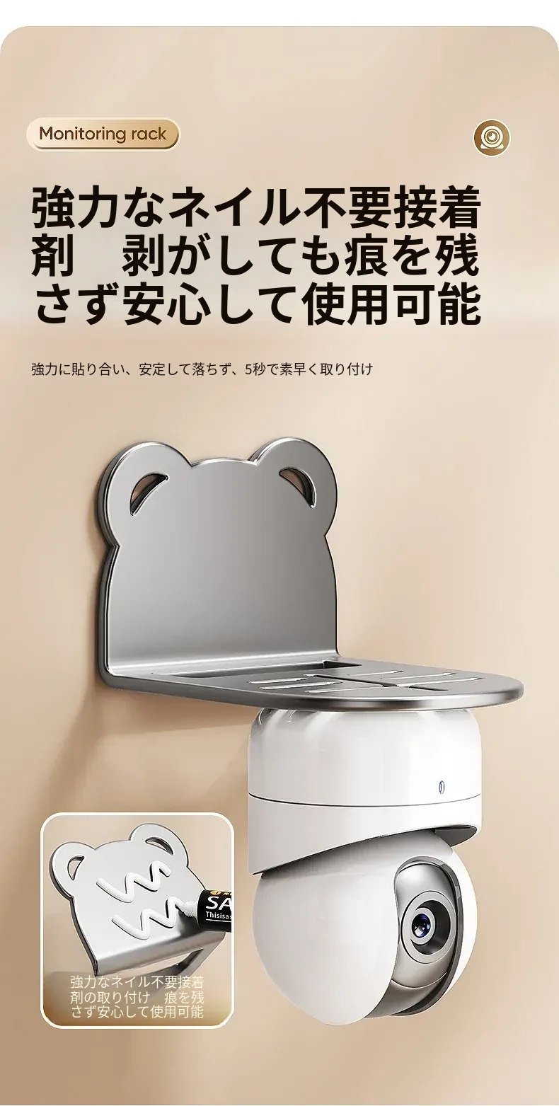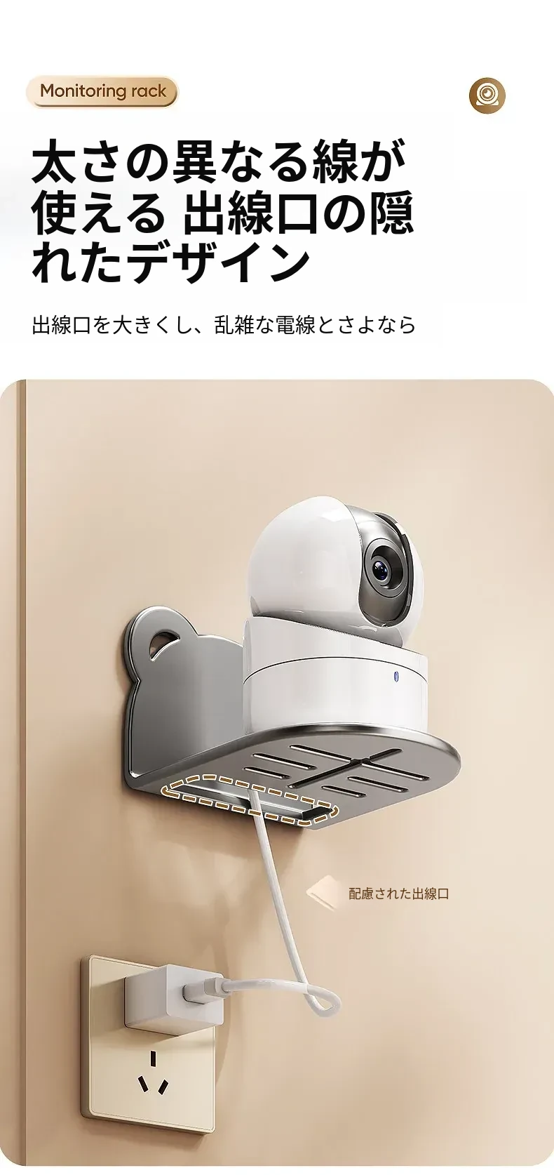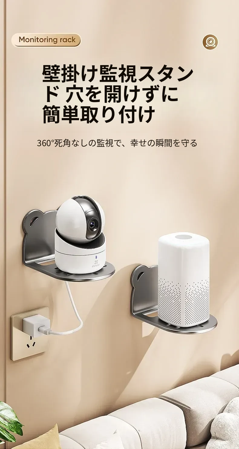 穴あけ不要!監視カメラ用マウント&ルーター置き場 - 家庭用壁掛けスタンド、室内外対応の便利なトレー。安全でスマートな設置を実現!