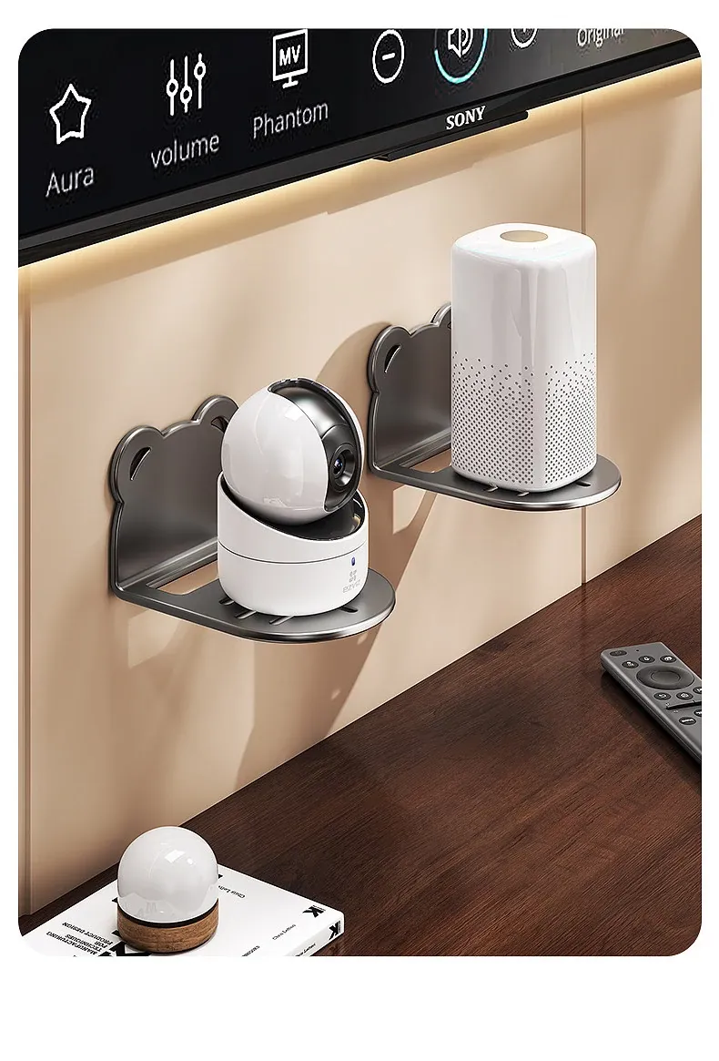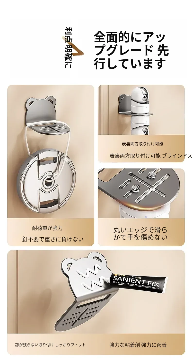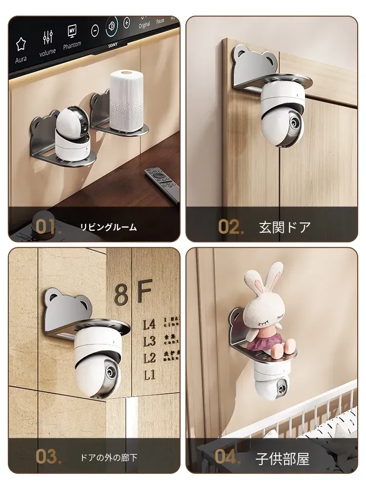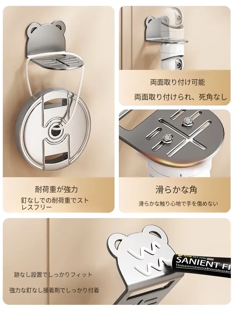 穴あけ不要!監視カメラ用マウント&ルーター置き場 - 家庭用壁掛けスタンド、室内外対応の便利なトレー。安全でスマートな設置を実現!