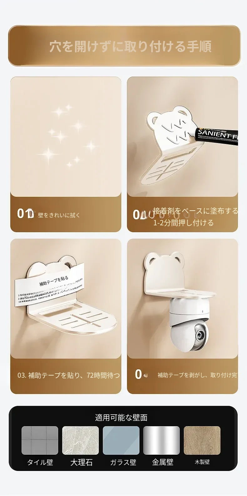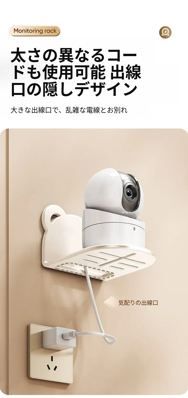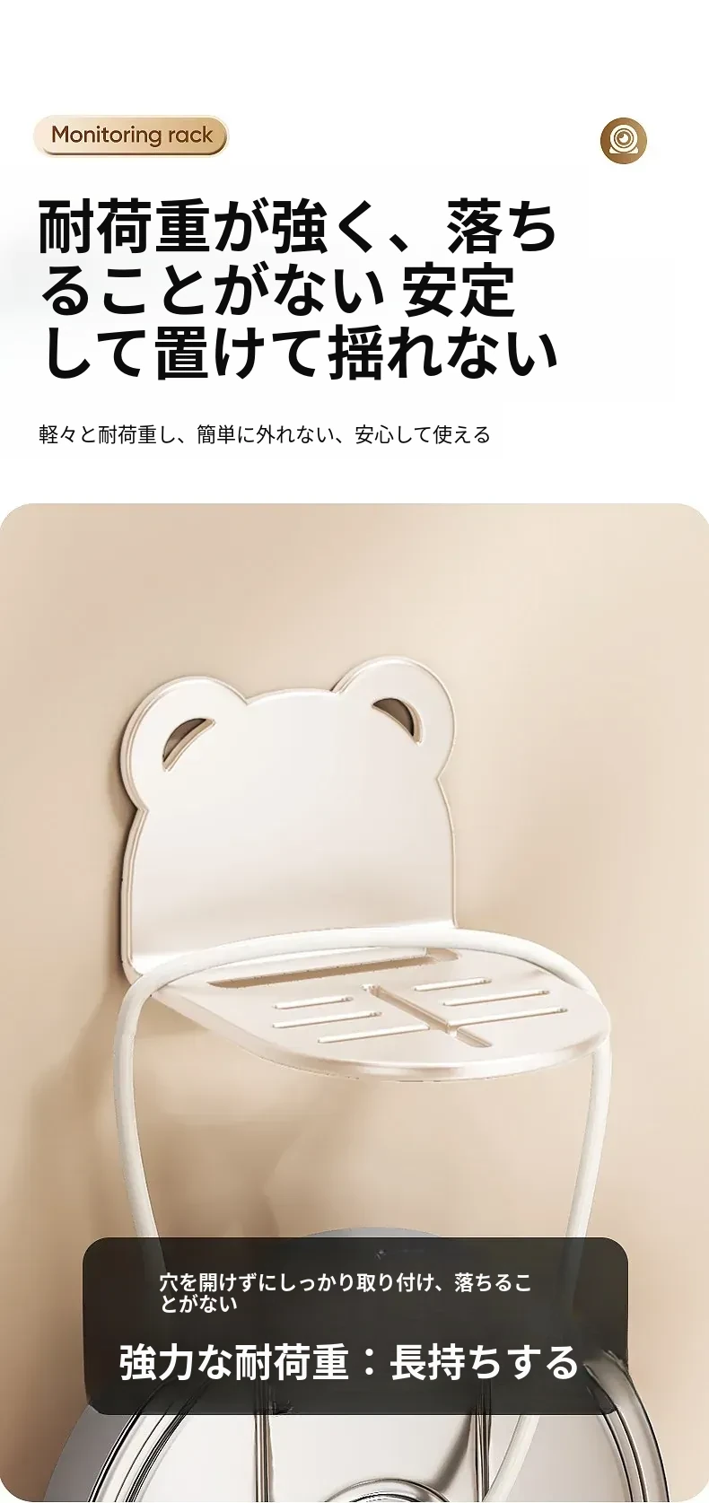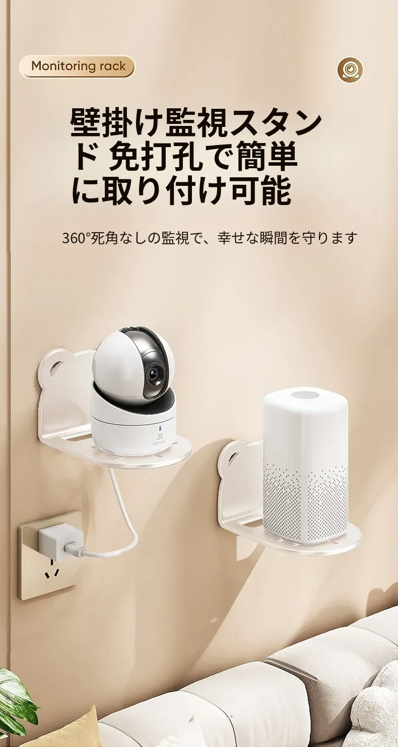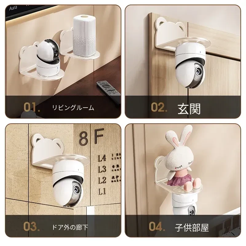 穴あけ不要!壁掛け式カメラ収納ラック - 自宅や屋外に最適なルーター・監視器用スタンド。手軽に設置でき、スッキリとした空間を実現!