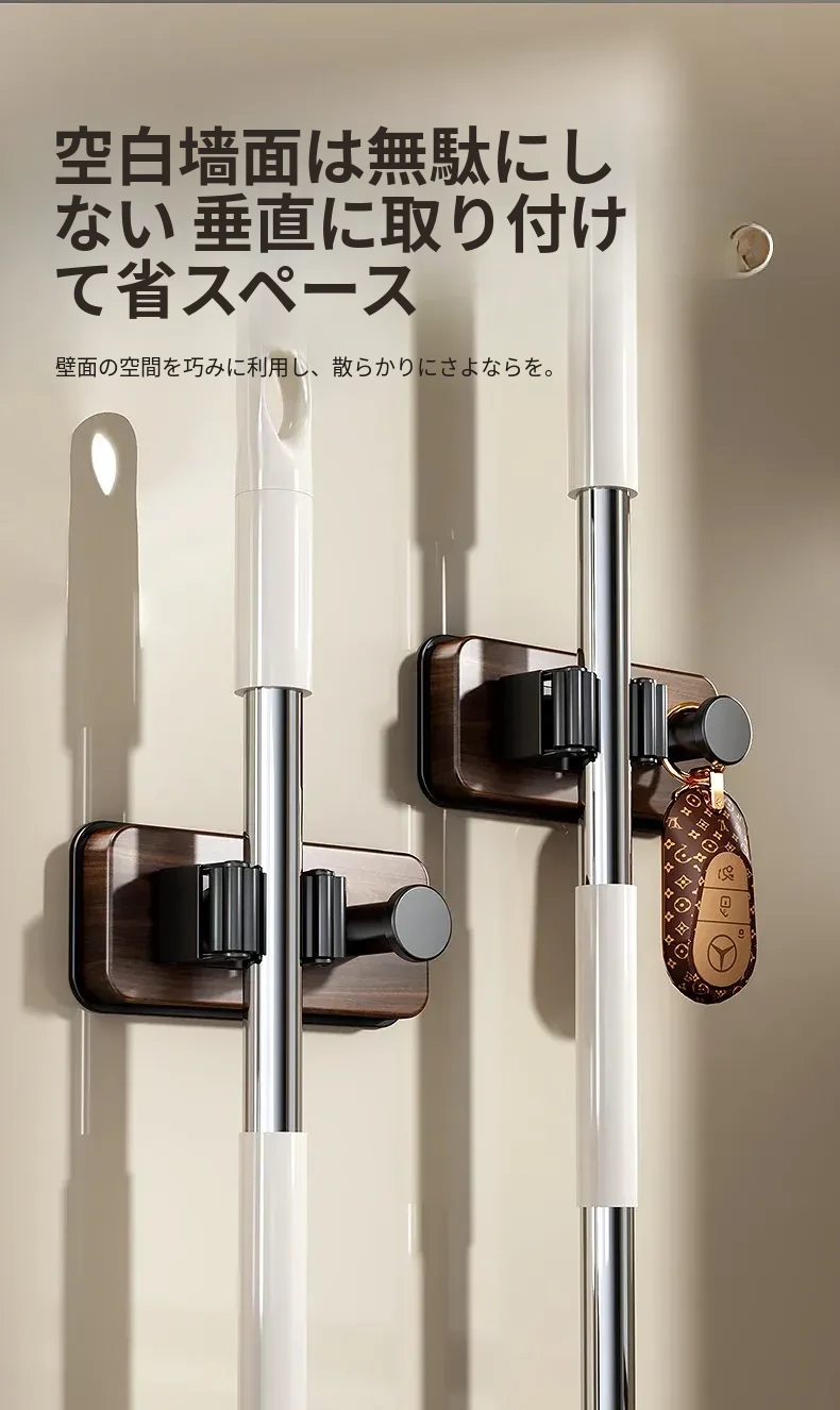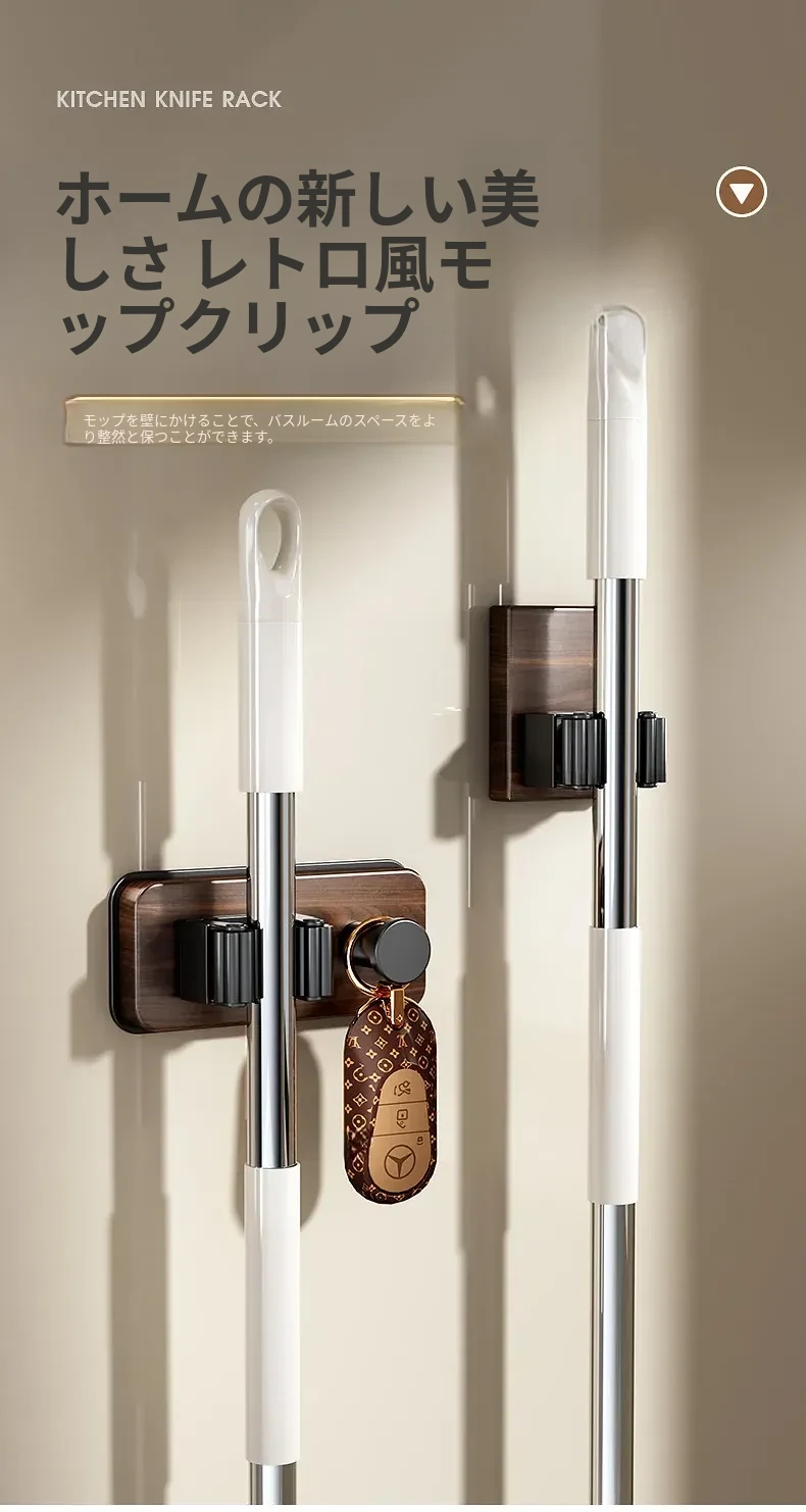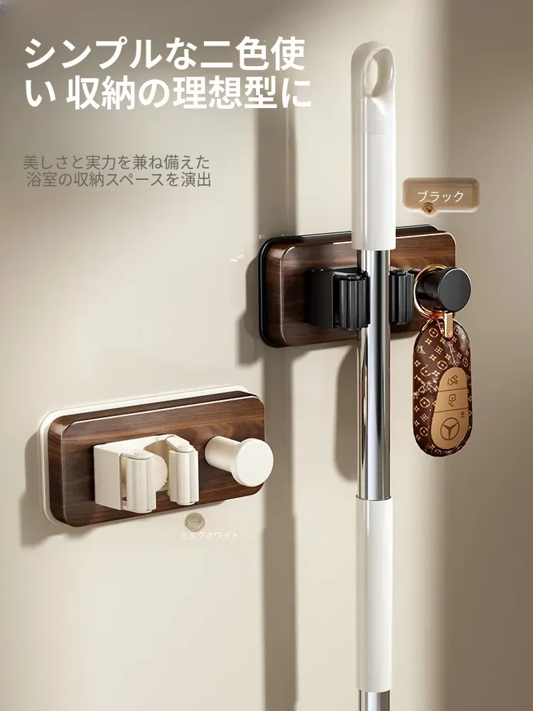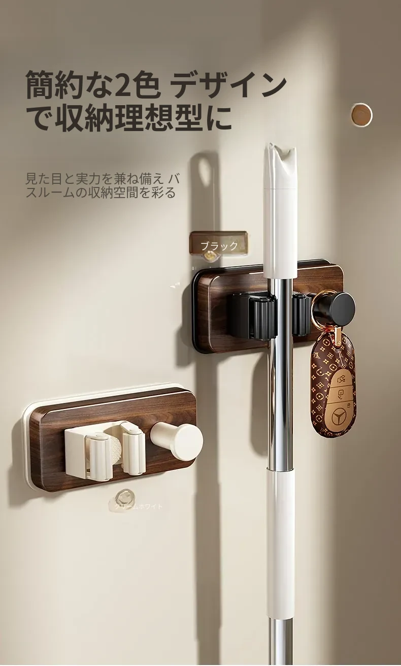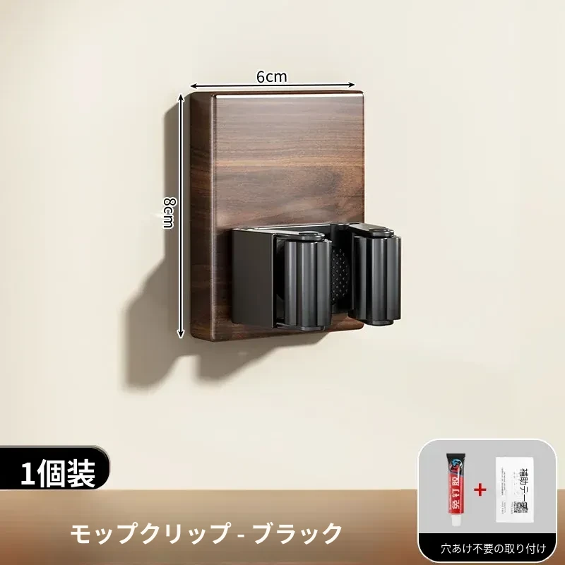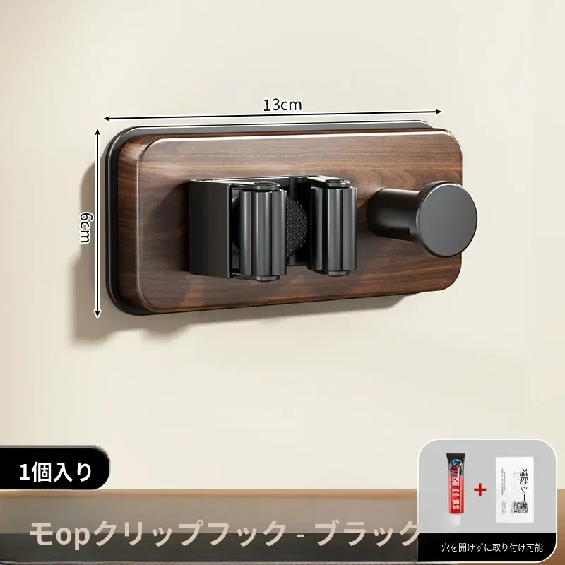 【ウォールナット色・ブラック】フック付きモップクリップ