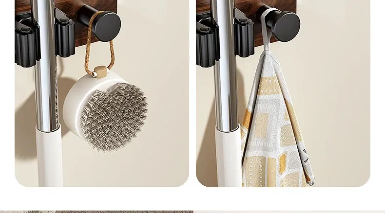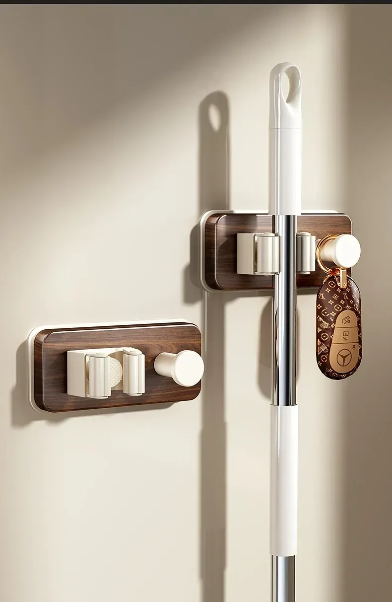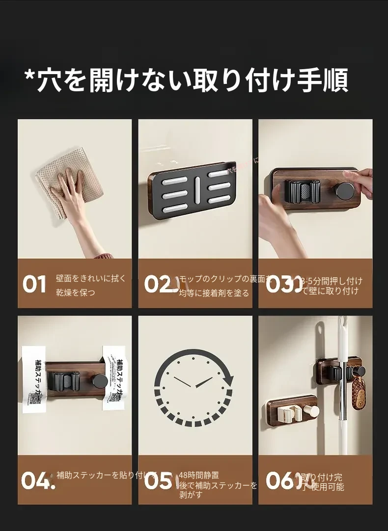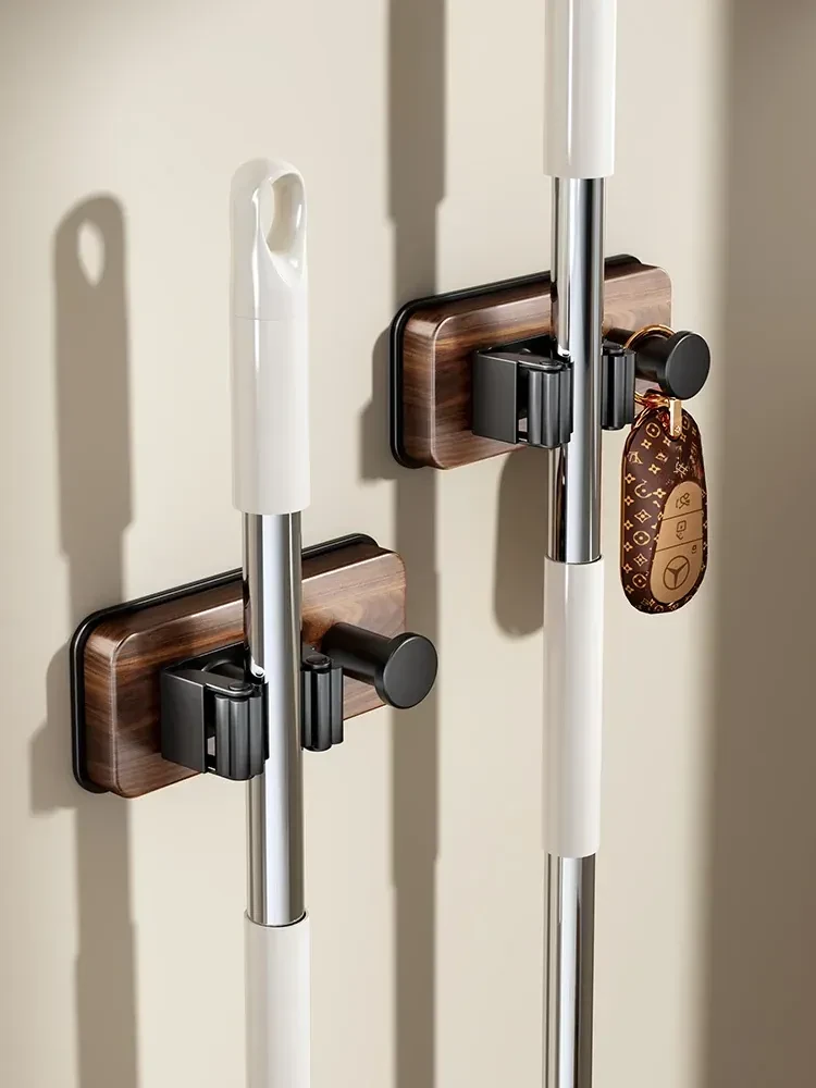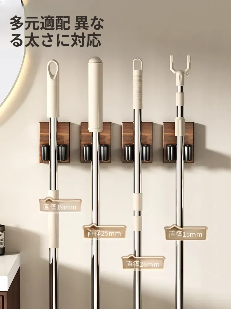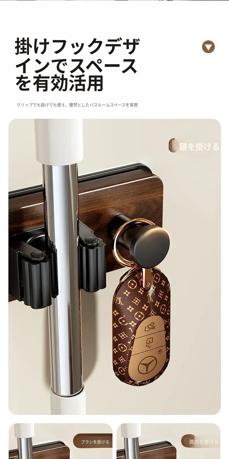 【ウォールナット色・ブラック】フック付きモップクリップ