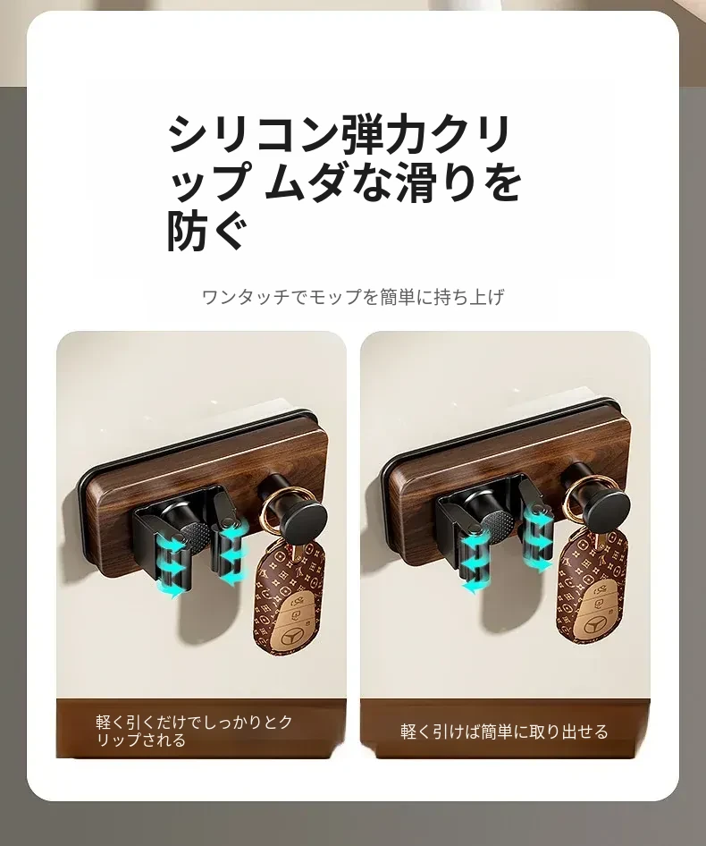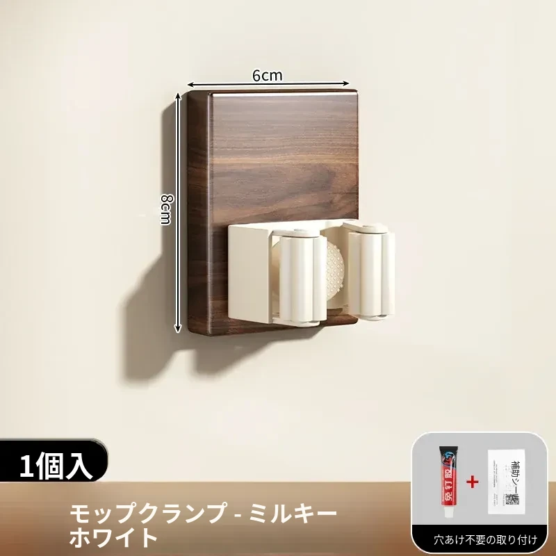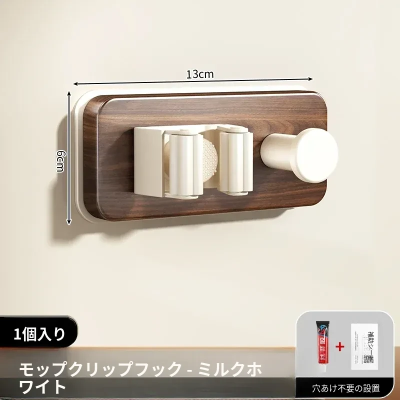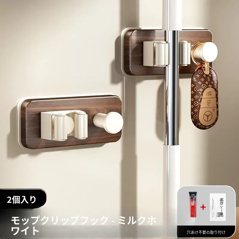【ウォールナット色・ホワイト】フック付きモップクリップ