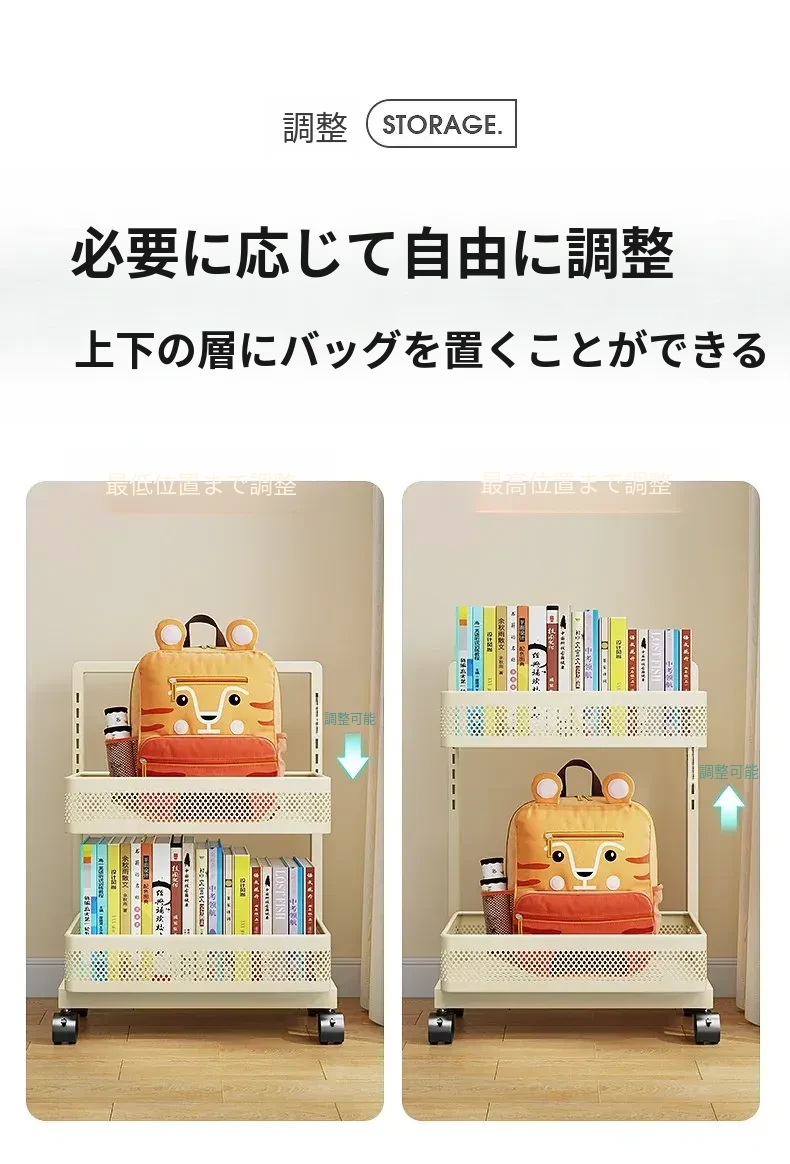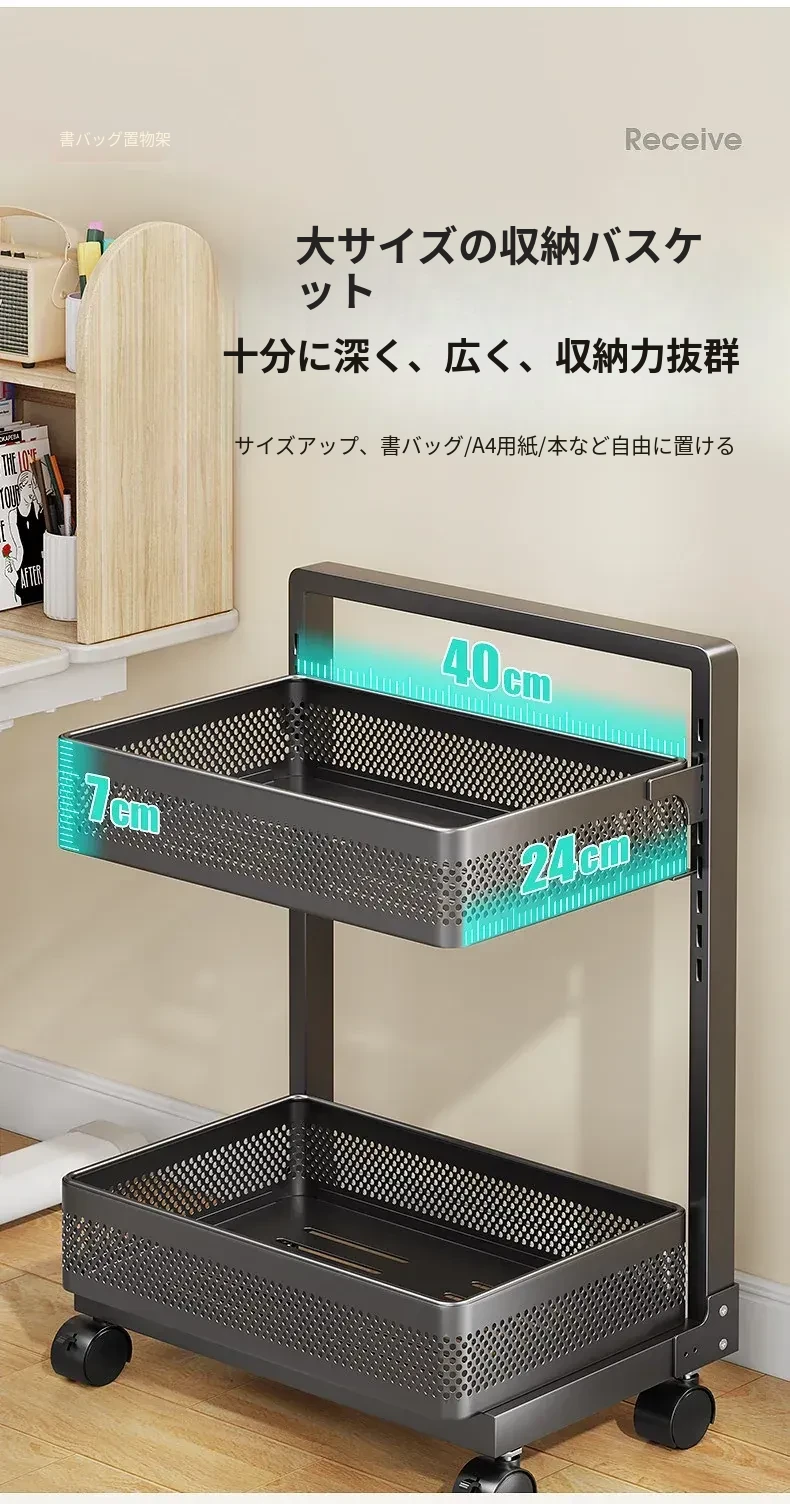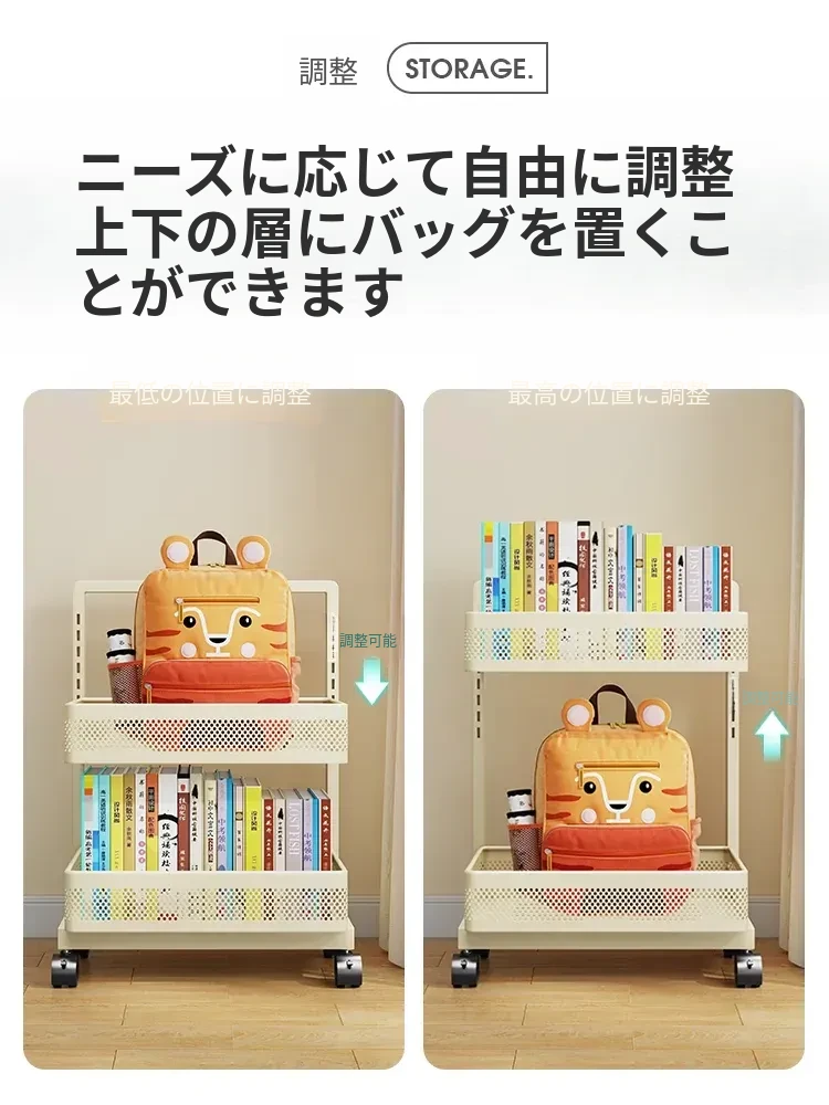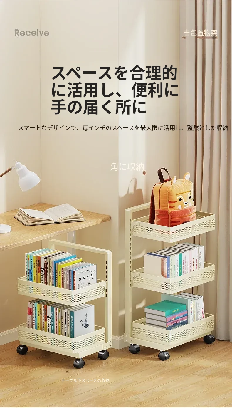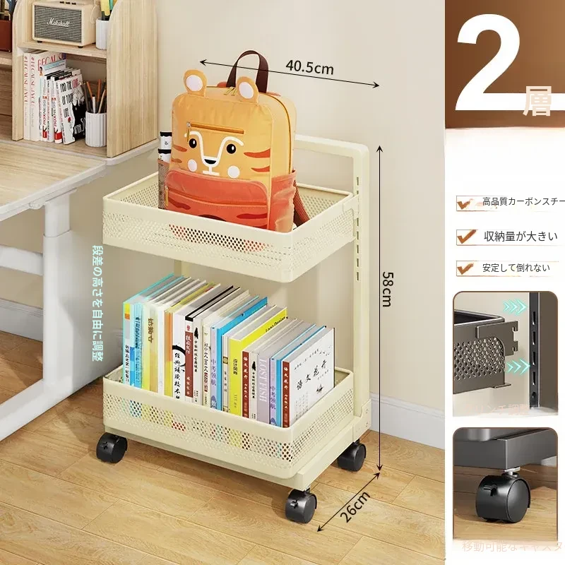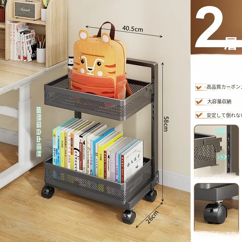 移動式ブックシェルフカート - 家庭用デスク下収納、キャスター付きの本収納ラック、卓上に最適な書籍整理の必需品!