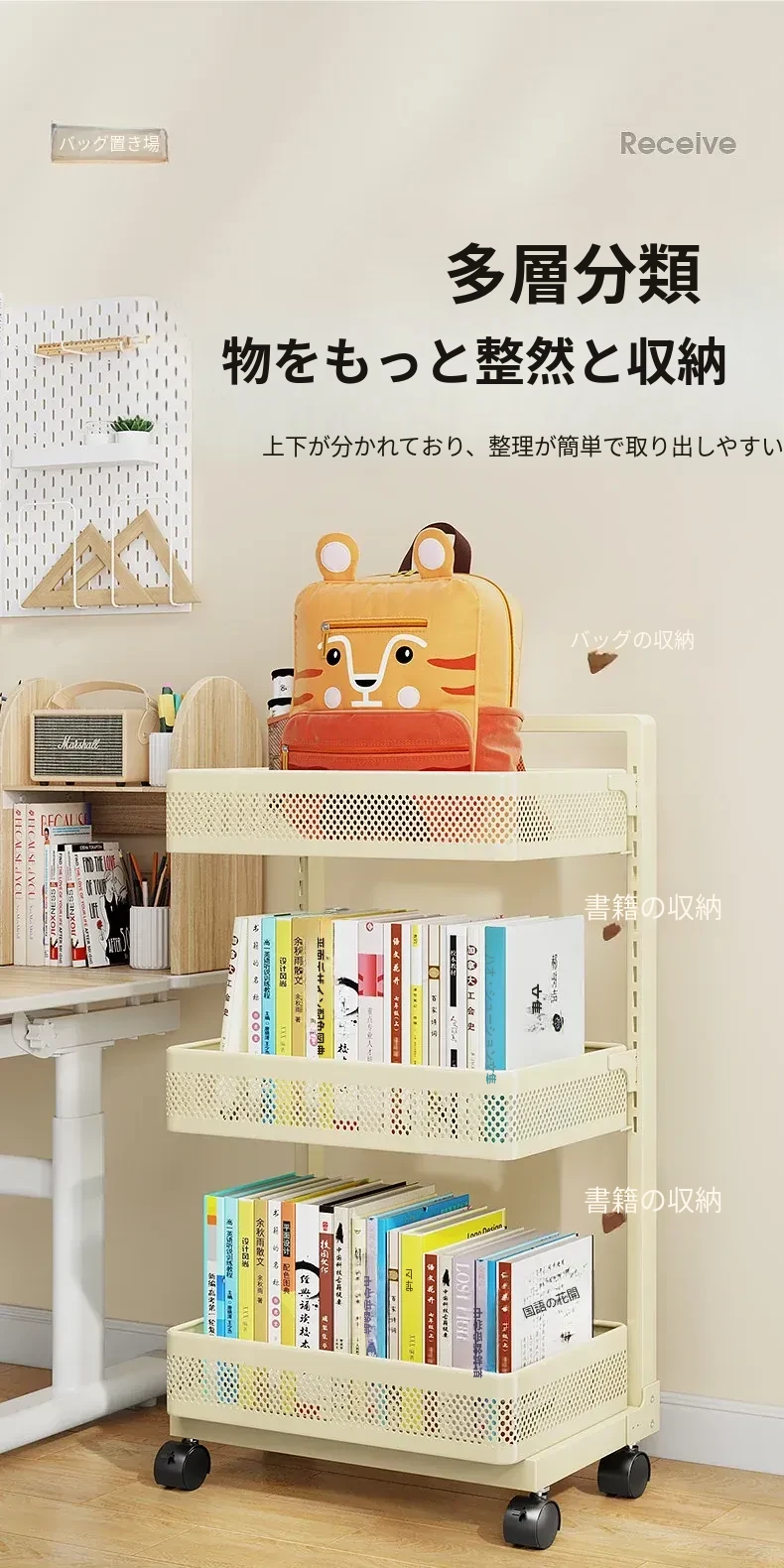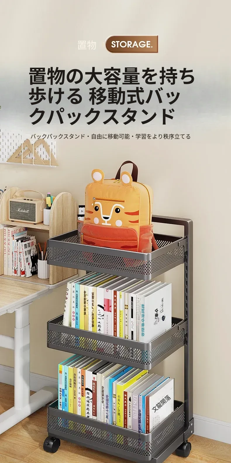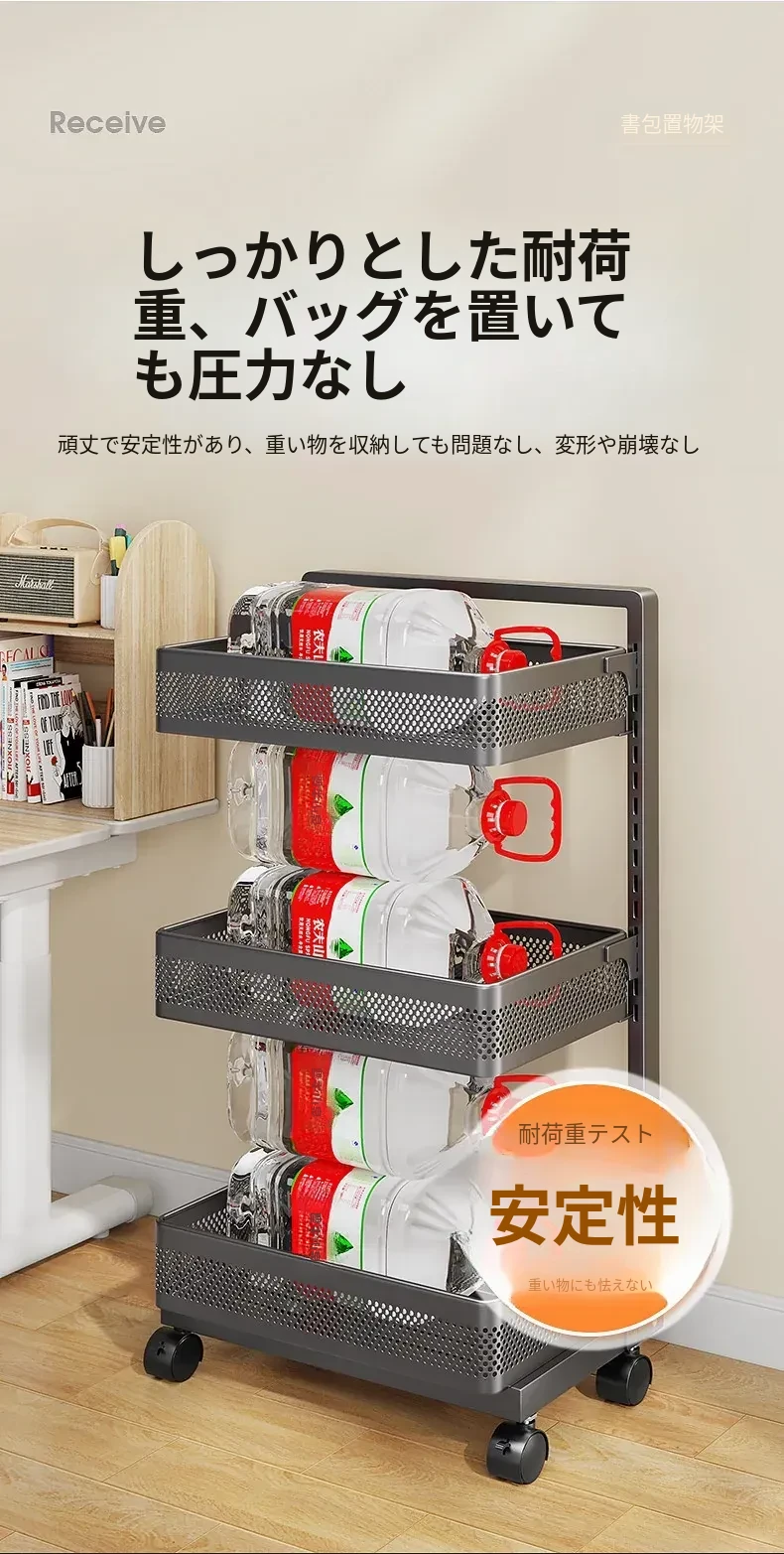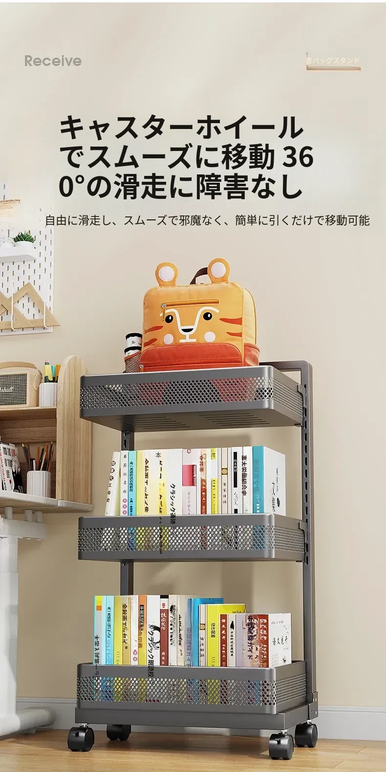 移動式ブックシェルフカート - 家庭用デスク下収納、キャスター付きの本収納ラック、卓上に最適な書籍整理の必需品!