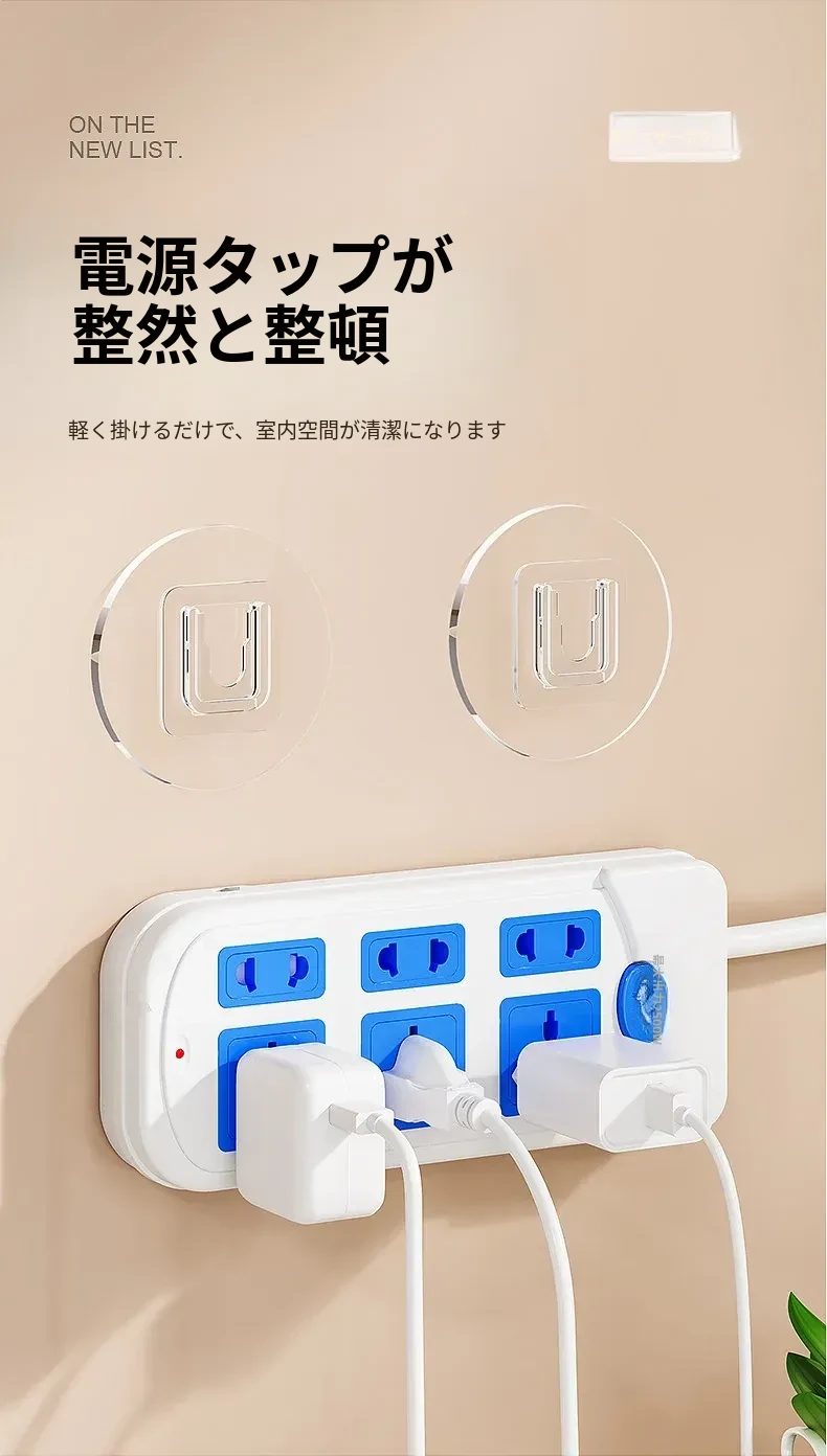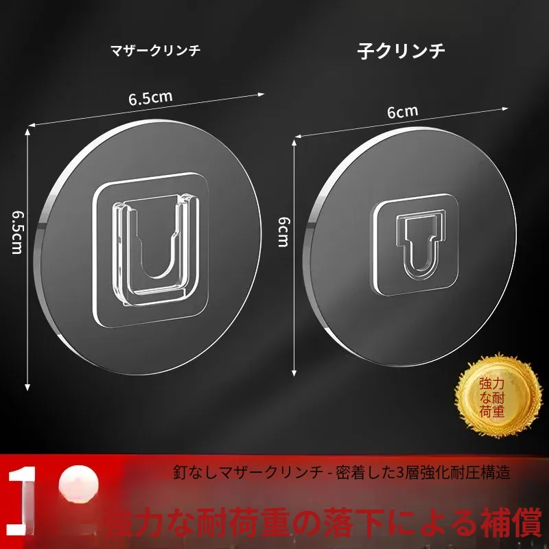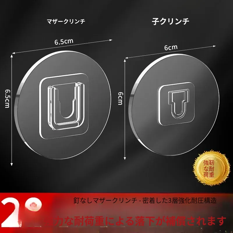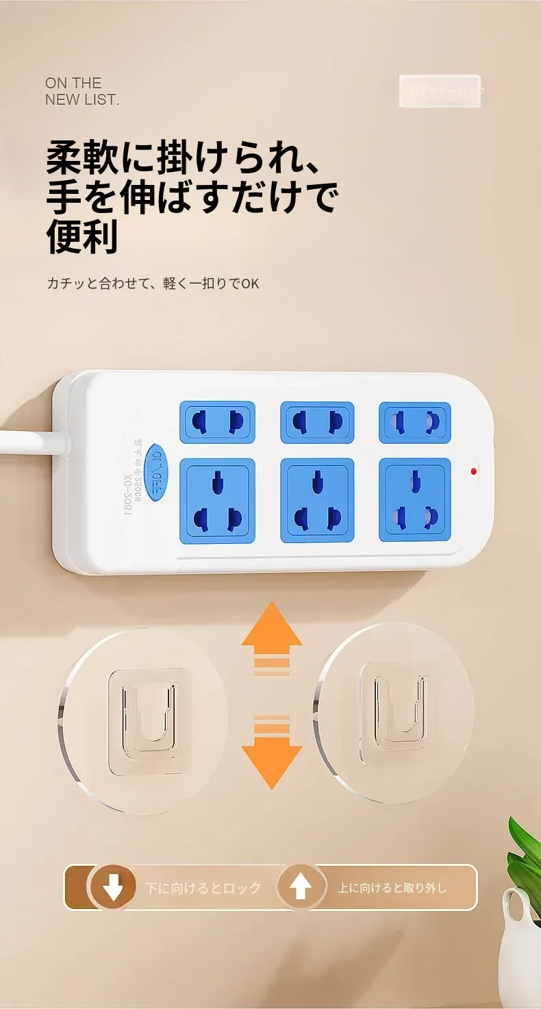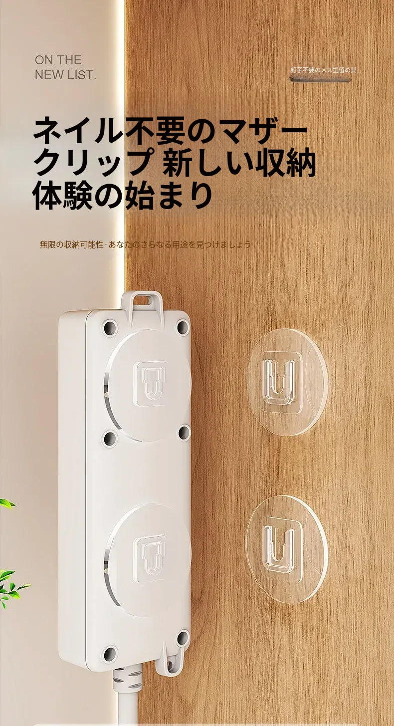 強力マザークリンチ粘着フック穴あけ不要!壁掛けカード式フック、貼り付け簡単で跡が残らない!コンセント座固定器、整理整頓に最適!