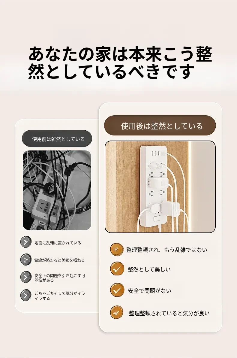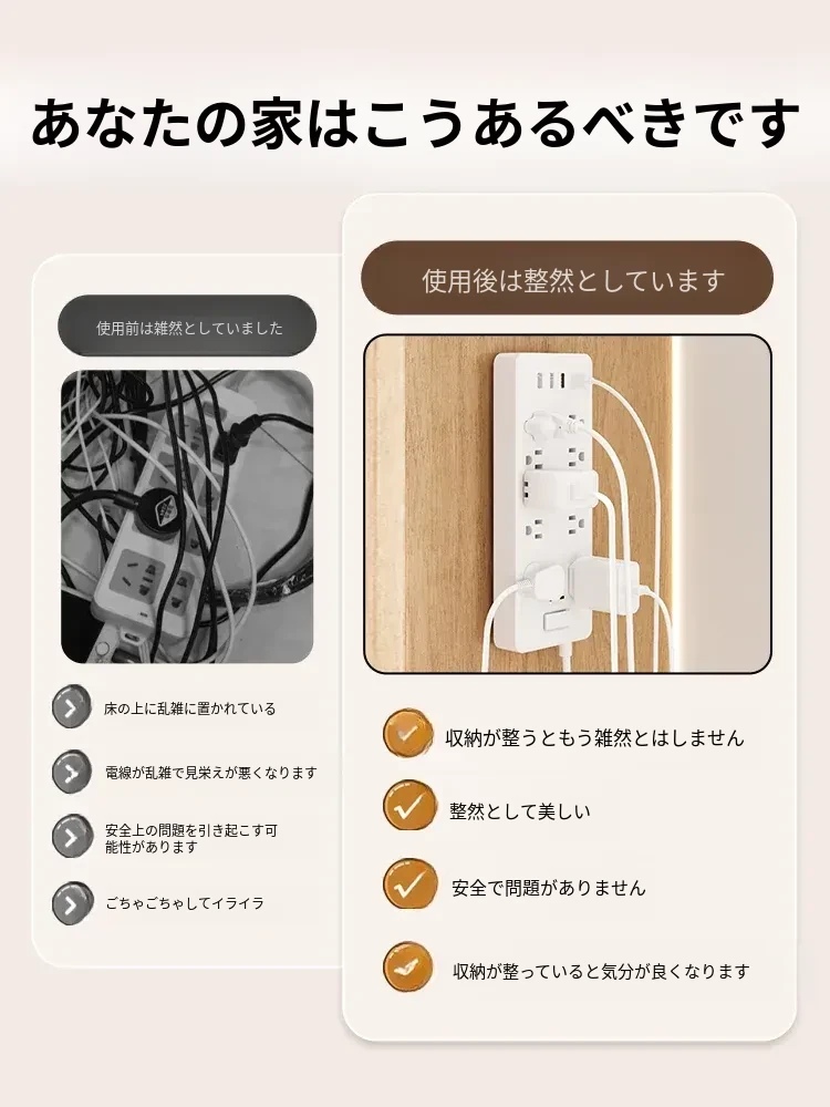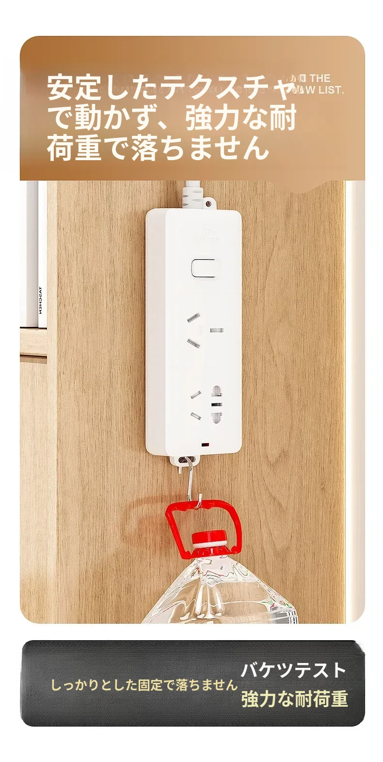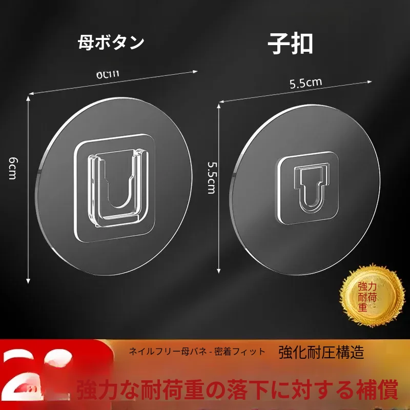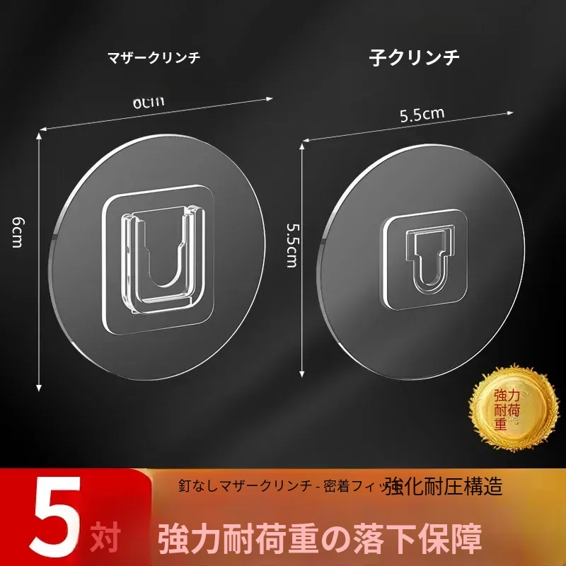 強力マザークリンチ粘着フック穴あけ不要!壁掛けカード式フック、貼り付け簡単で跡が残らない!コンセント座固定器、整理整頓に最適!