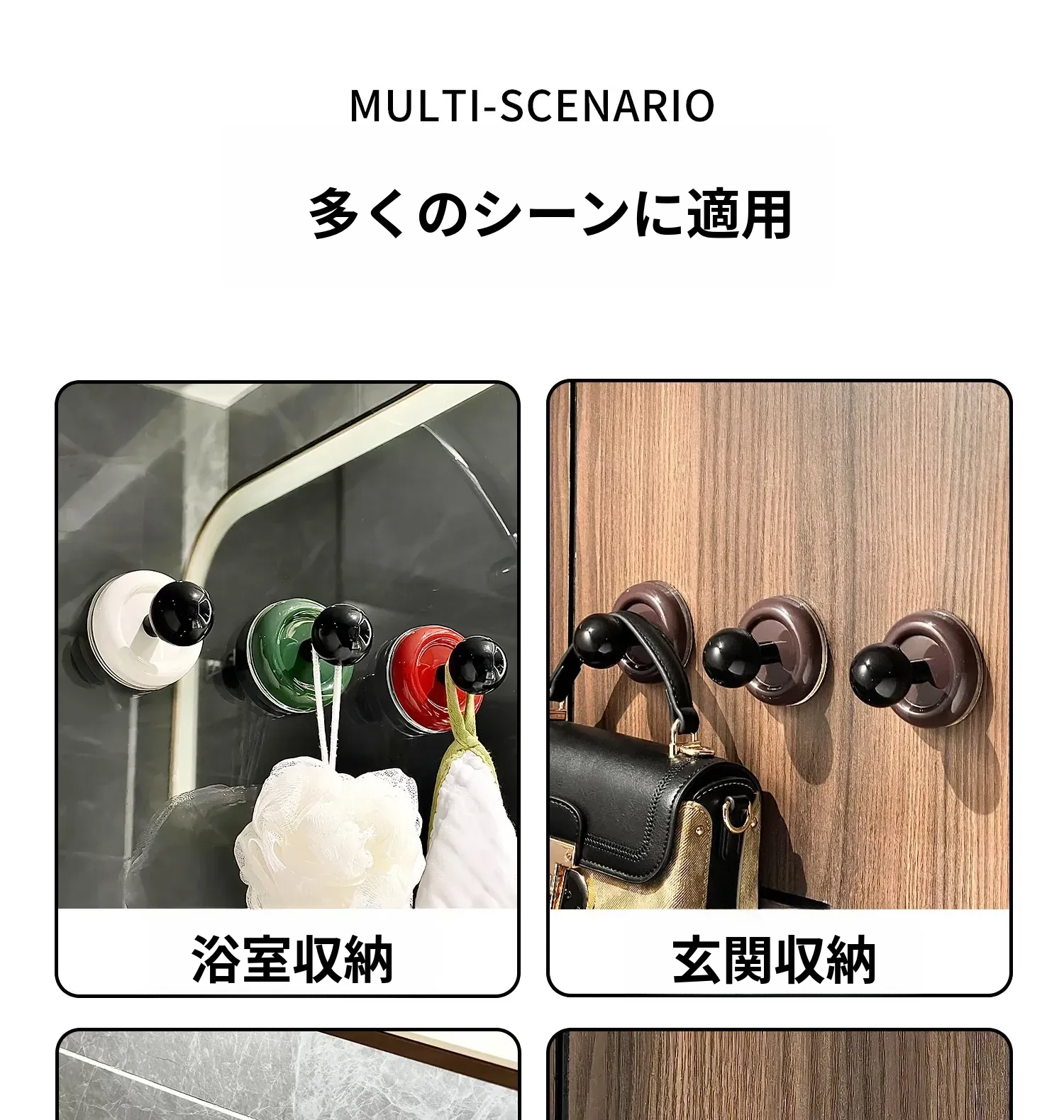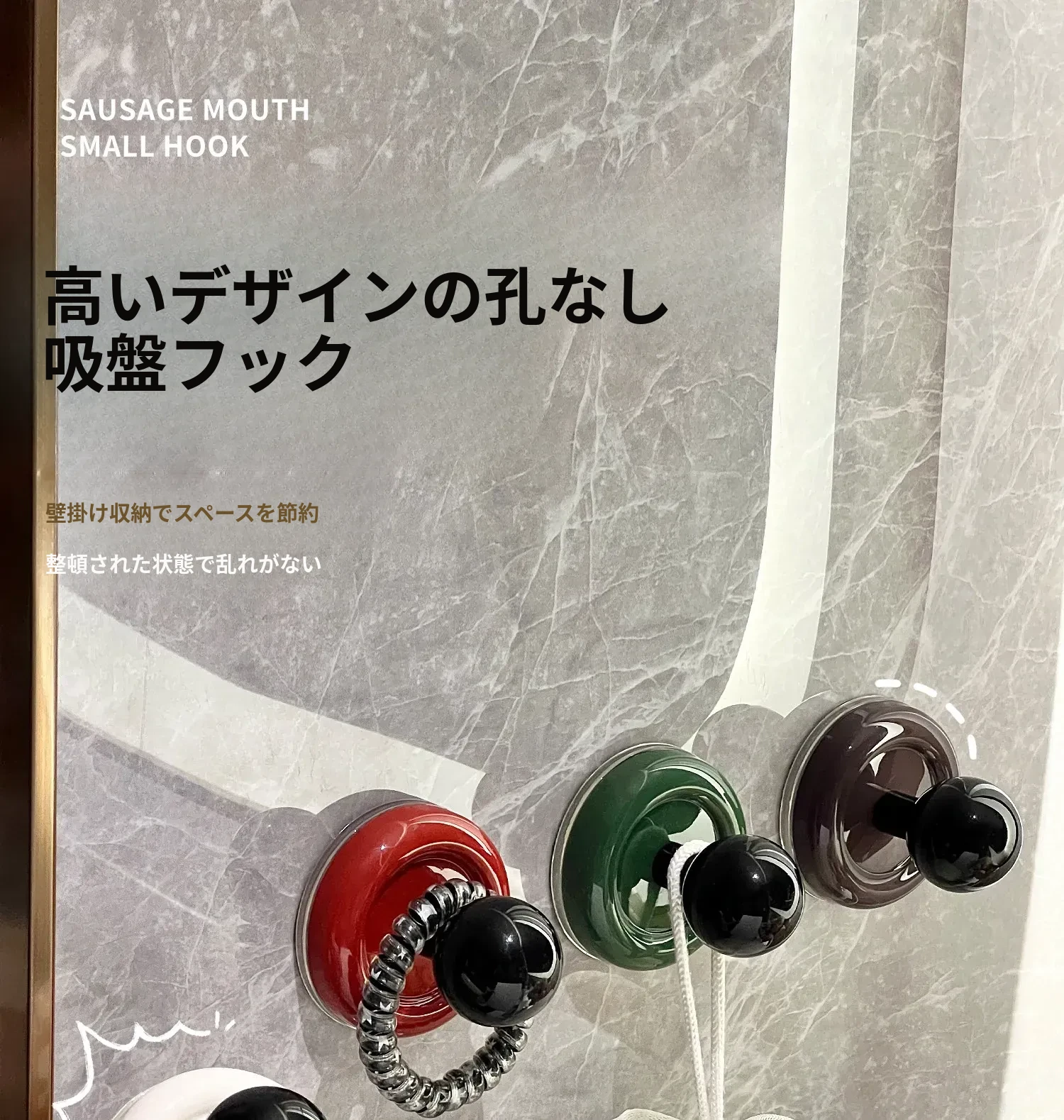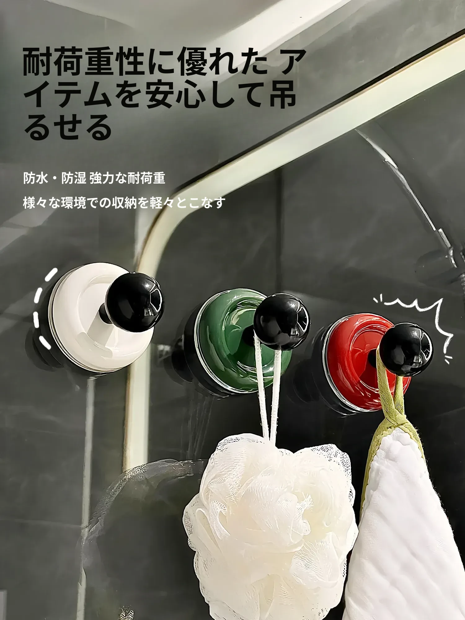 吸盤フック 穴あけ不要!強力耐荷重の真空式フック キッチンやバスルーム、トイレの壁に最適!ドアの裏にも使える、跡が残らない粘着フックでお部屋をスッキリ整理!