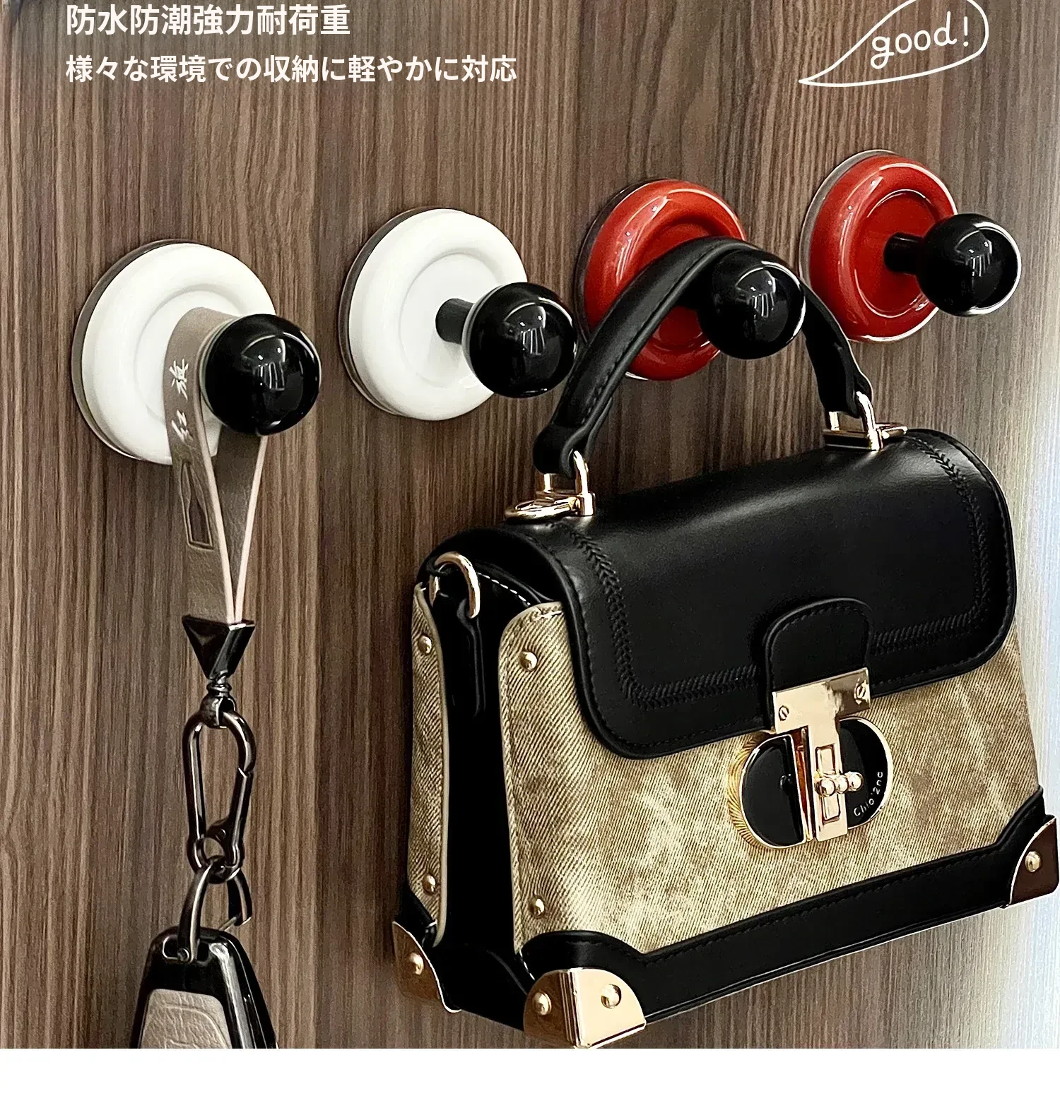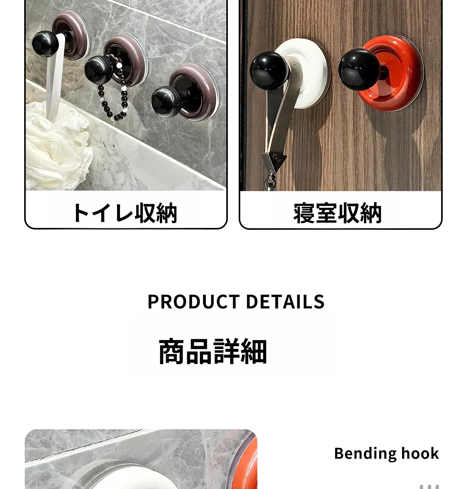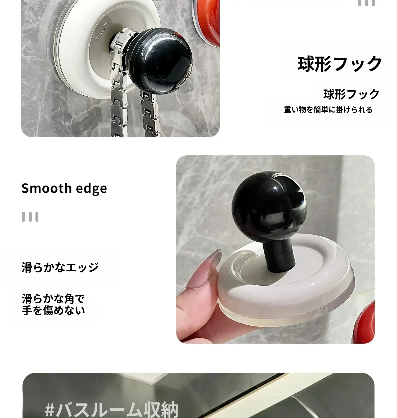 吸盤フック 穴あけ不要!強力耐荷重の真空式フック キッチンやバスルーム、トイレの壁に最適!ドアの裏にも使える、跡が残らない粘着フックでお部屋をスッキリ整理!