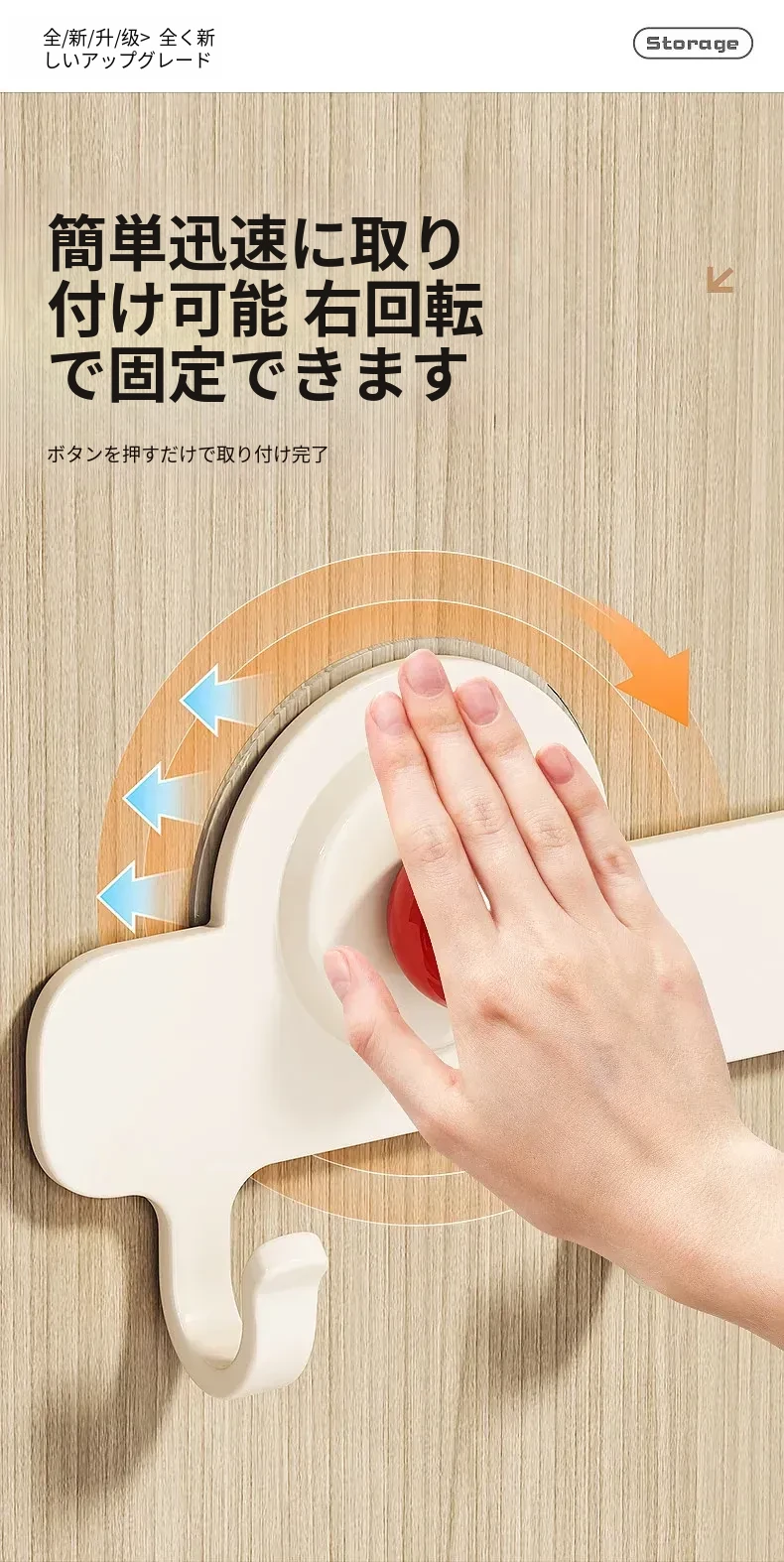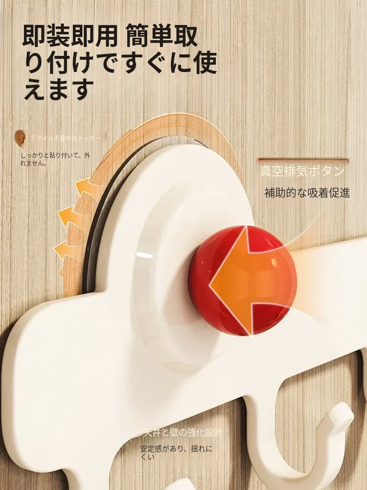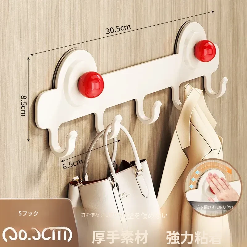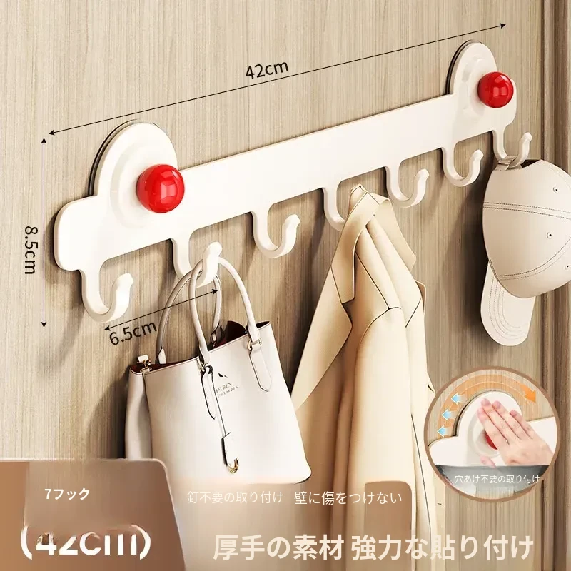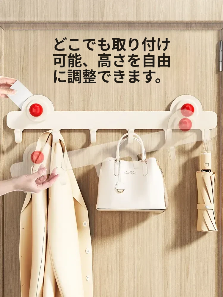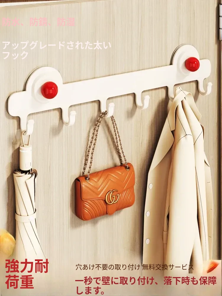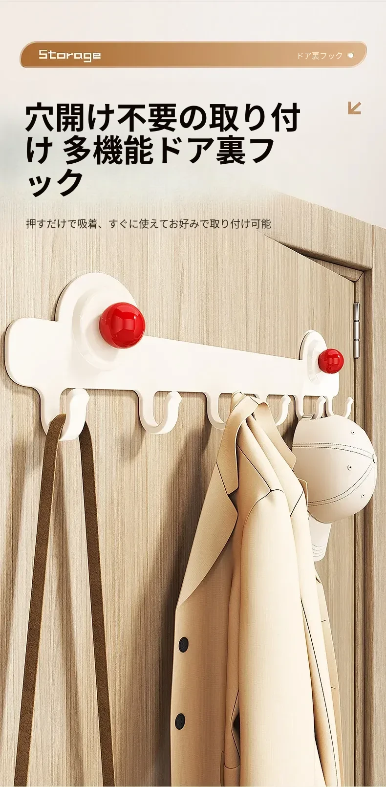 強力吸盤ドアフック - 穴あけ不要で簡単取り付け!高耐荷重の収納ラック、玄関に最適なコートハンガー&粘着フック。おしゃれで便利な収納アイテム!