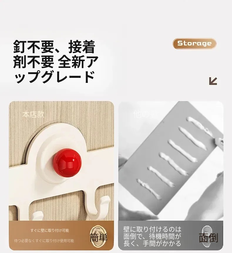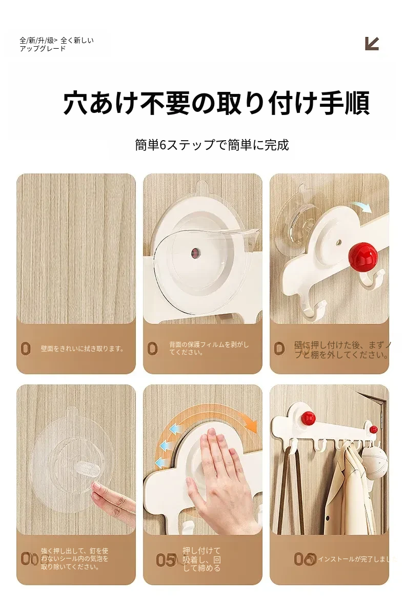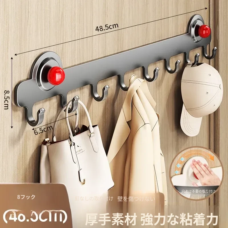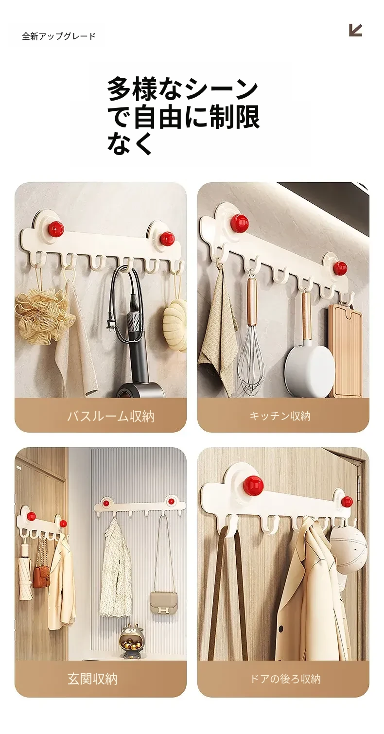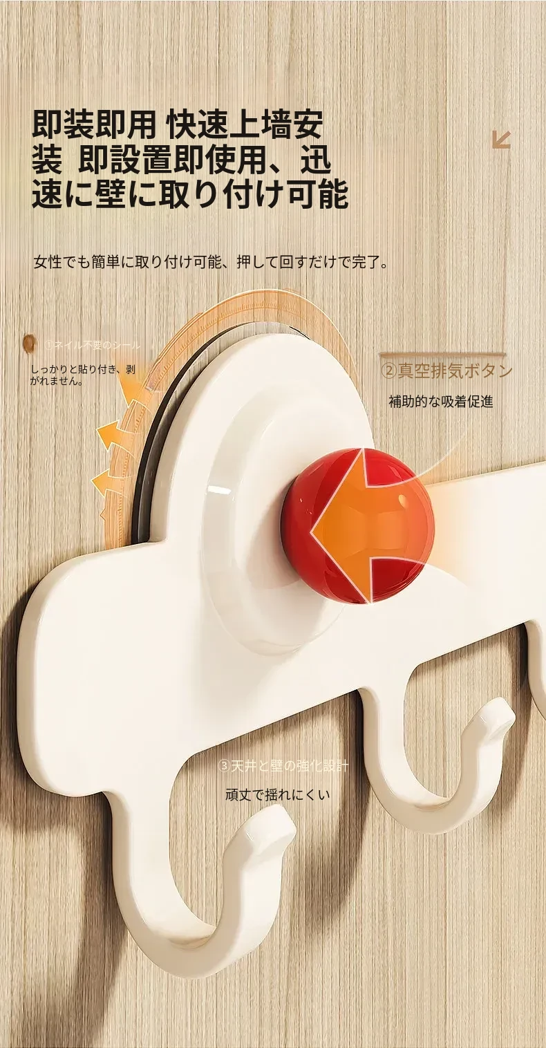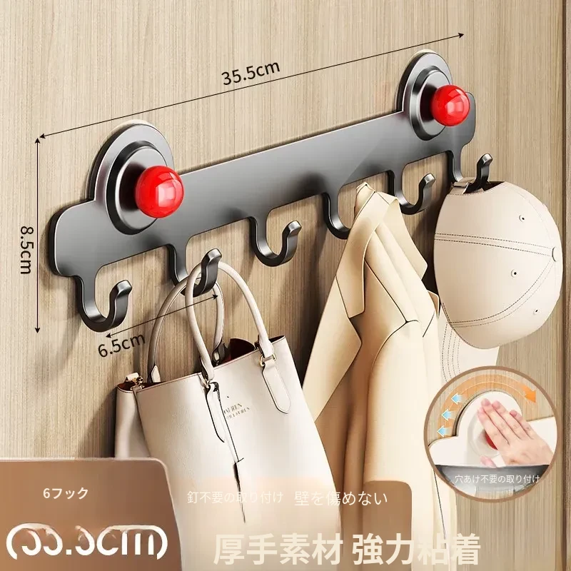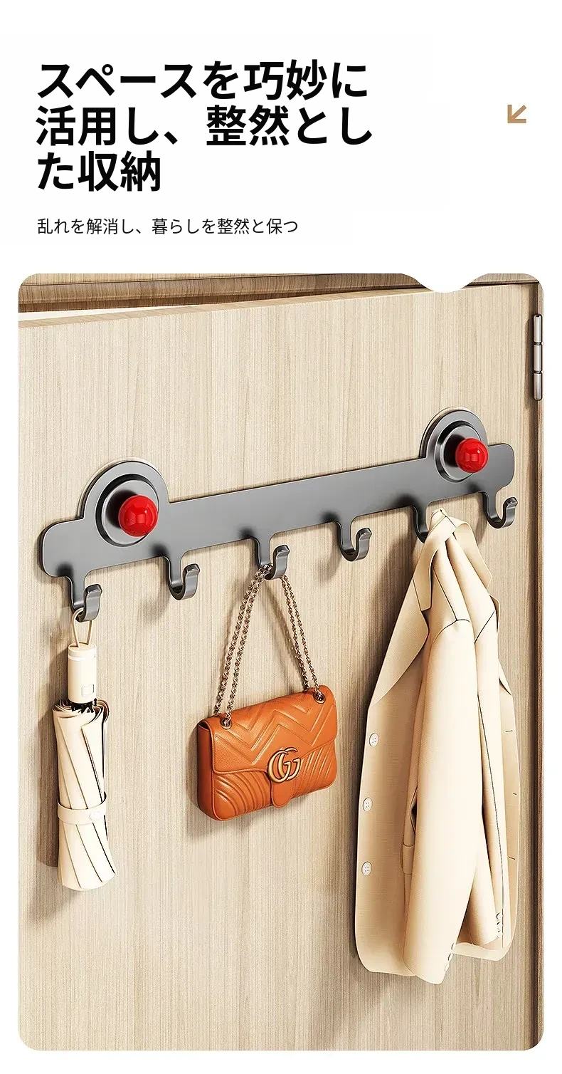 強力吸盤ドアフック - 穴あけ不要で簡単取り付け!高耐荷重の収納ラック、玄関に最適なコートハンガー&粘着フック。おしゃれで便利な収納アイテム!