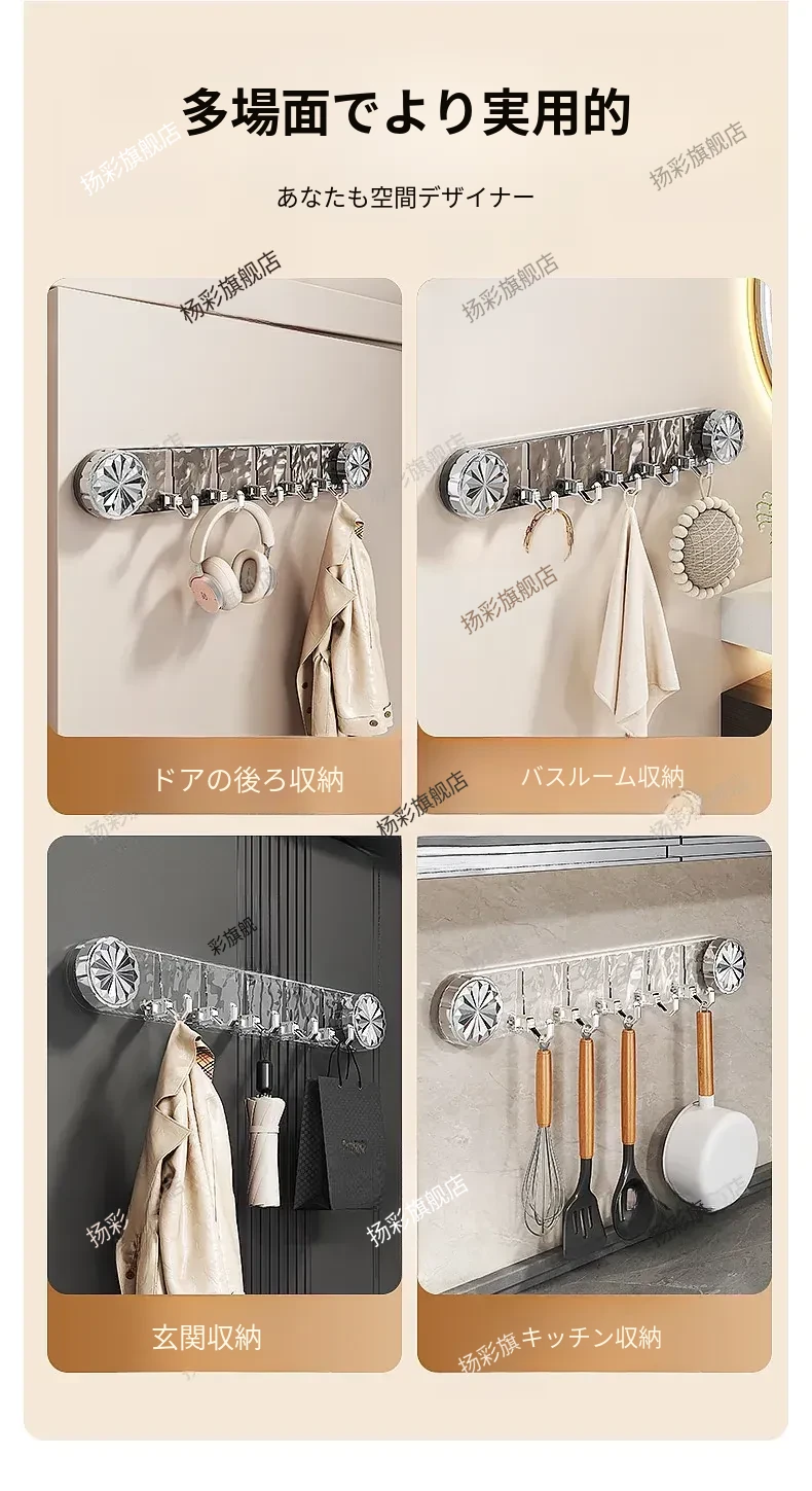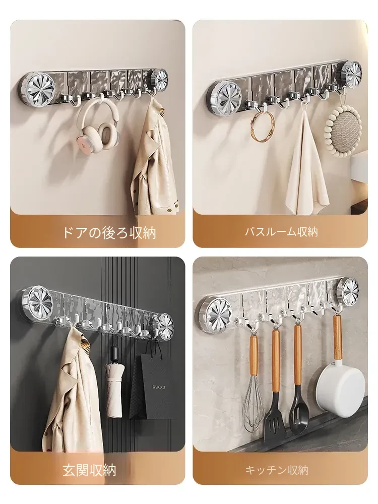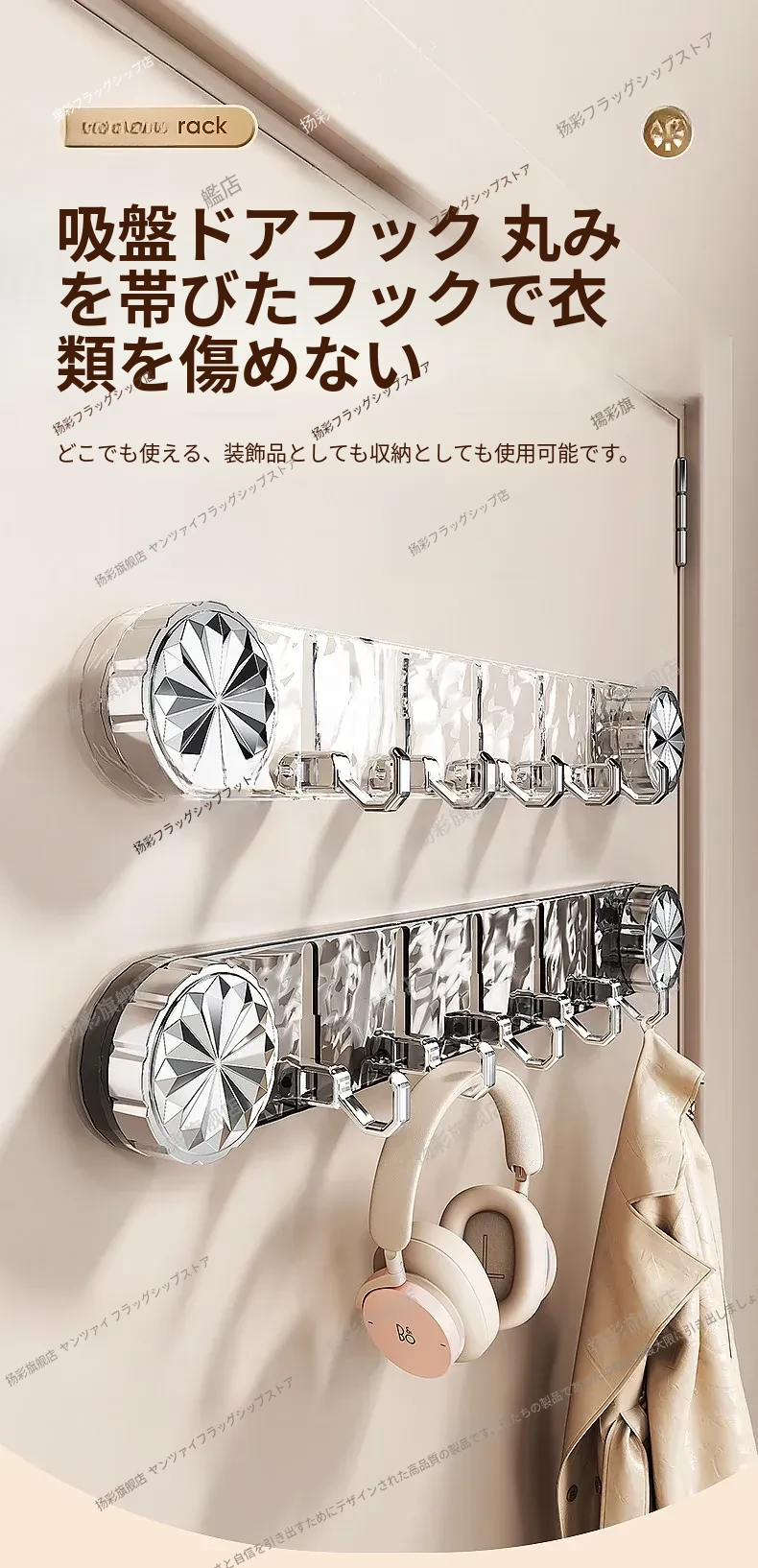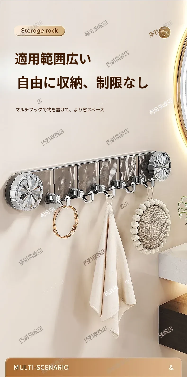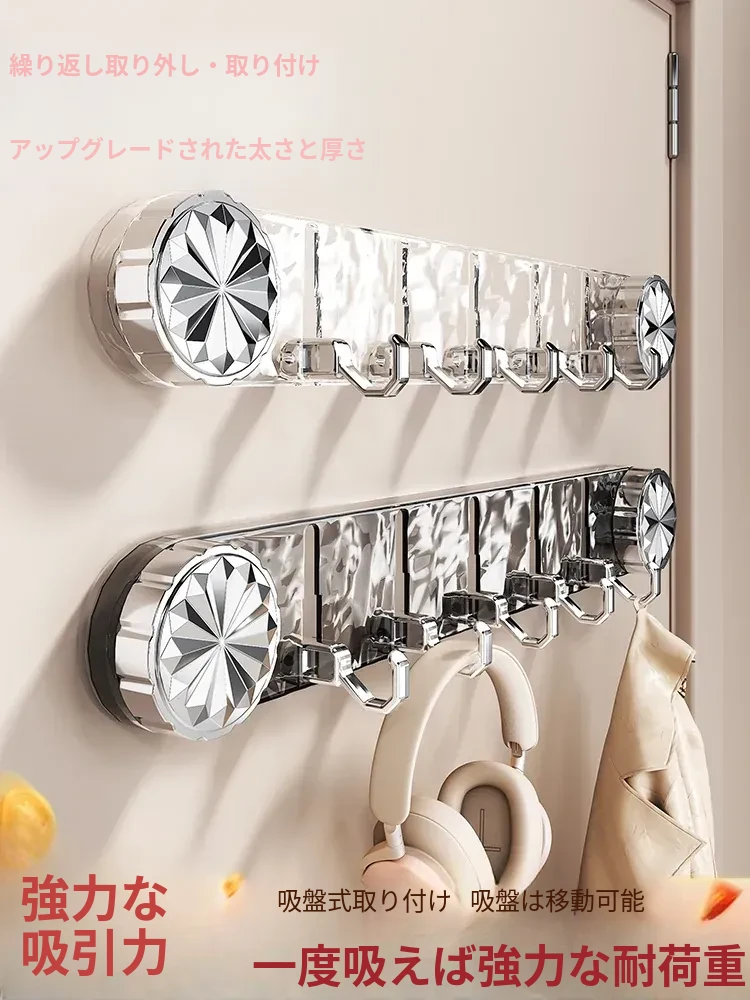 強力吸盤フック - 穴を開けずに取り付け可能なバスルーム用収納ラック!玄関ドアに最適な衣類掛けやタオル収納に最適です。シンプルでスタイリッシュなデザインで、あなたの生活空間をスマートに整理!