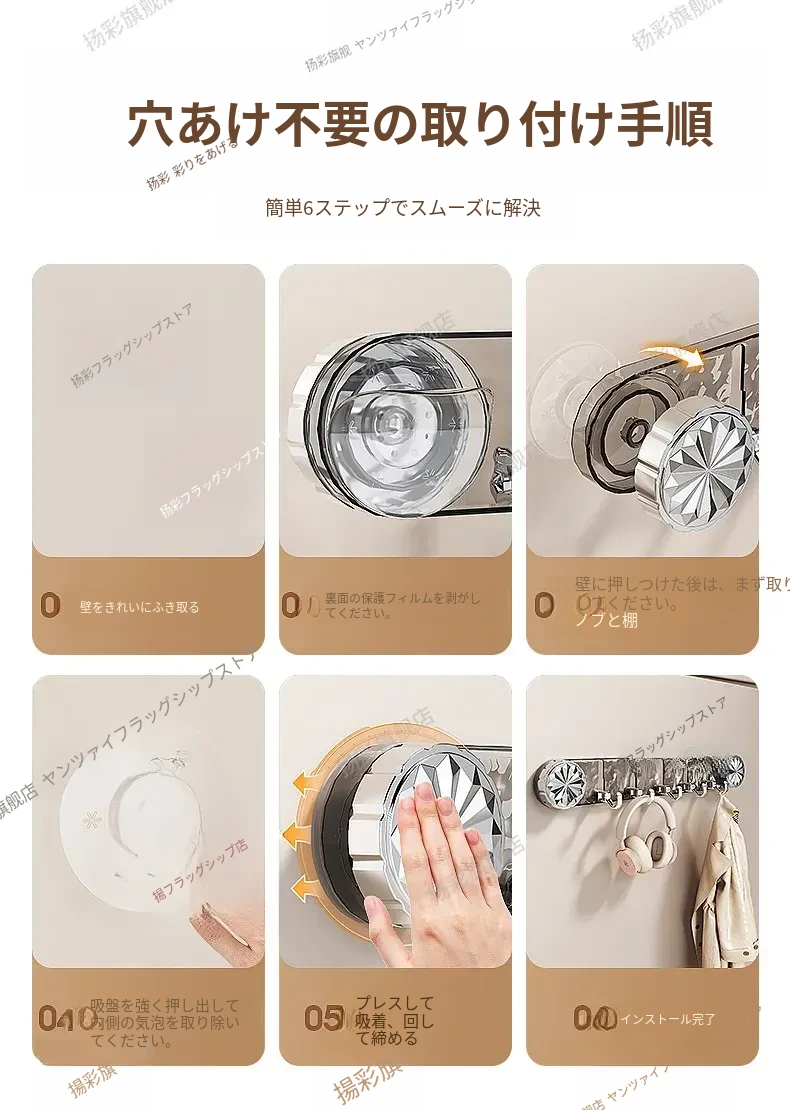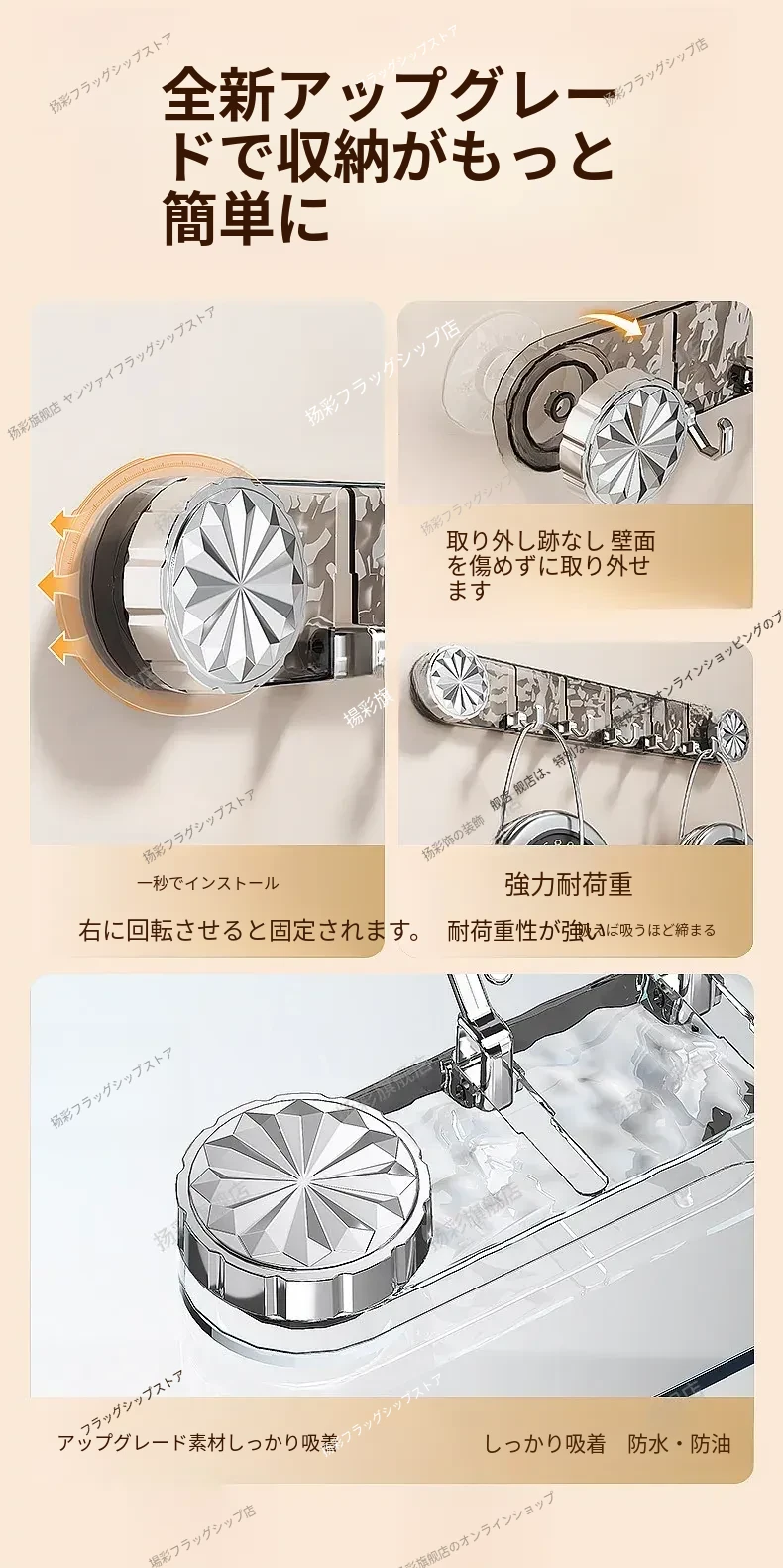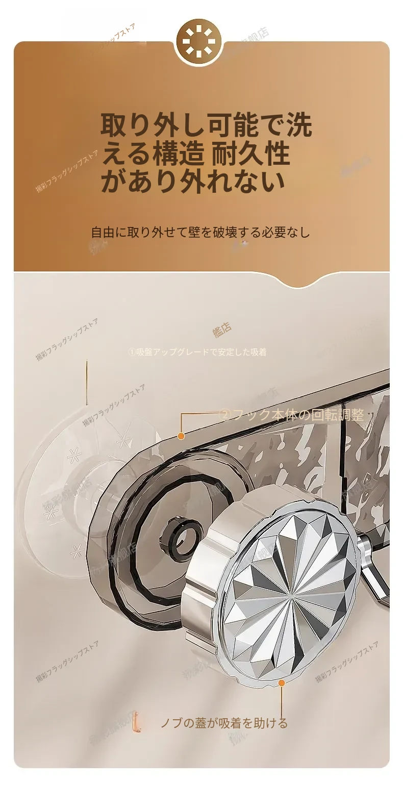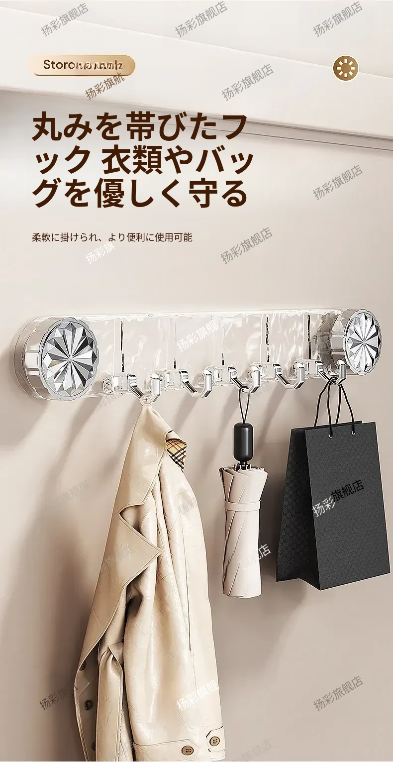 強力吸盤フック - 穴を開けずに取り付け可能なバスルーム用収納ラック!玄関ドアに最適な衣類掛けやタオル収納に最適です。シンプルでスタイリッシュなデザインで、あなたの生活空間をスマートに整理!