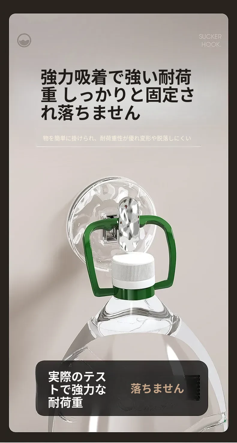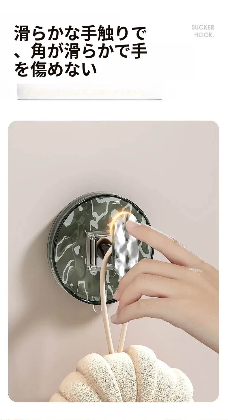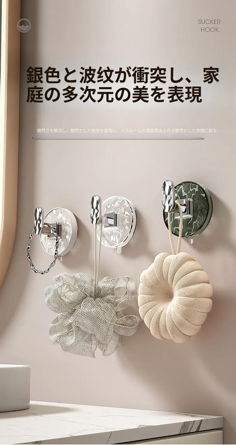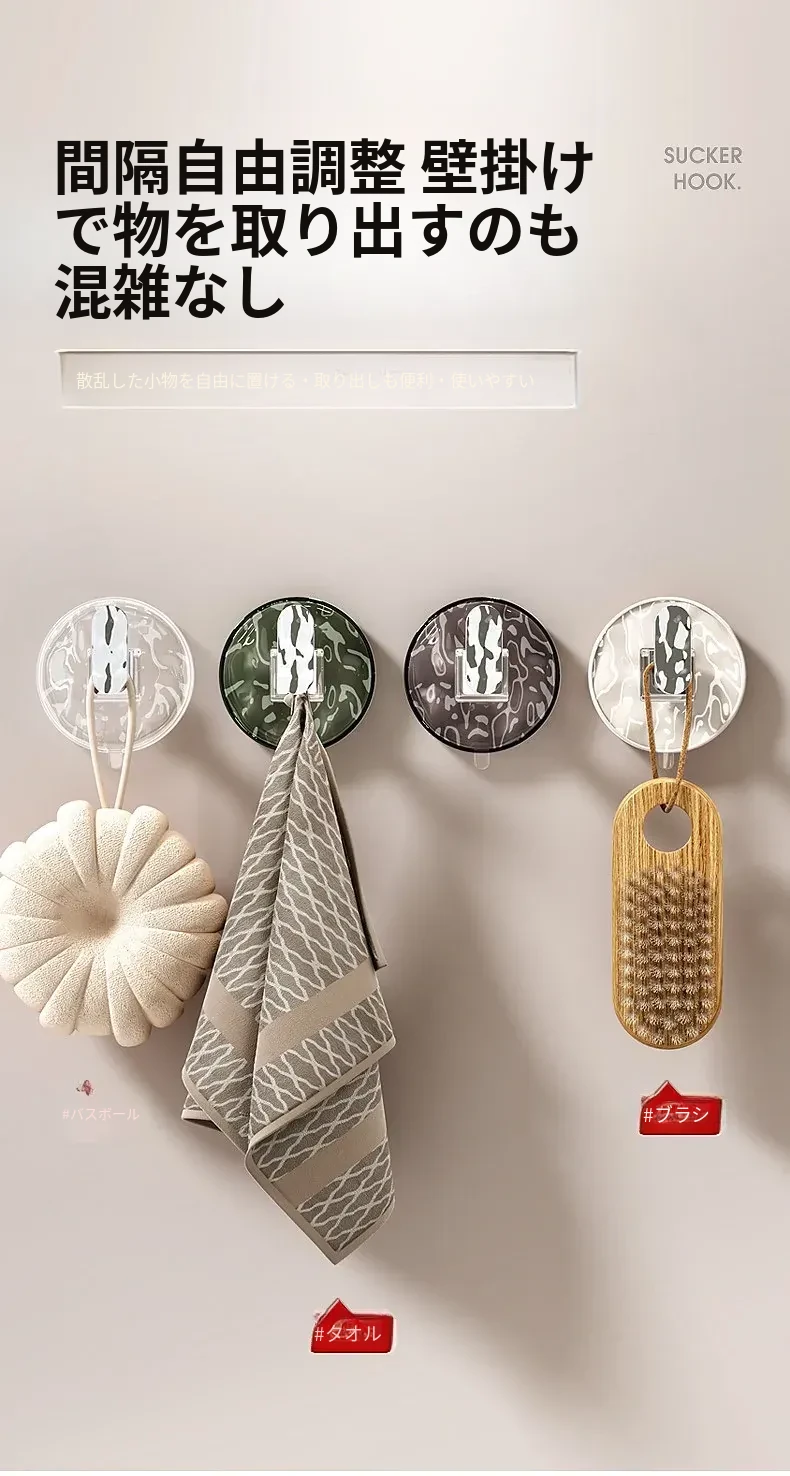 強力吸盤フック 穴あけ不要!浴室・トイレに最適な粘着式壁掛けフック 傷跡なしでタオルや小物をしっかりサポート!