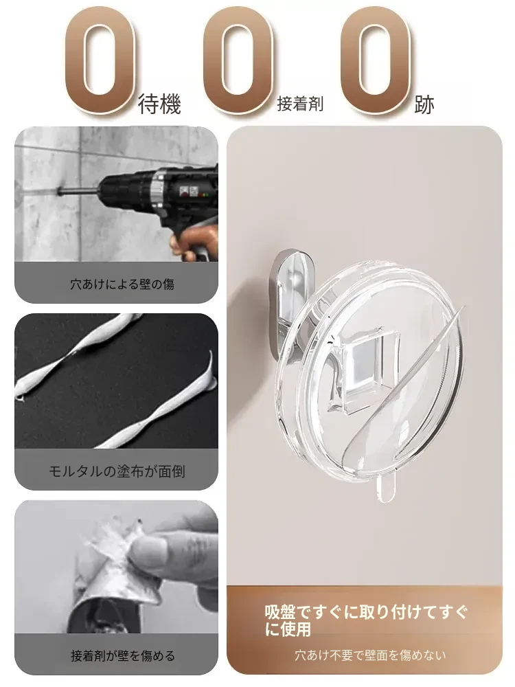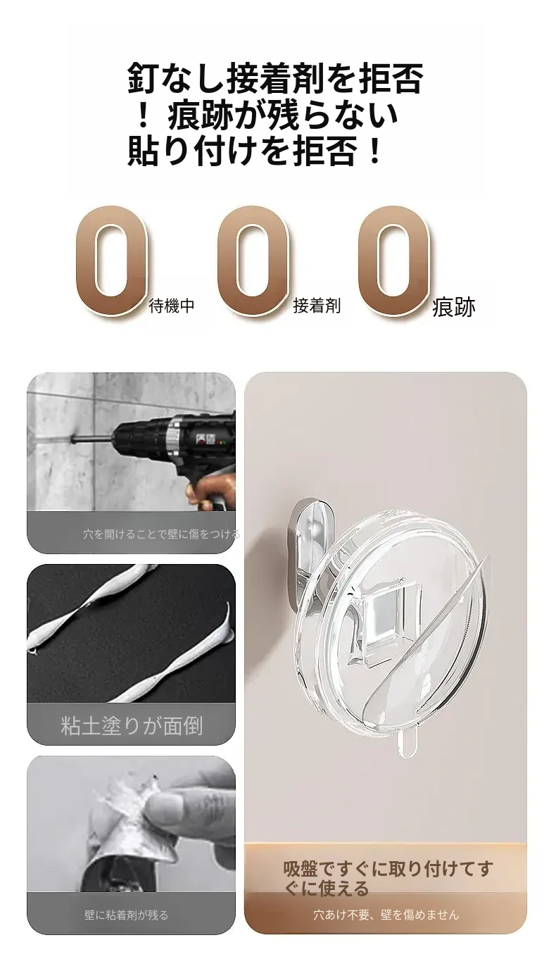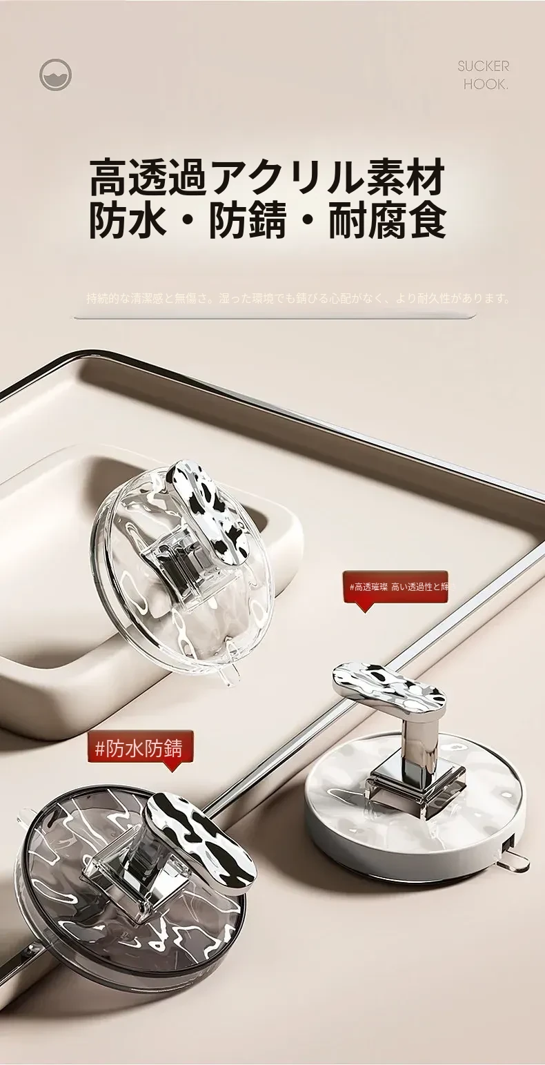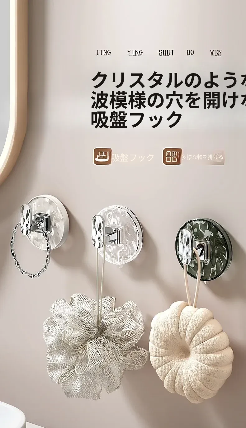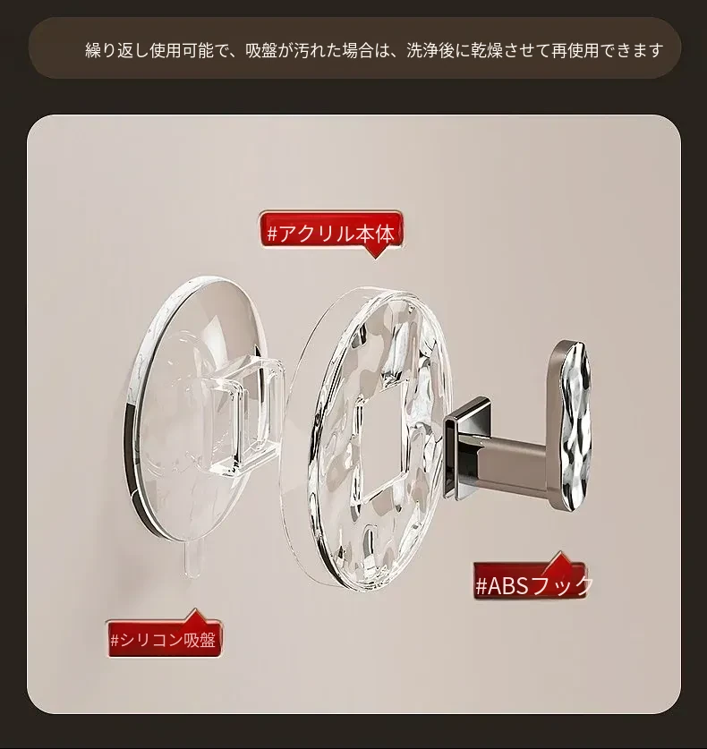 強力吸盤フック 穴あけ不要!浴室・トイレに最適な粘着式壁掛けフック 傷跡なしでタオルや小物をしっかりサポート!