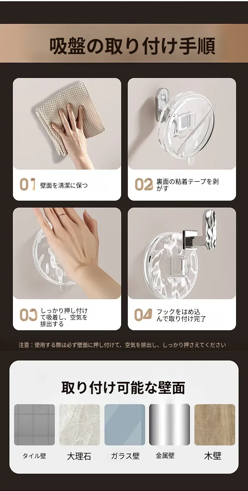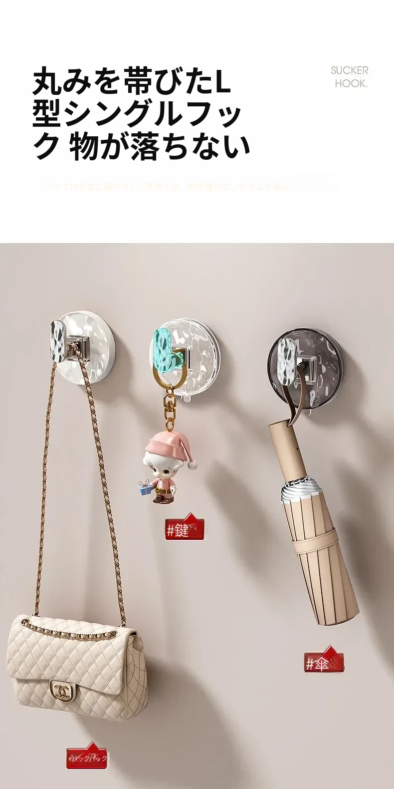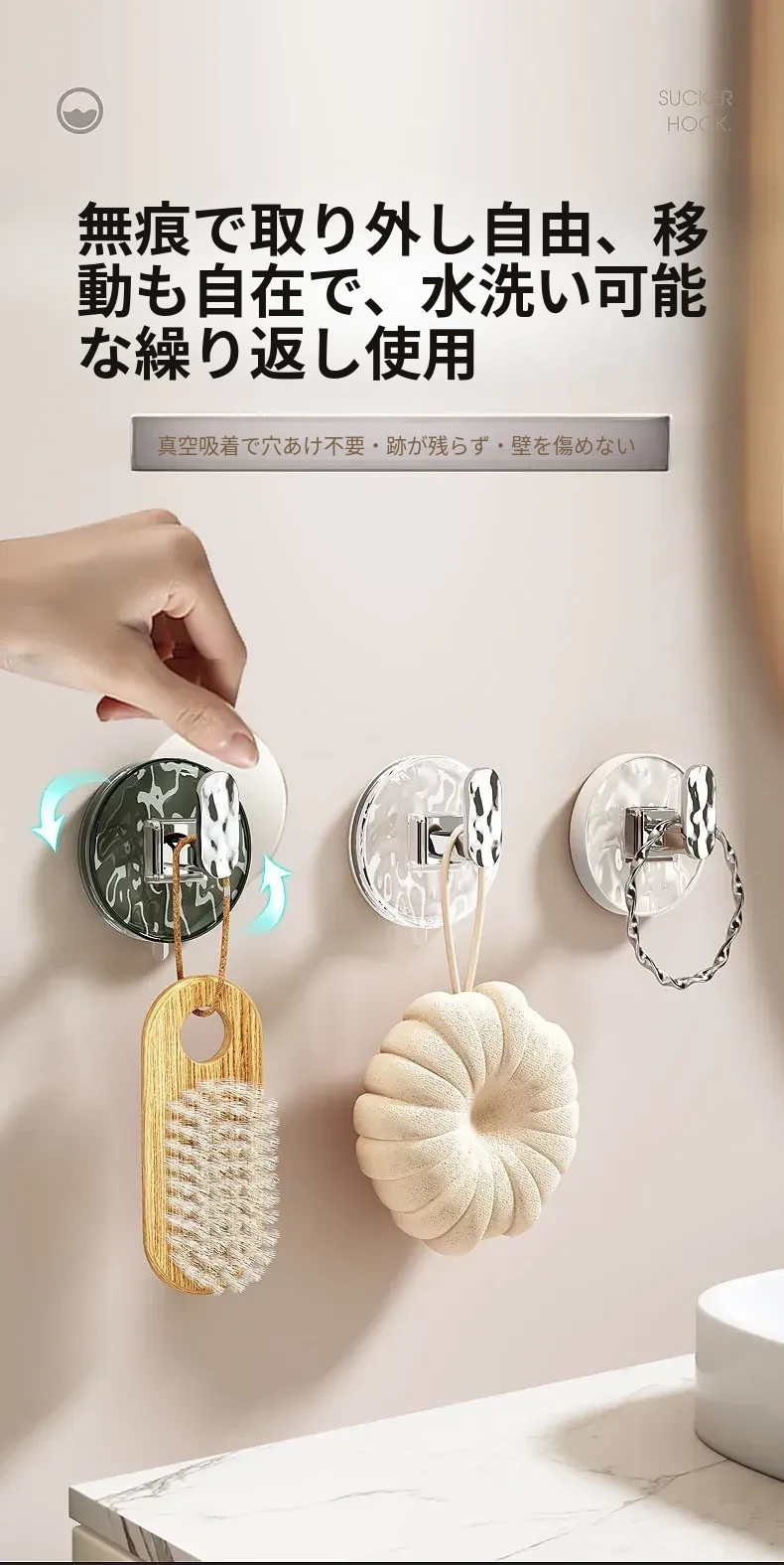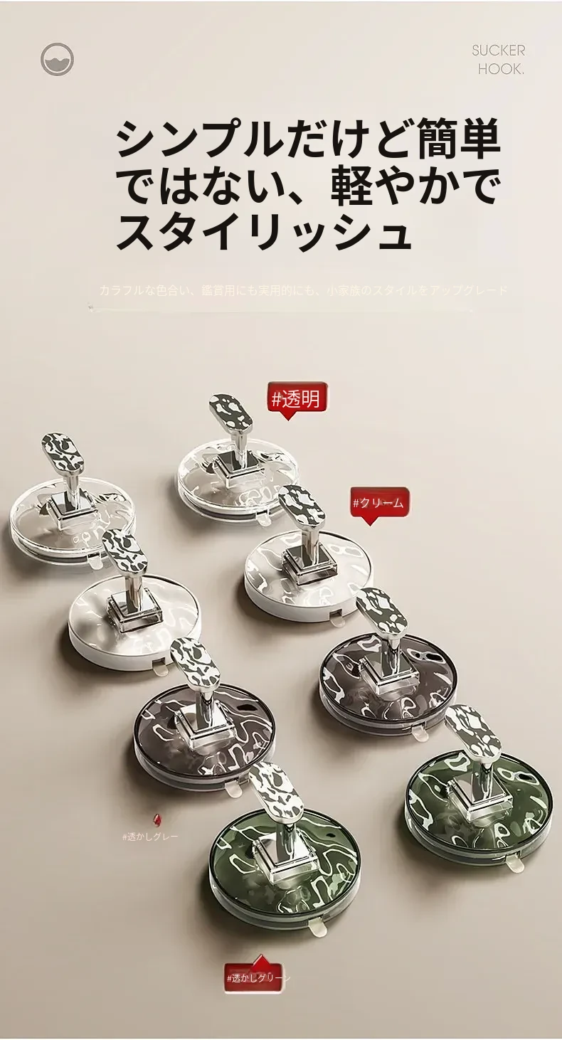 強力吸盤フック 穴あけ不要!浴室・トイレに最適な粘着式壁掛けフック 傷跡なしでタオルや小物をしっかりサポート!
