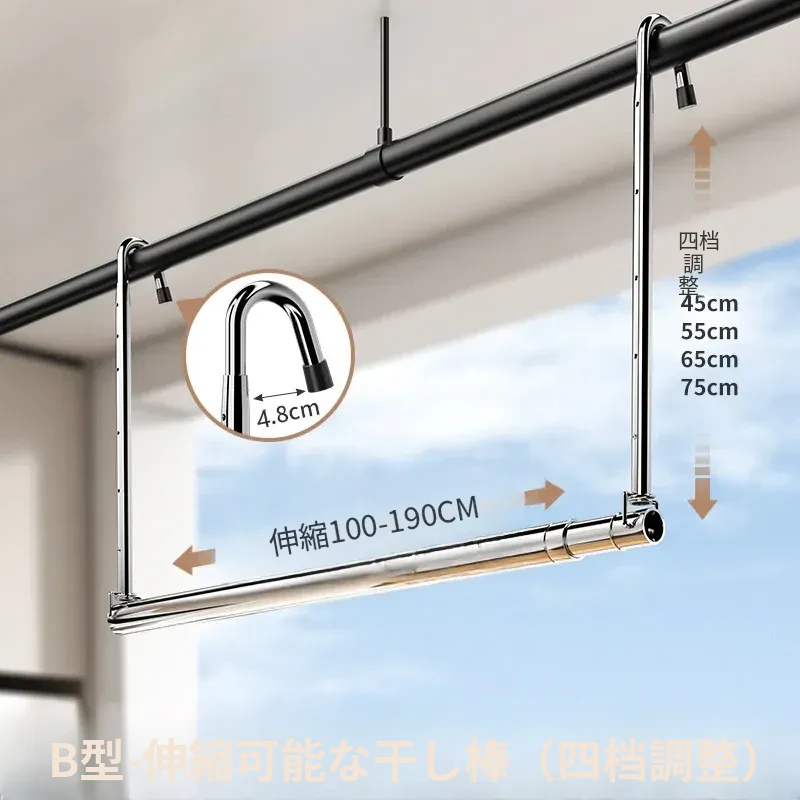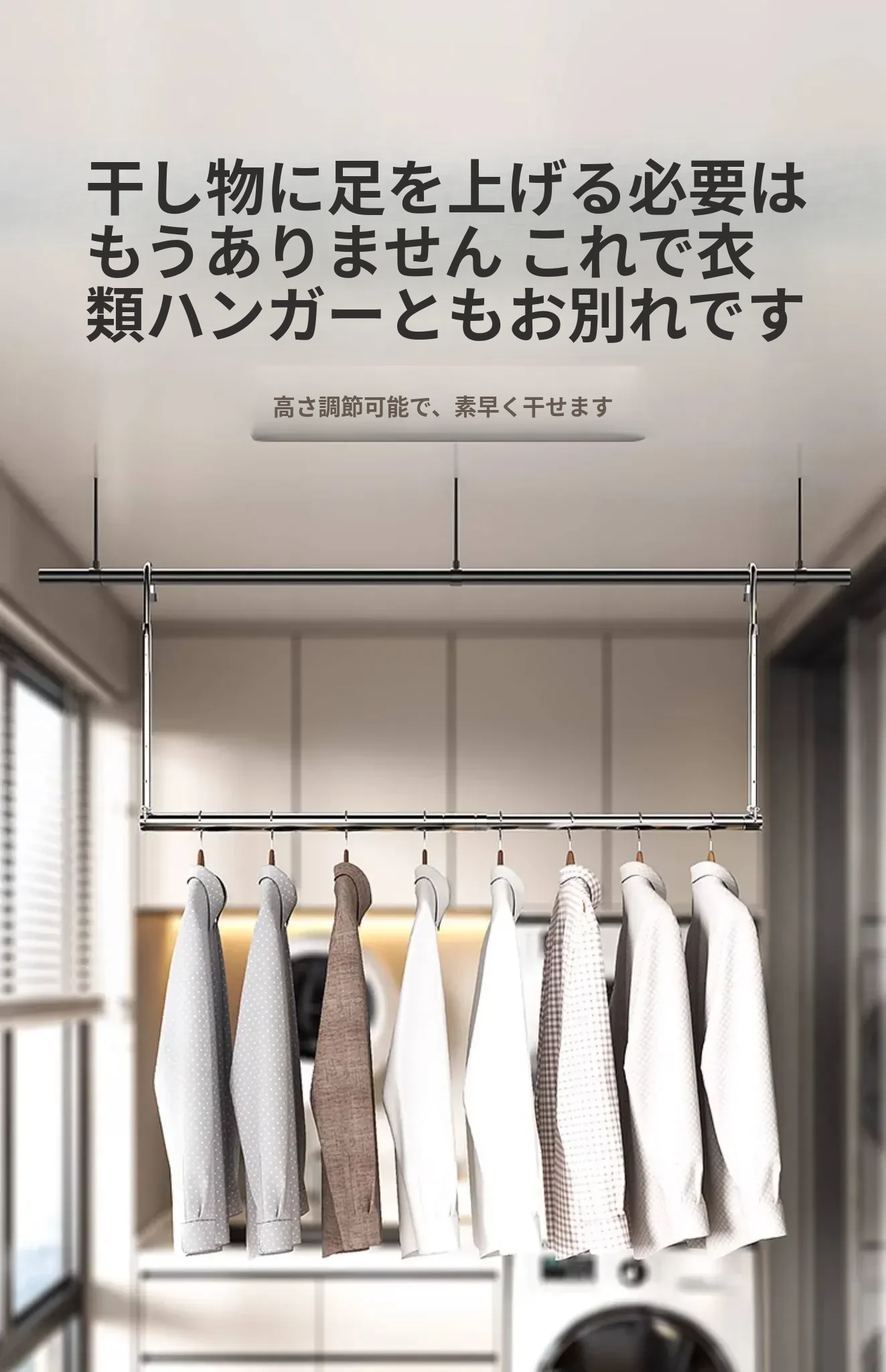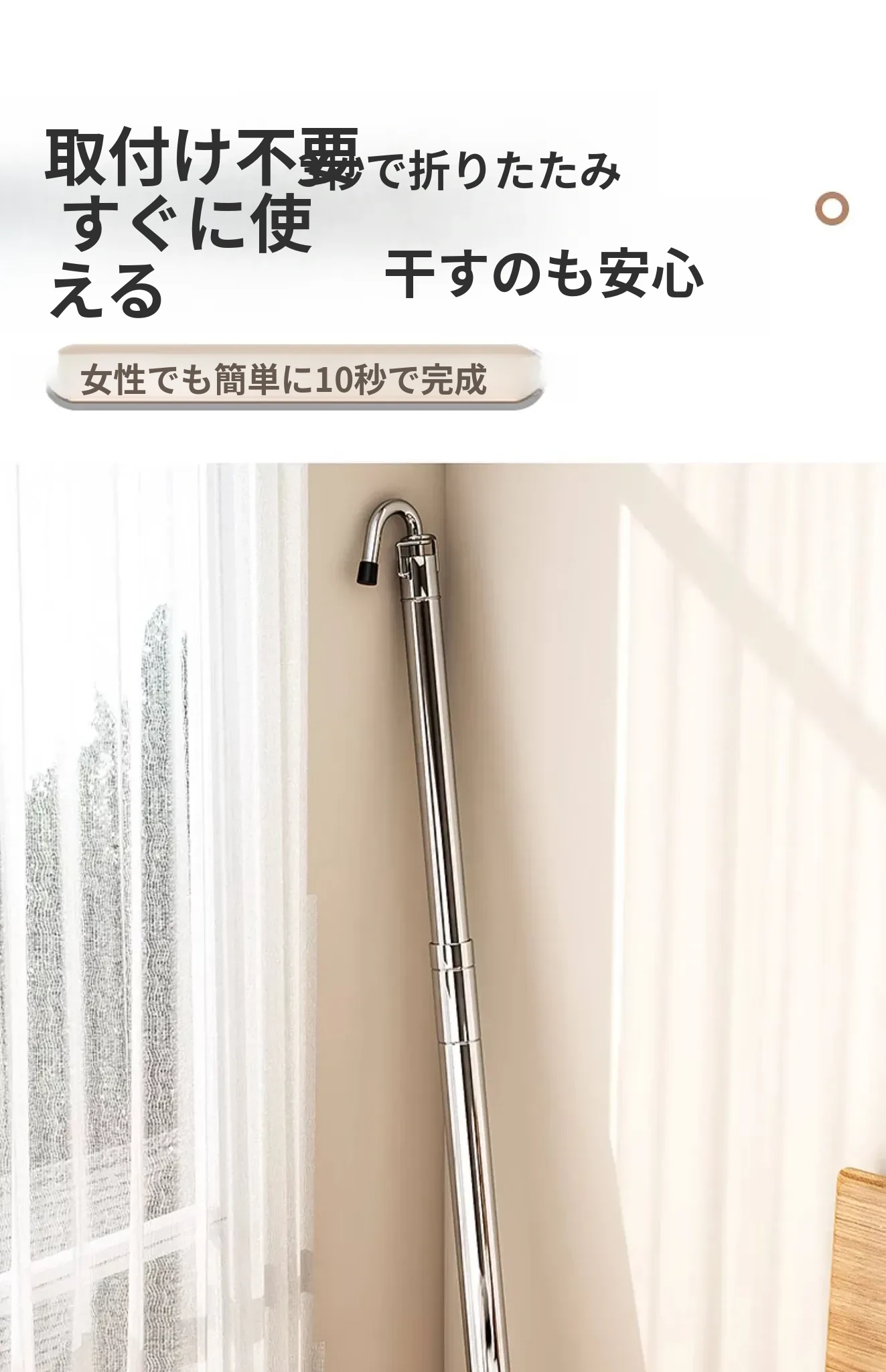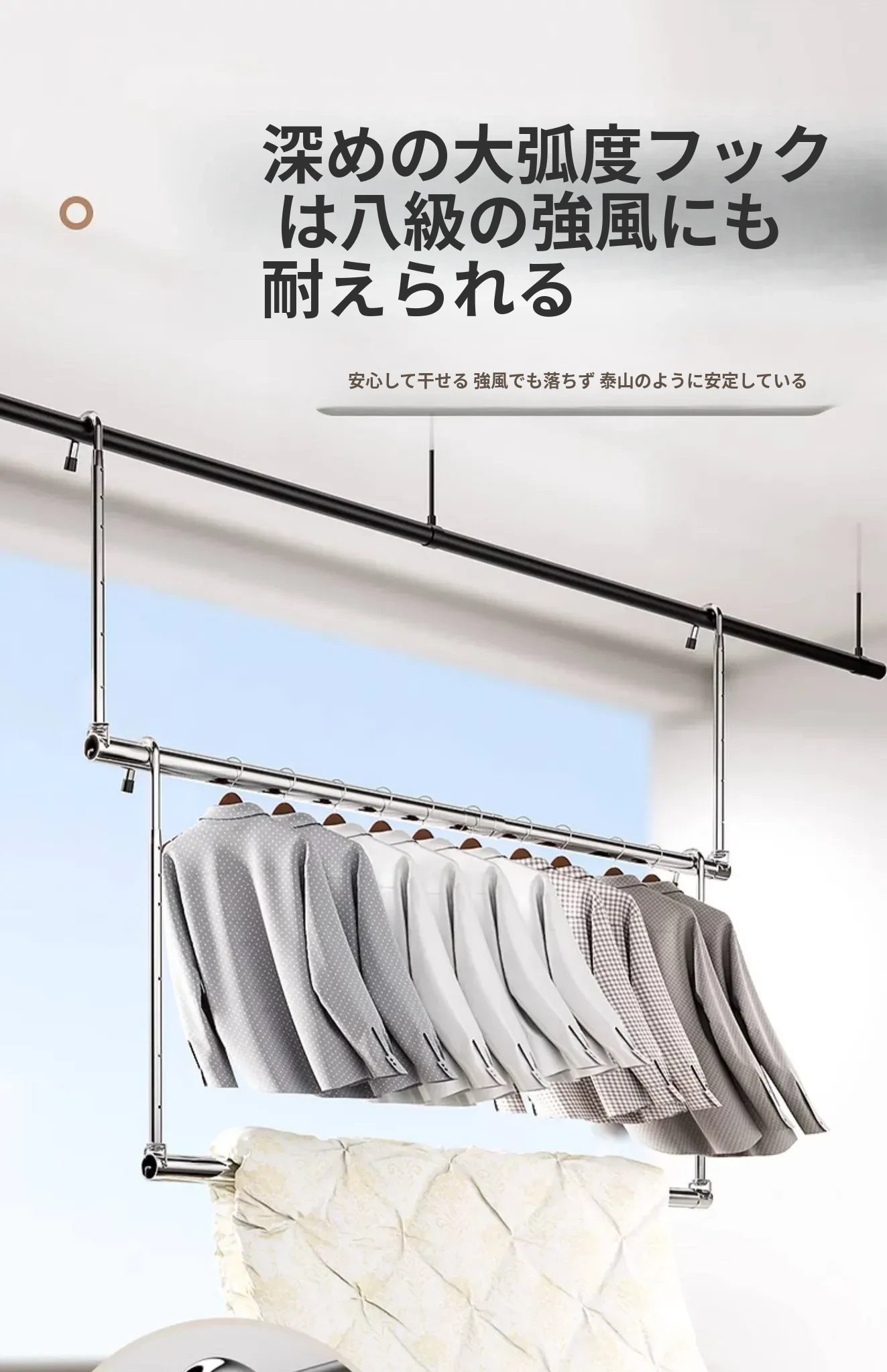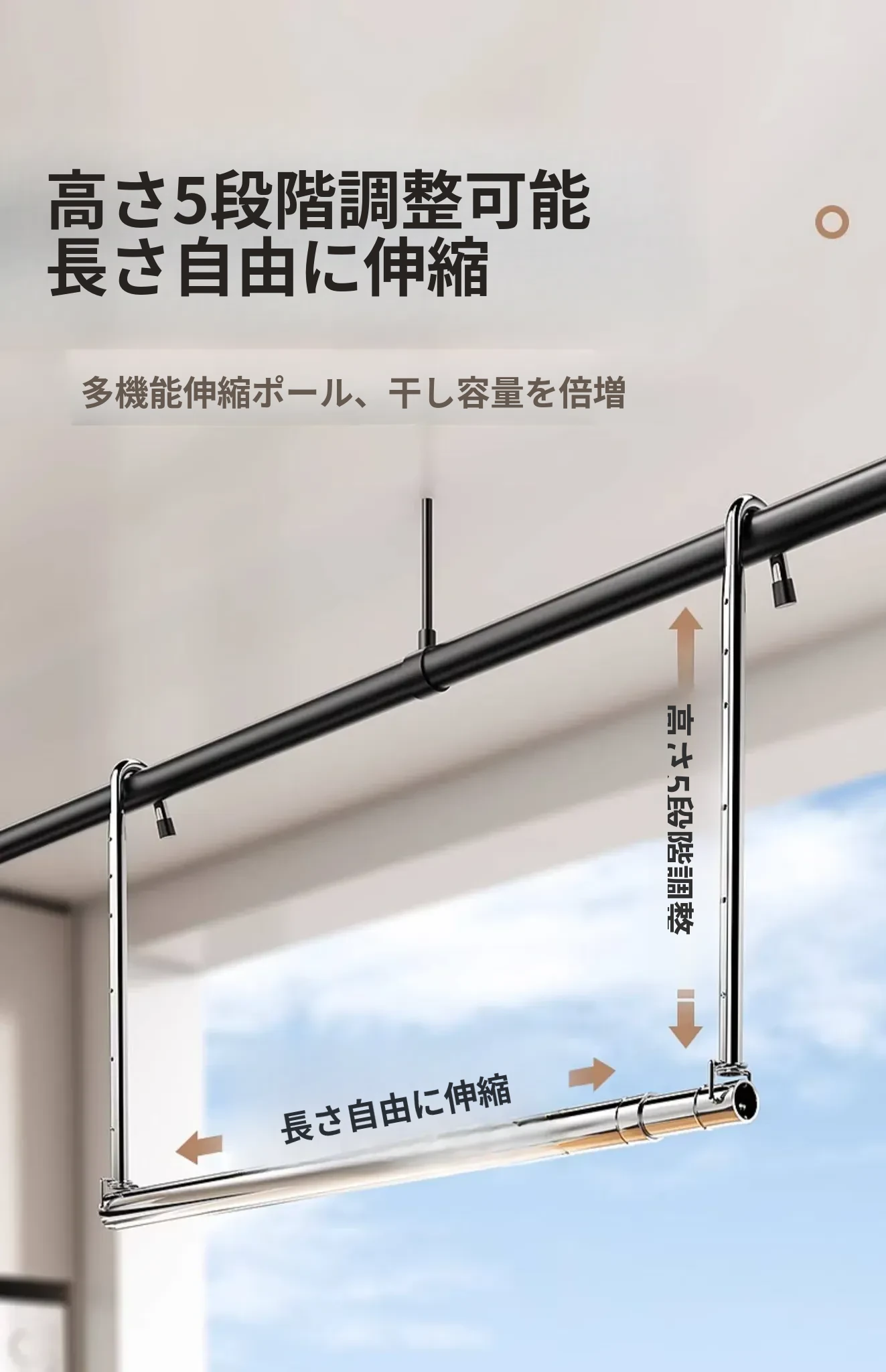 バルコニー用伸縮式物干し竿 - ステンレス製・穴あけ不要・昇降式で便利!布団も干せる魔法のハンガー。家庭での洗濯がもっと楽しくなるアイテム!