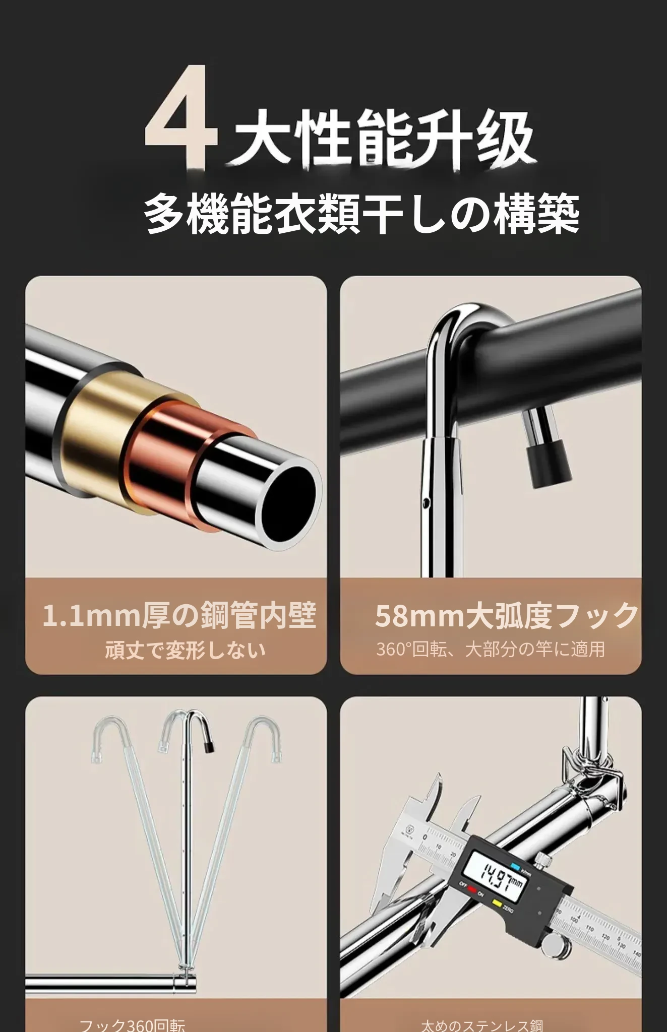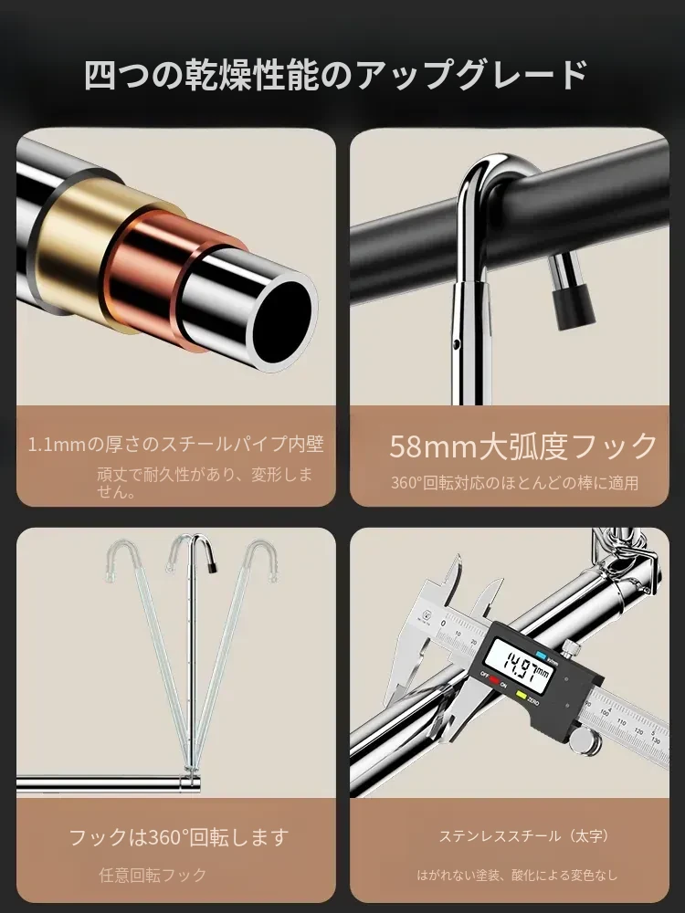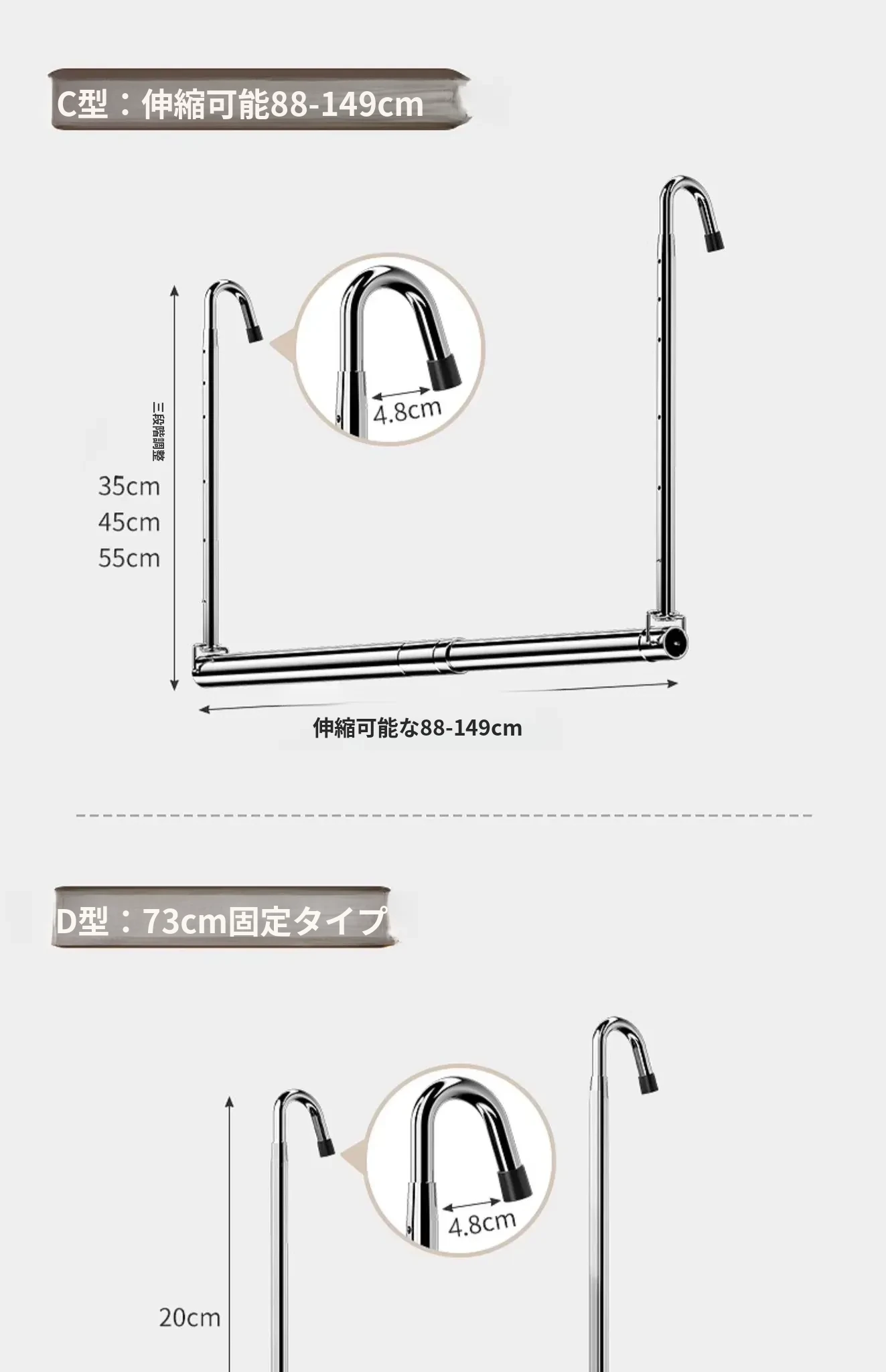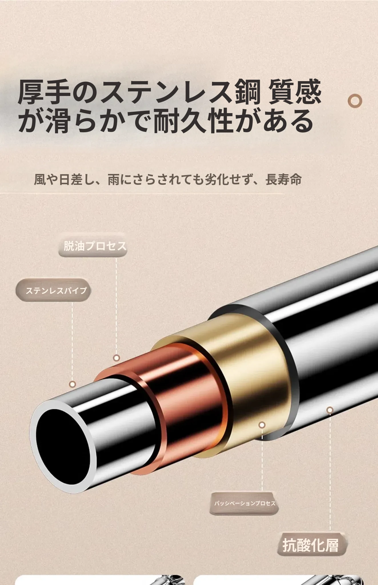 【四段調整】伸縮可能103-189cm【厚手太さのステンレス】
