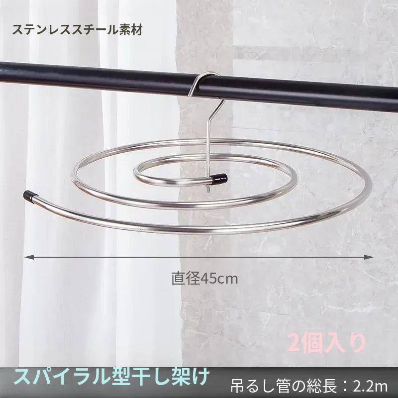 【パイプ径10mm】2.2メートルスパイラルハンガー-2個セット