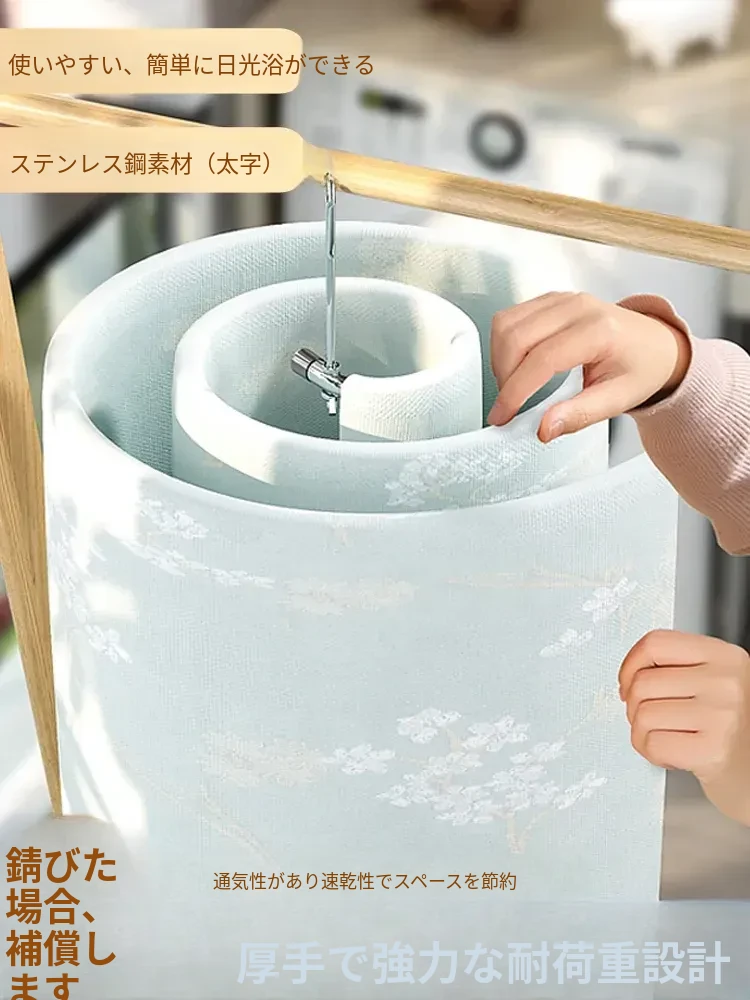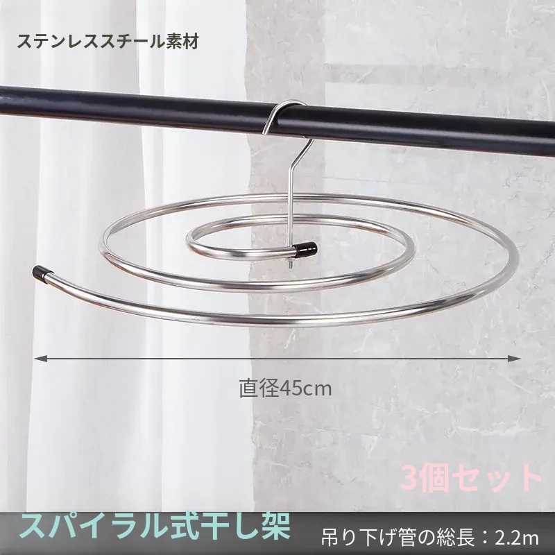 洗濯物を楽に!螺旋式デザインの多機能バルコニー用干し台。ステンレス製で耐久性抜群!シーツや布団カバーもすっきり干せる、家庭に必須のアイテム!