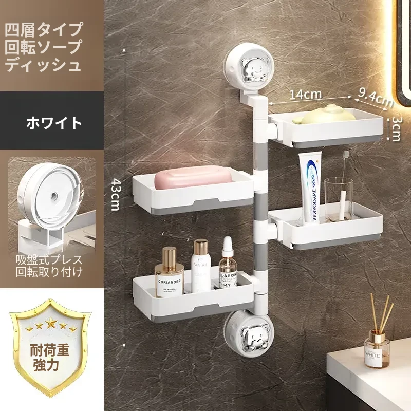 クリームホワイト⭐吸盤四重石鹸箱【180°回転可能】