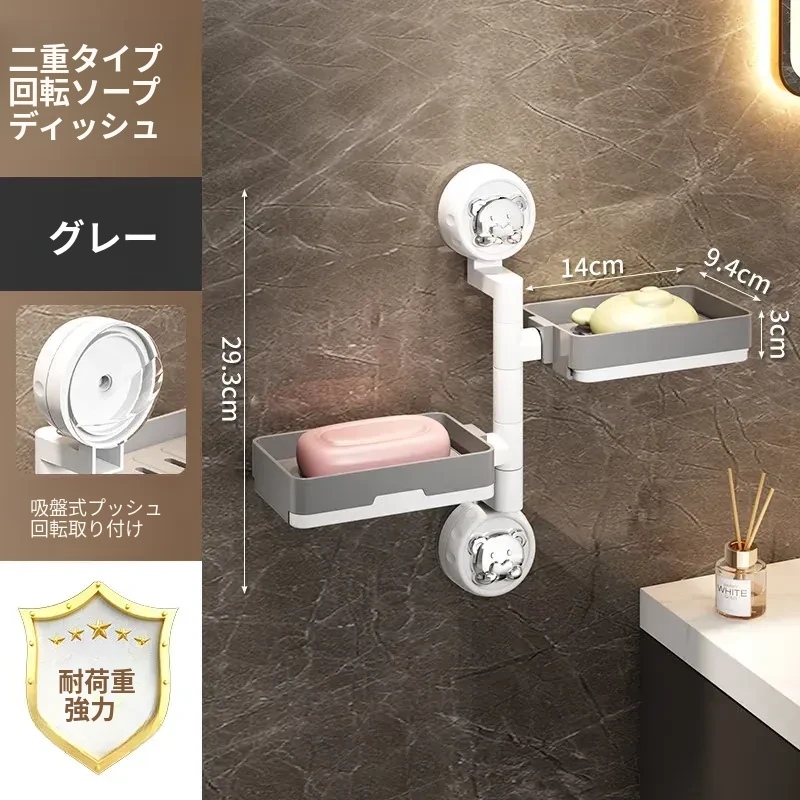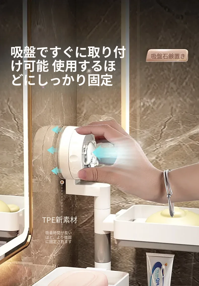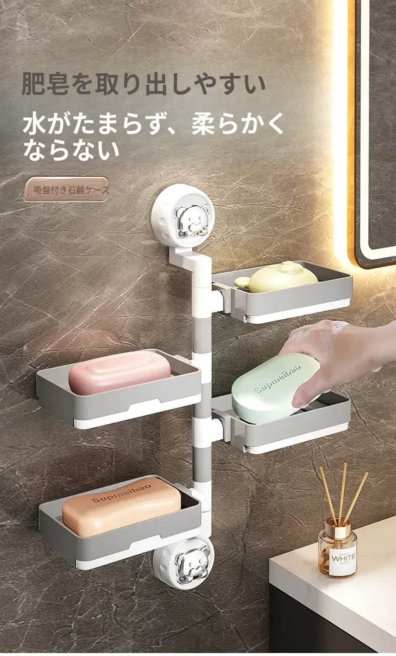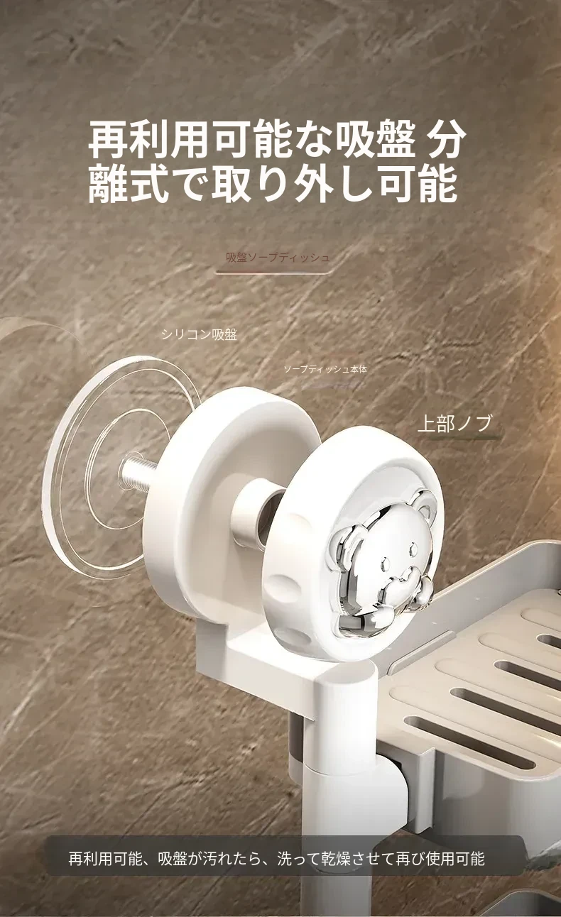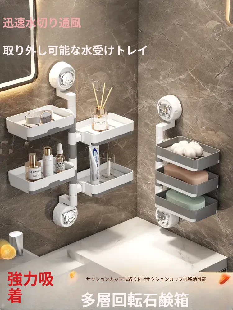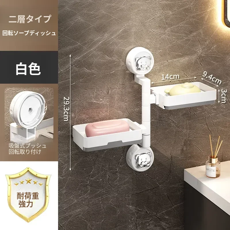 吸盤回転式石鹸ホルダー - 穴あけ不要で簡単取り付け!バスルームやトイレに最適な水切り機能付きの石鹸収納ラック。清潔感あふれるおしゃれなデザインで、快適なバスタイムを演出します!