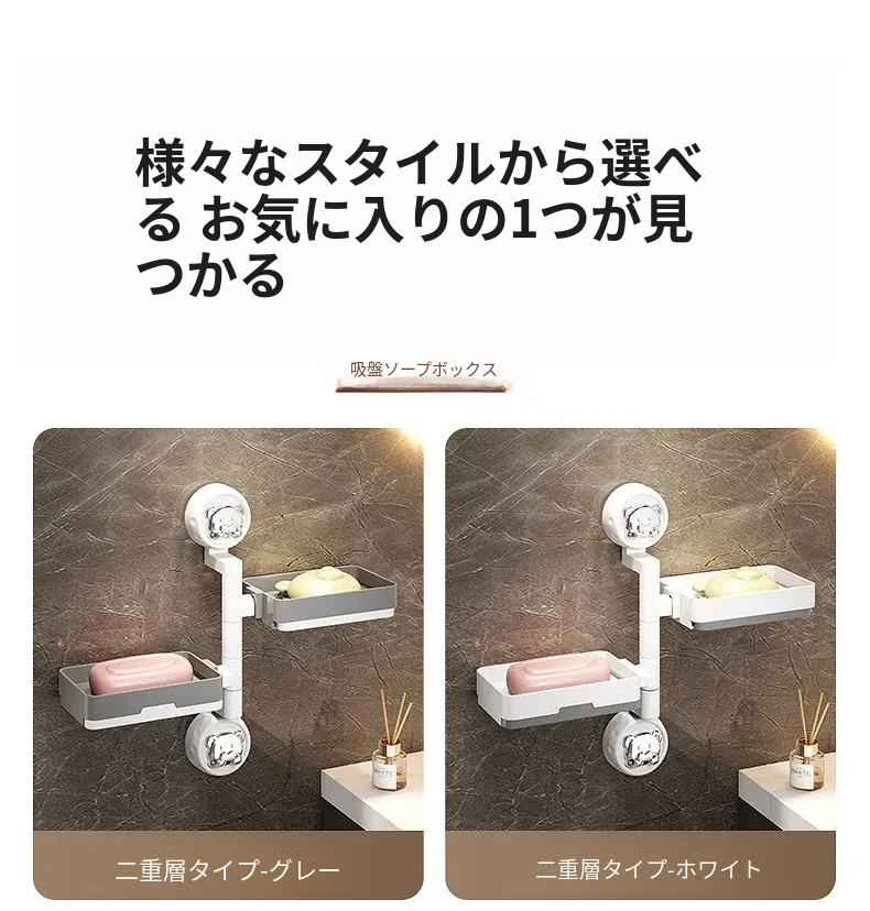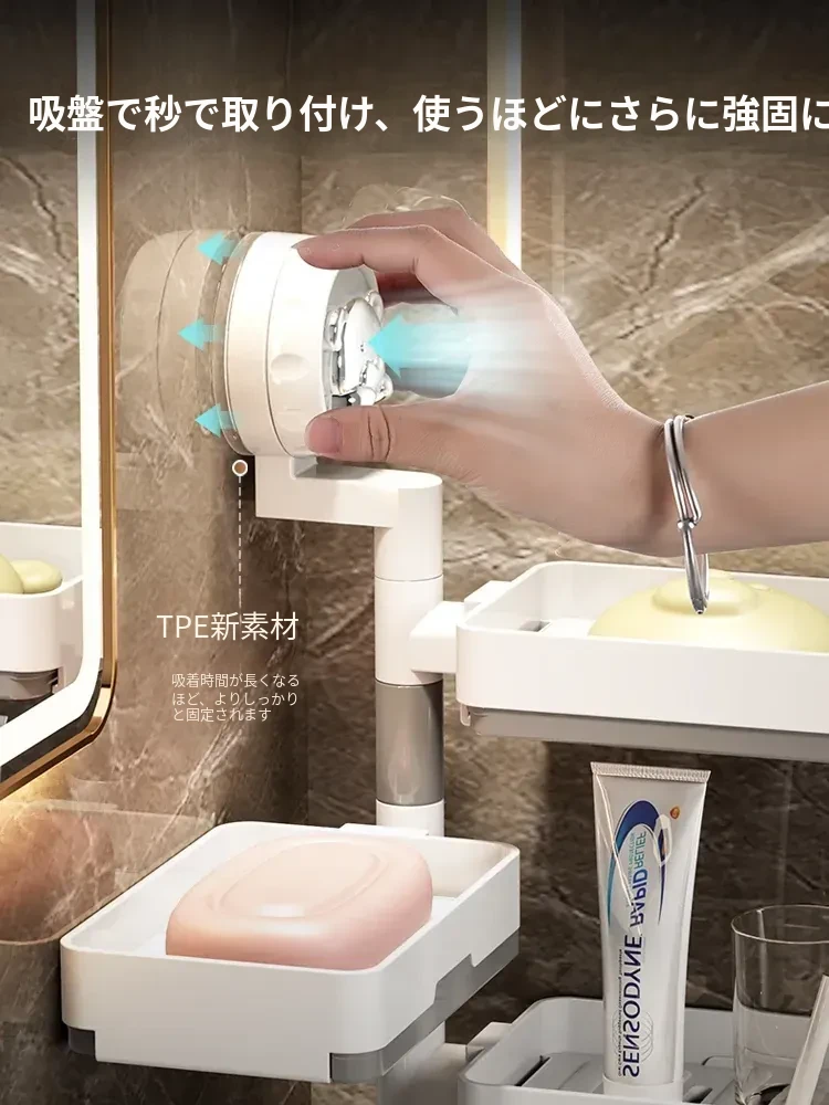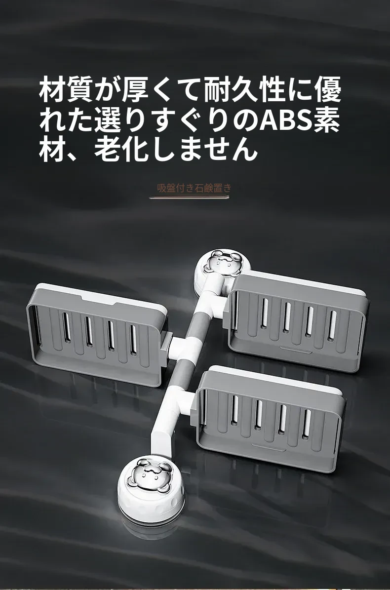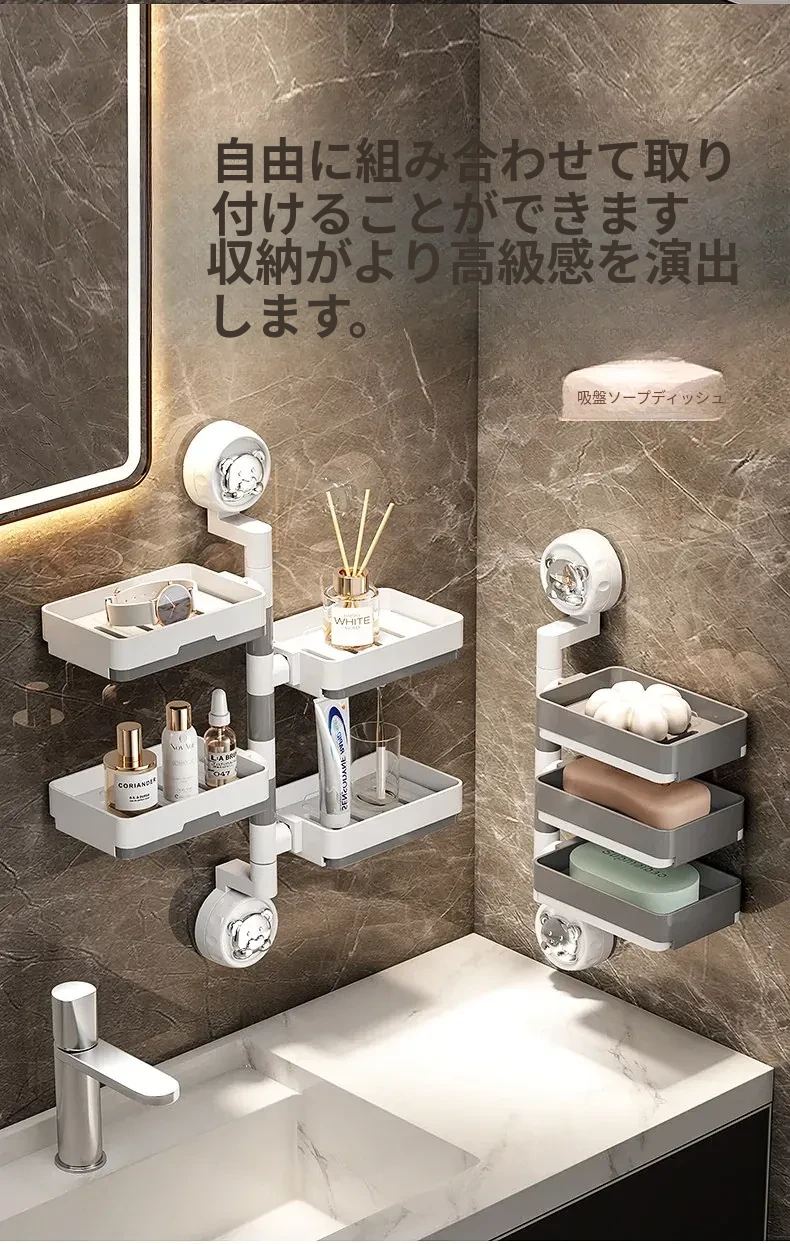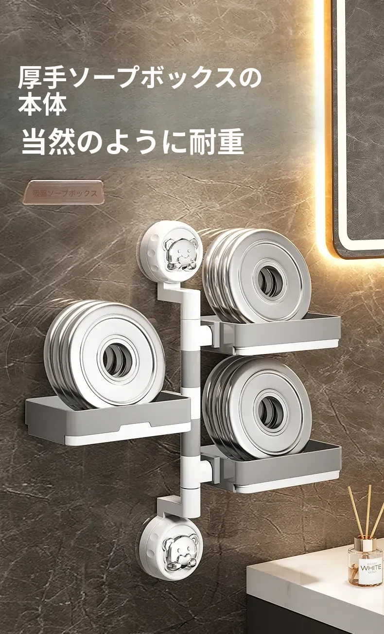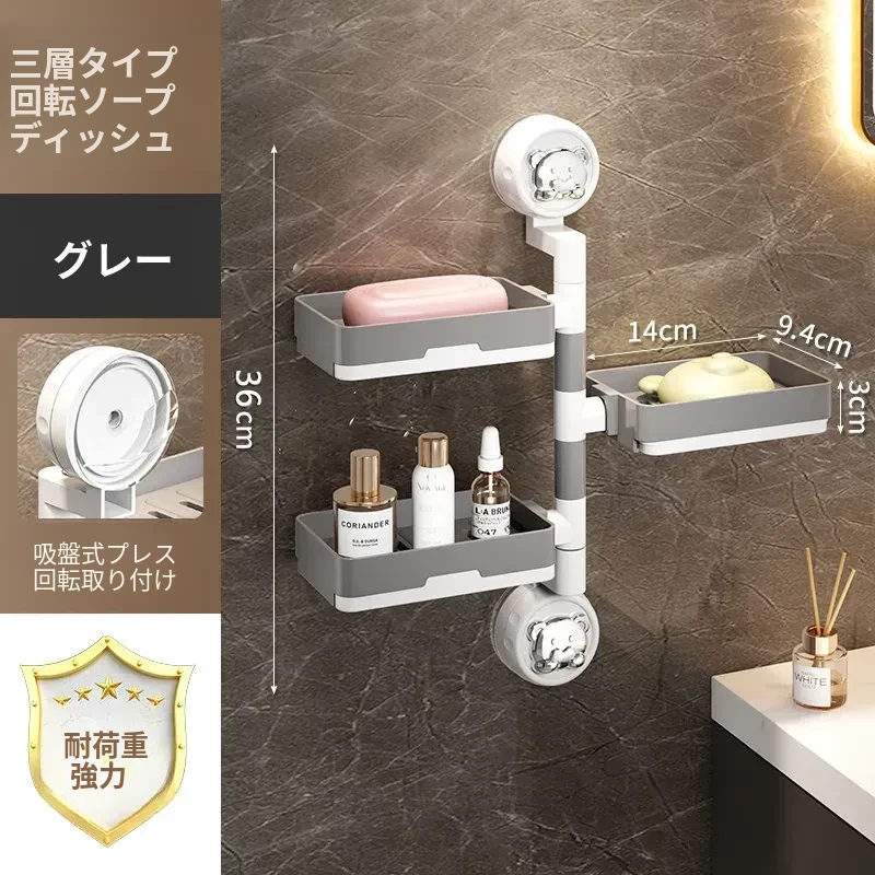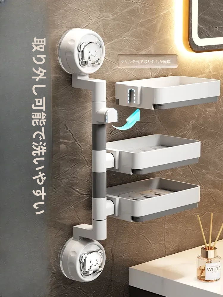 吸盤回転式石鹸ホルダー - 穴あけ不要で簡単取り付け!バスルームやトイレに最適な水切り機能付きの石鹸収納ラック。清潔感あふれるおしゃれなデザインで、快適なバスタイムを演出します!