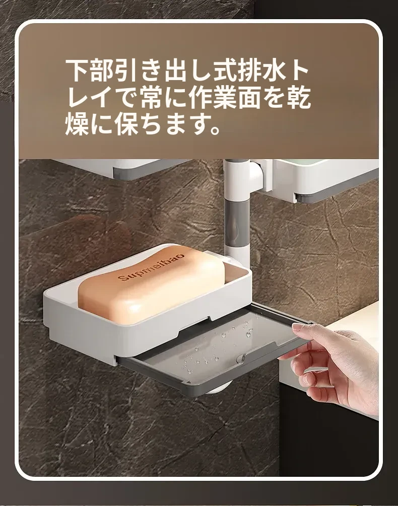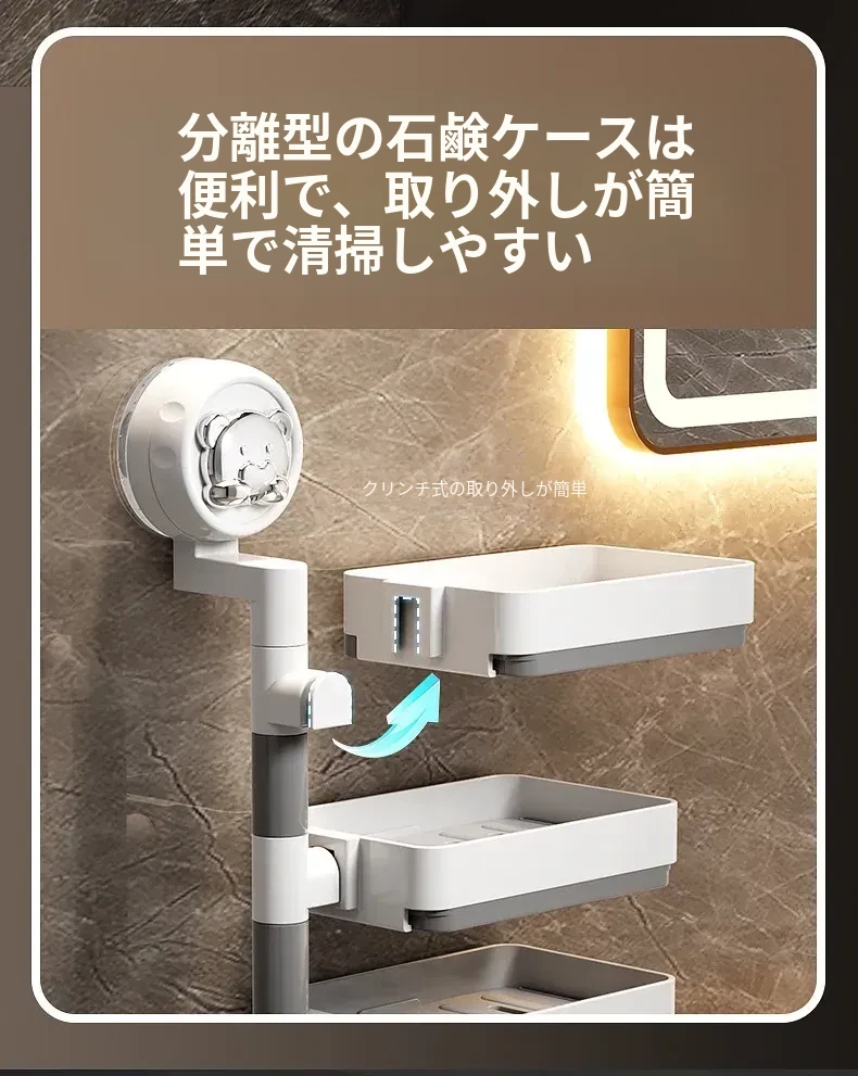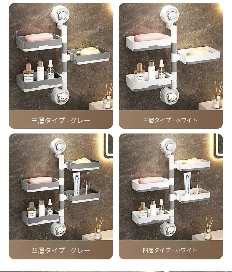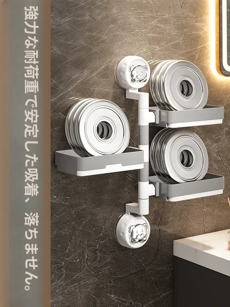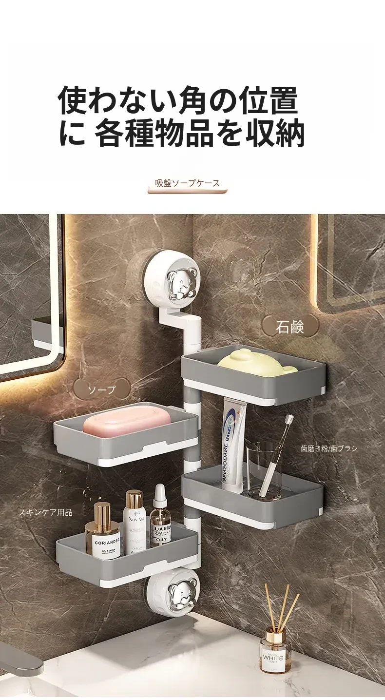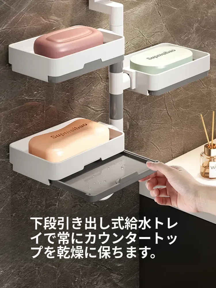 吸盤回転式石鹸ホルダー - 穴あけ不要で簡単取り付け!バスルームやトイレに最適な水切り機能付きの石鹸収納ラック。清潔感あふれるおしゃれなデザインで、快適なバスタイムを演出します!